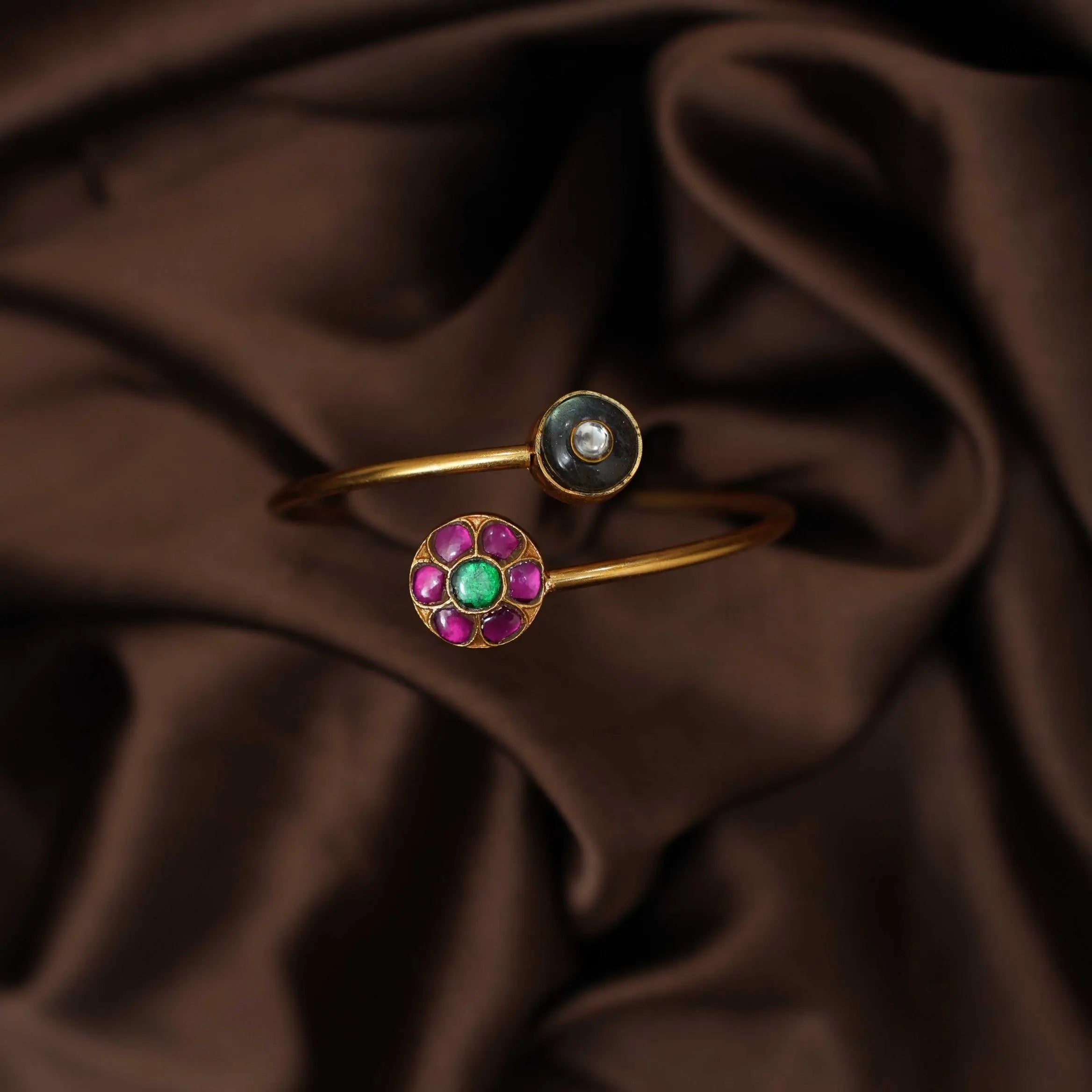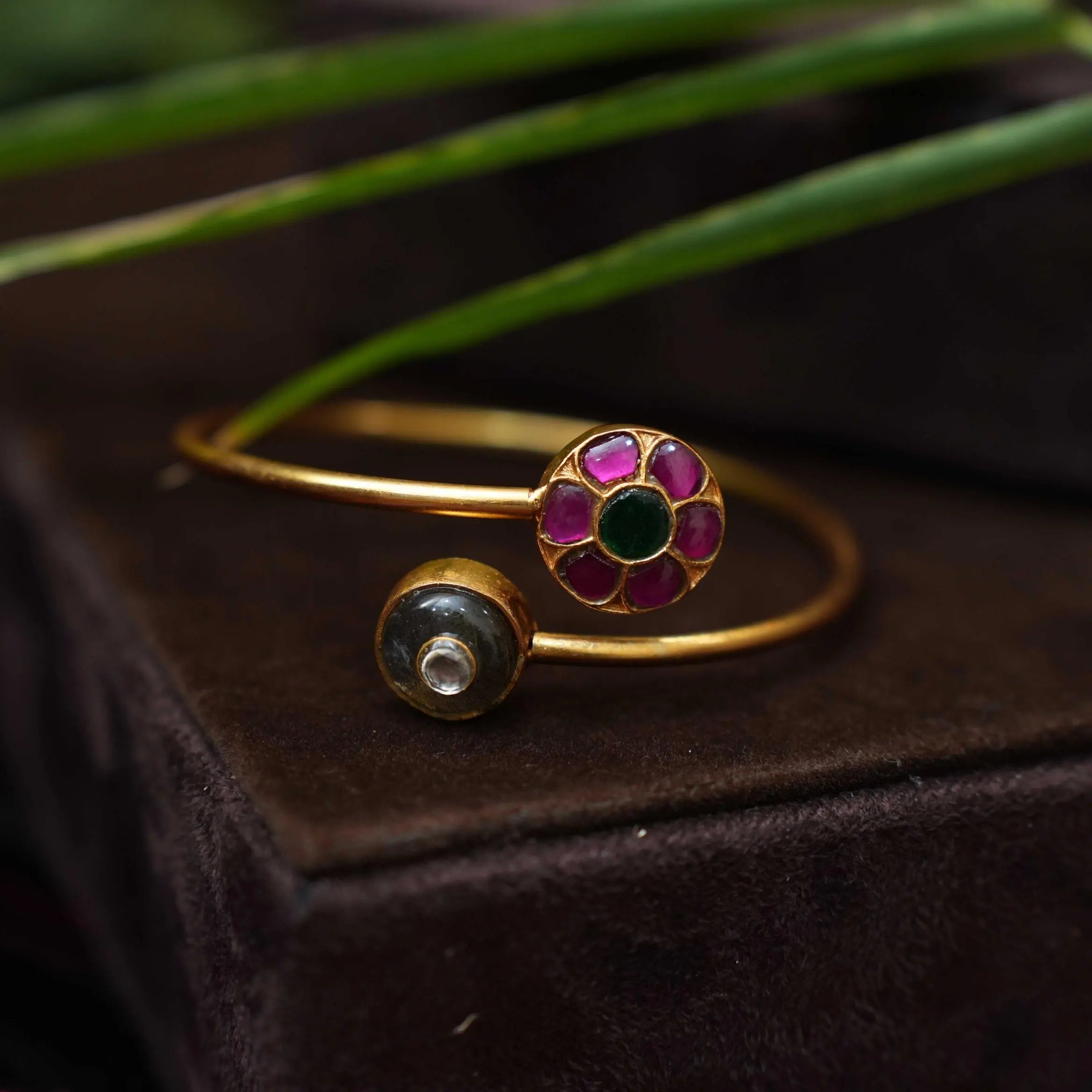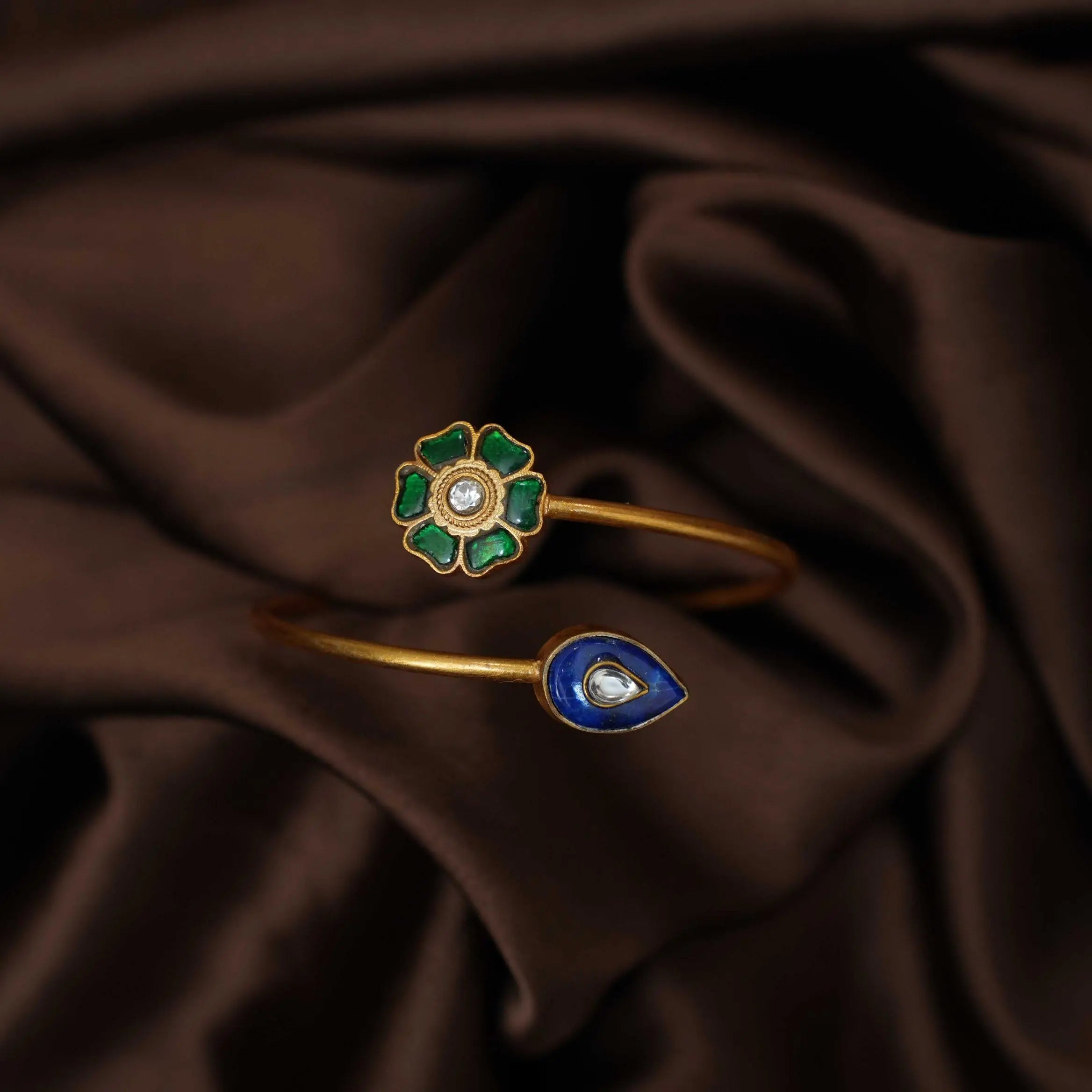 Hanvika Silver Kada Bangle - Green
