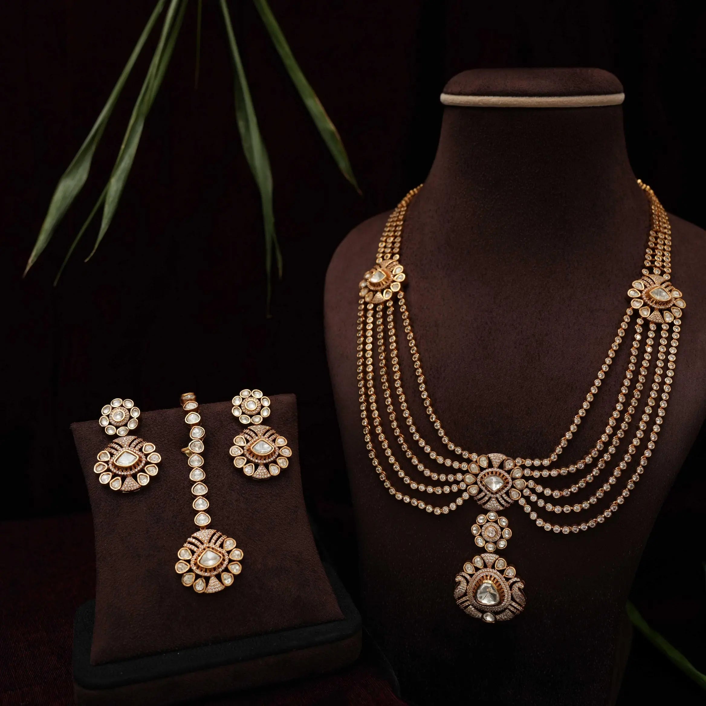 Check out some beautiful kundan long necklace set and polki long necklace set online made exclusively for women. These include beaded long necklaces as well as sets that cater to each taste. Different necklace styles grace our shop; come on grab yourself one! Also, check out our latest EAR CHAIN collection for more stunning accessories.