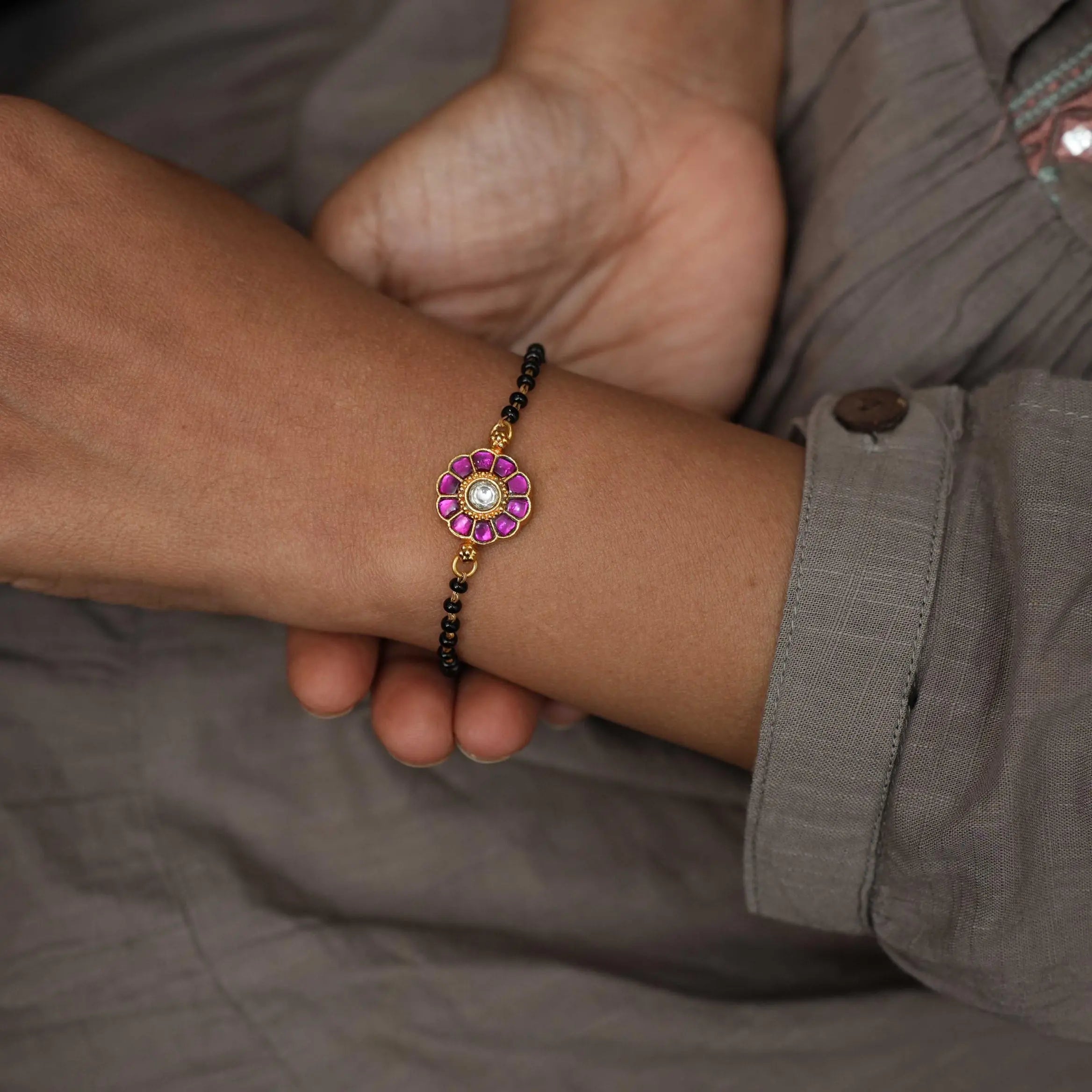 Aarushi Polki Beaded Necklace - Pink Aarushi Polki Beaded Necklace - Pink