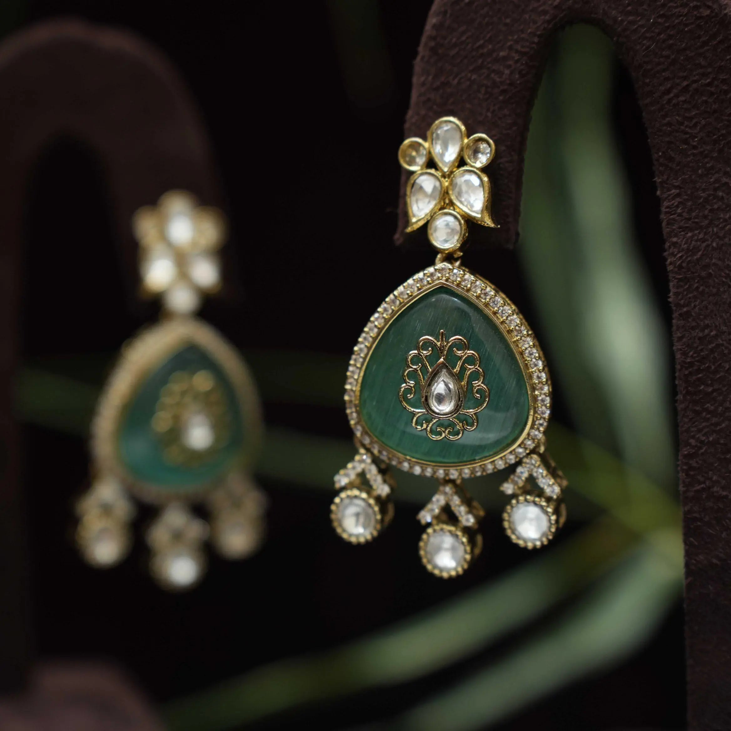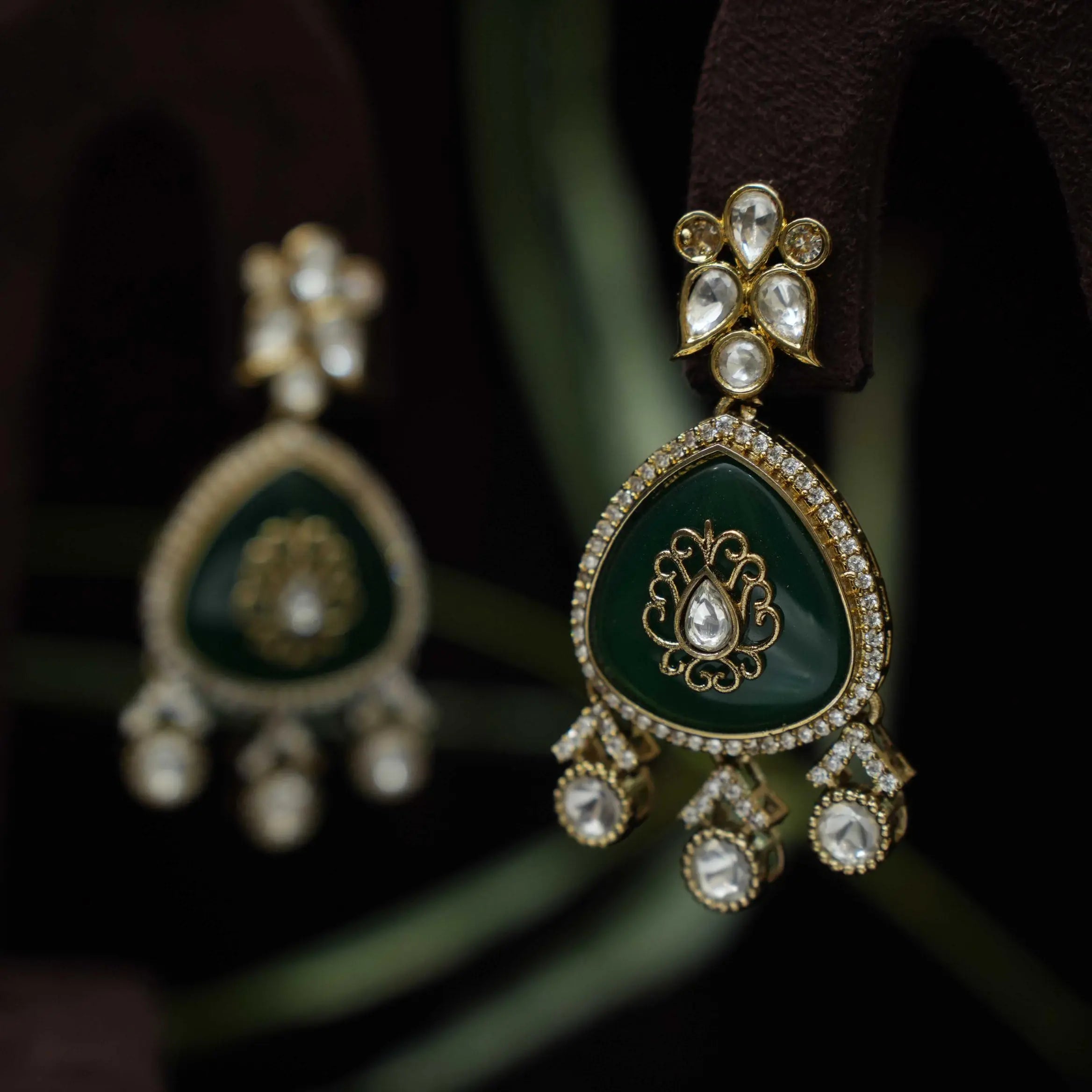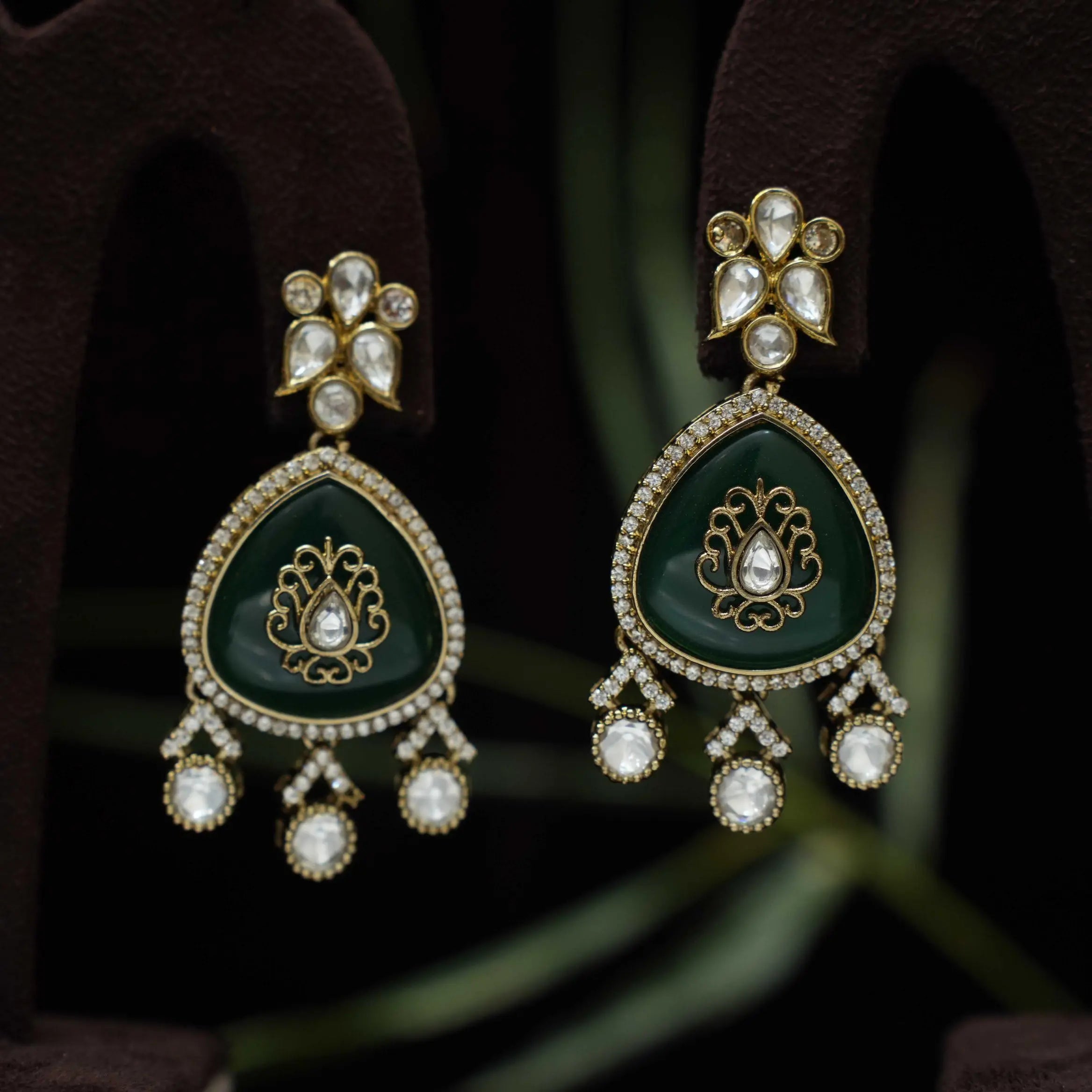 Sabrina Polki Designer Earrings - Green Sabrina Polki Designer Earrings - Green