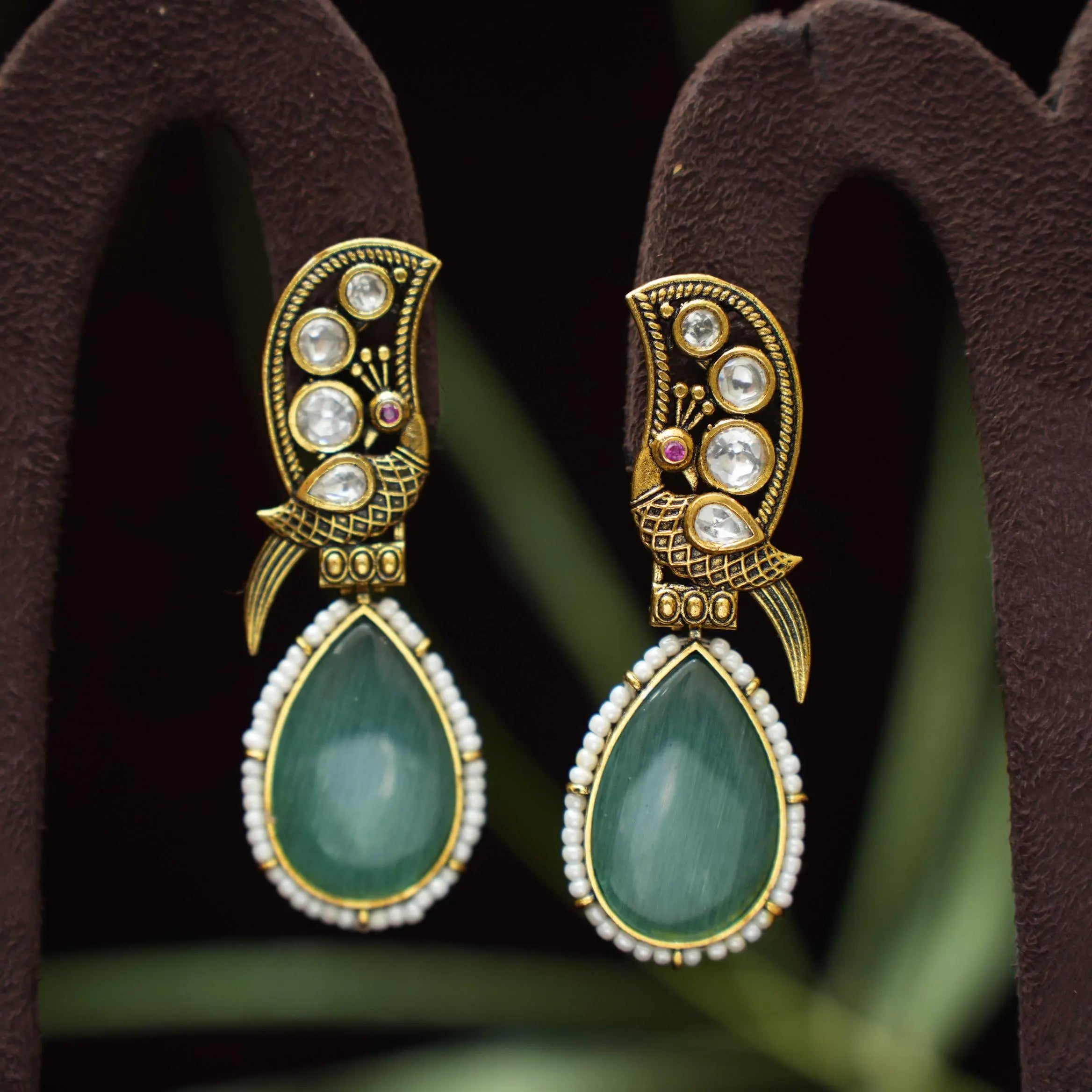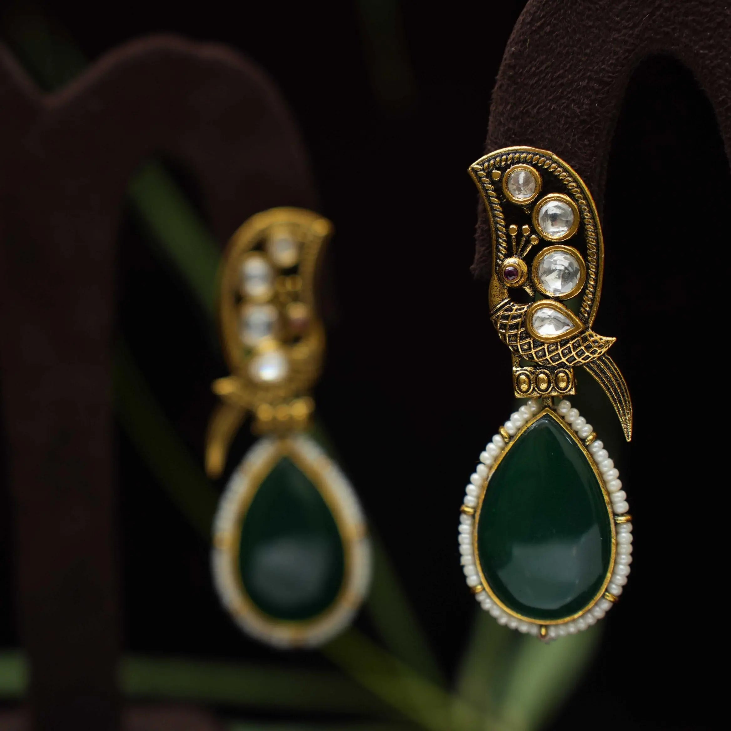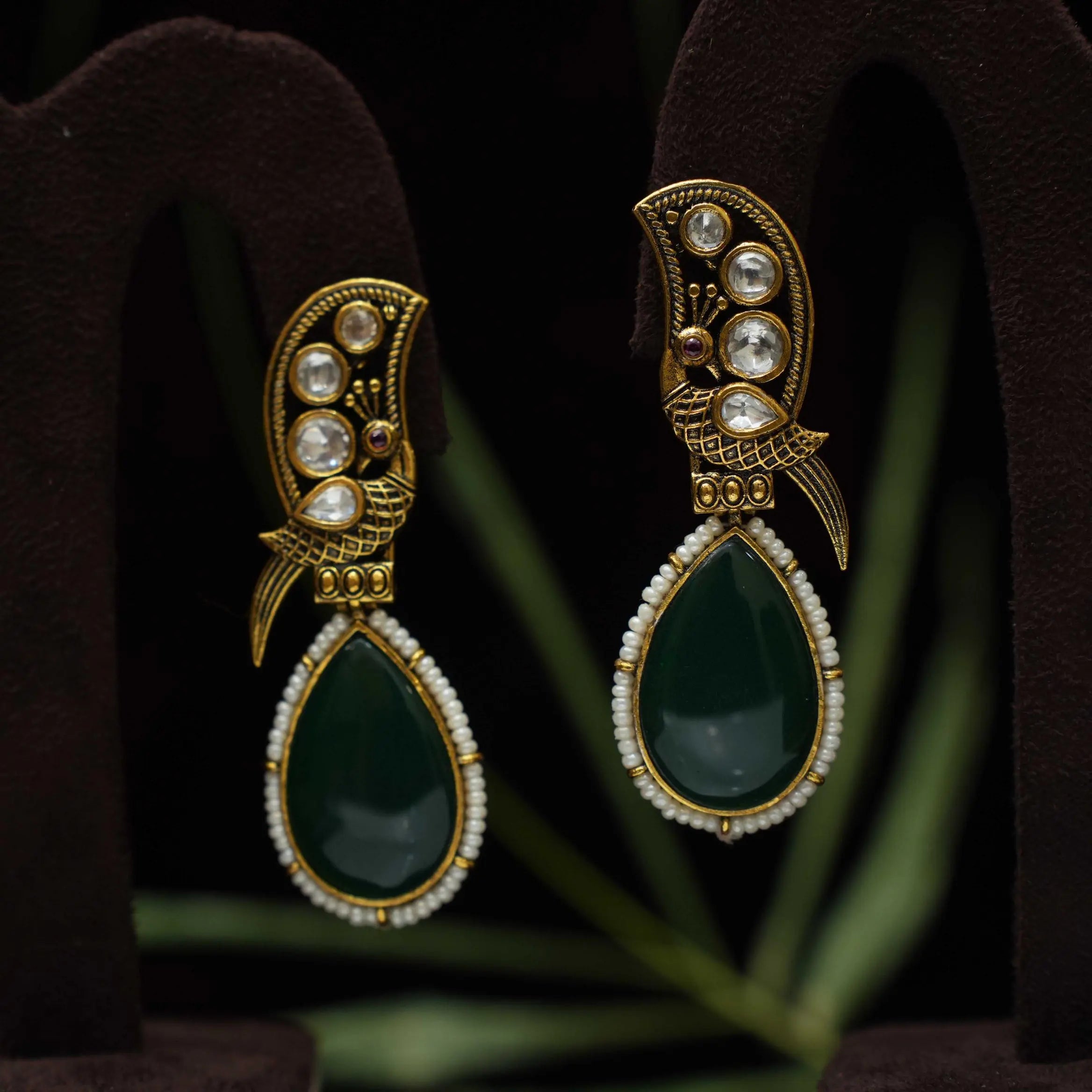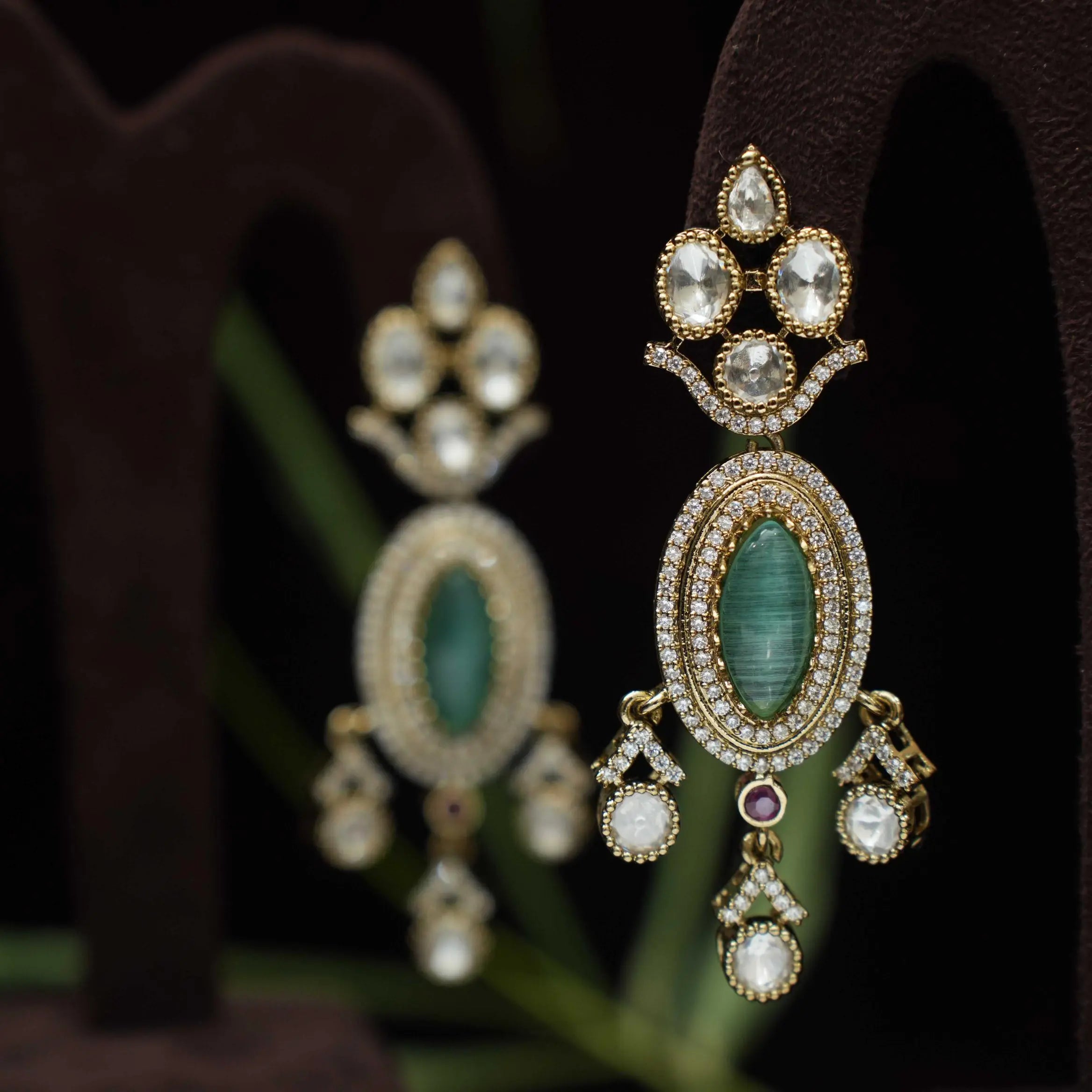 Sabrina Polki Designer Earrings - Green Sabrina Polki Designer Earrings - Green