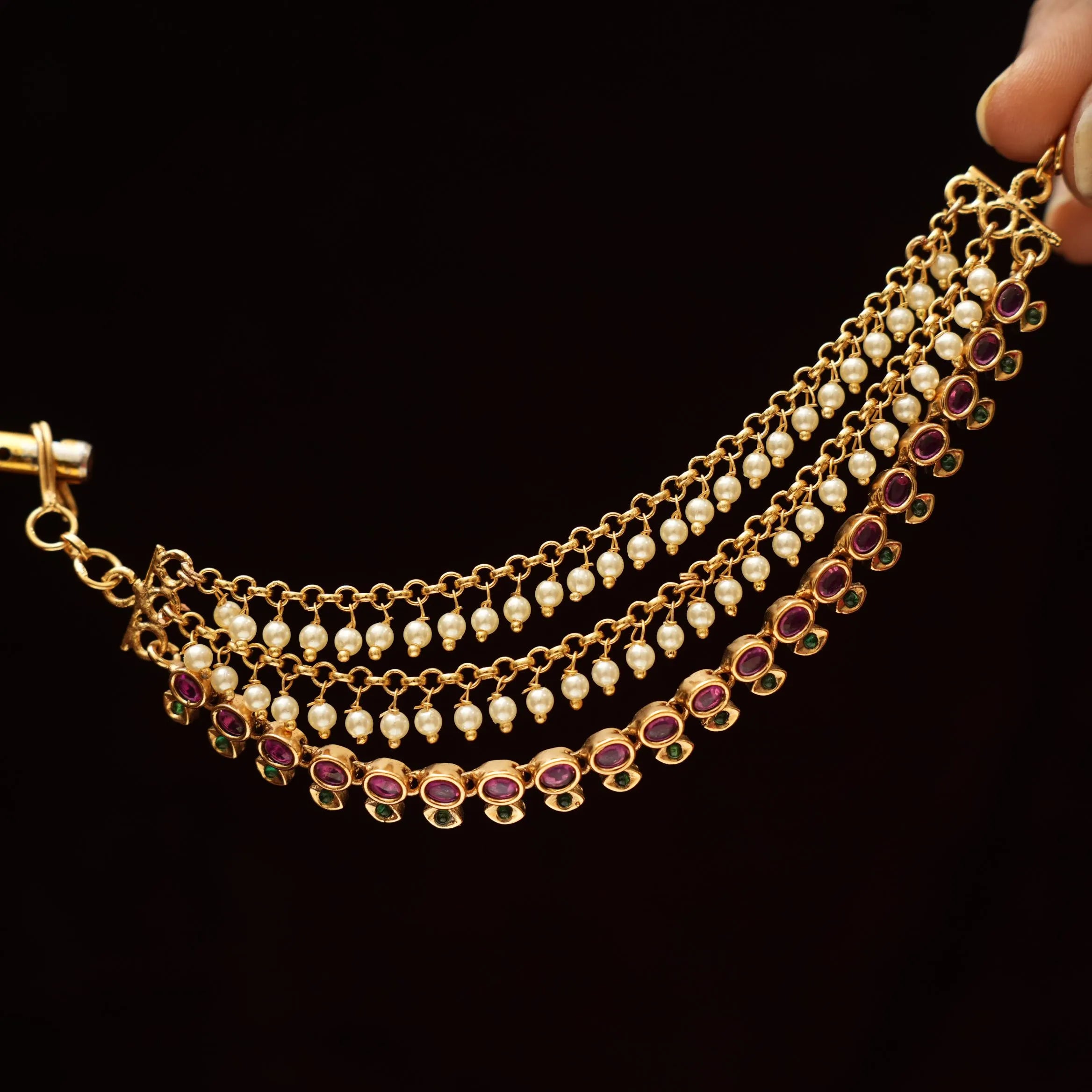 An elegant layered ear chain adorn with kemp stones. This ear chain comes as a pair.