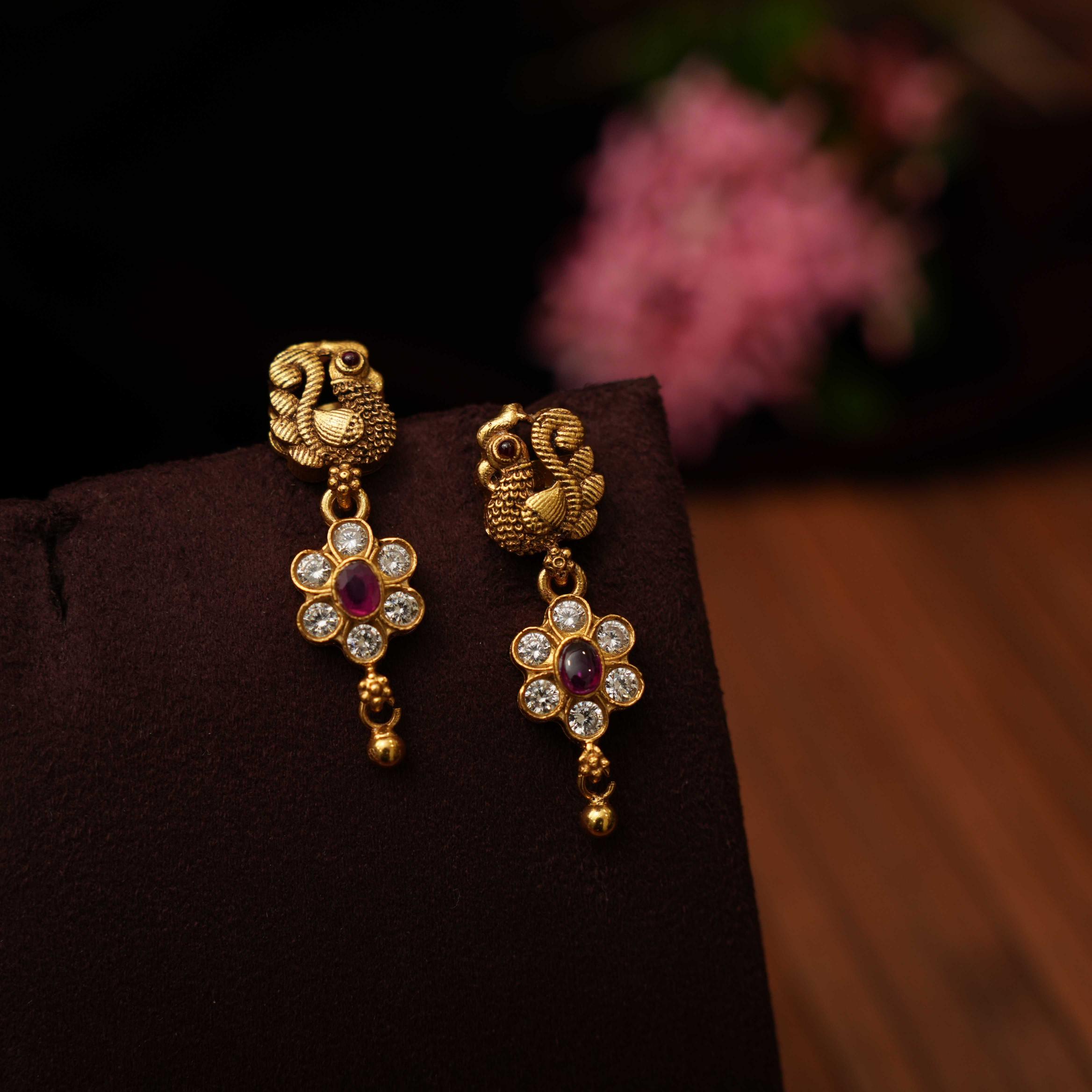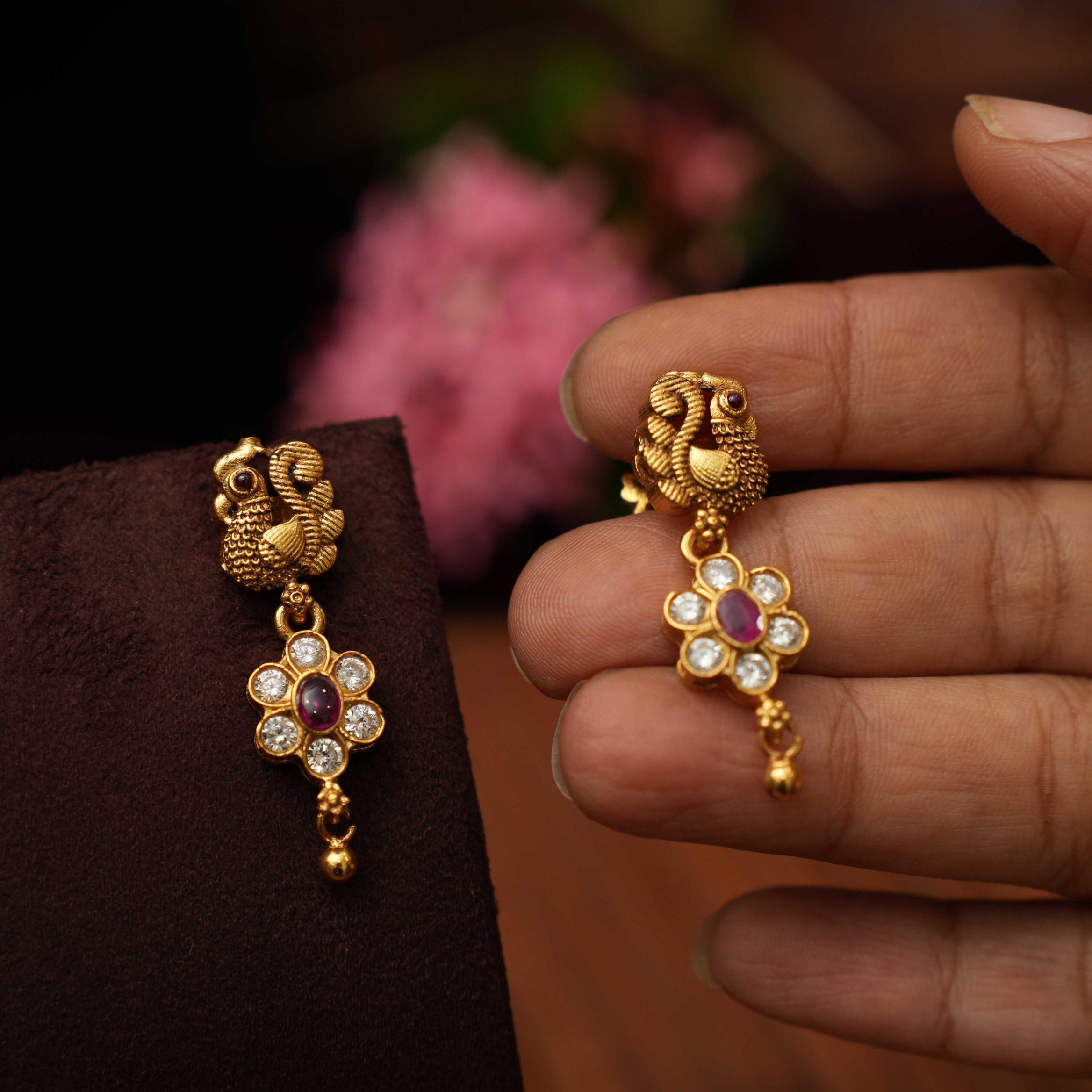 Embrace tradition with our 92.5 gold-plated silver ear stud adorned with exquisite peacock motif finely finished in Nagas finish. This classic piece captures the essence of cultural richness, emanating timeless sophistication and heritage allure.