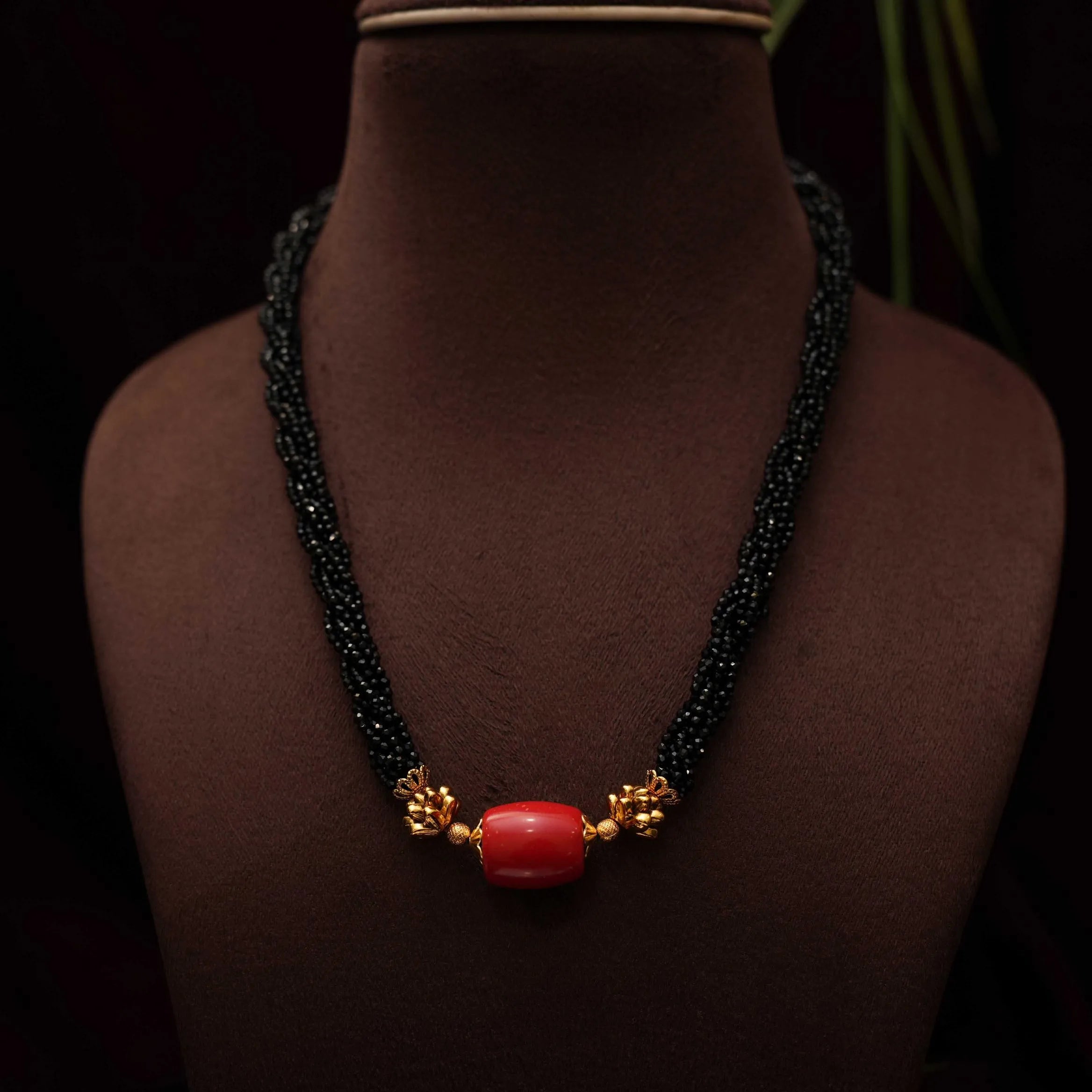 Discover elegance with our Black Aritri Beaded Necklace, blending black beads with coral and antique accents. This exquisite necklace for women is a must-have, combining classic charm with contemporary style. Perfect for any occasion, find your new favorite Necklace Set online today.