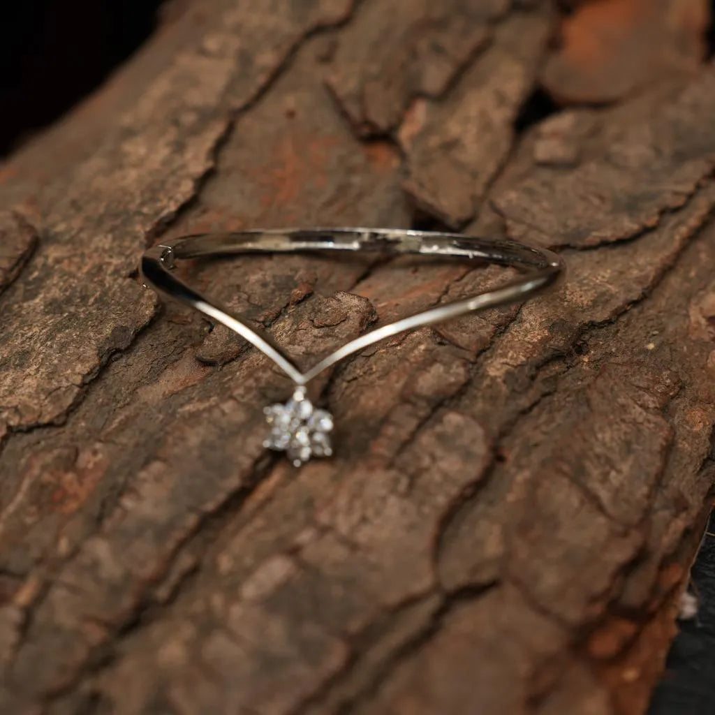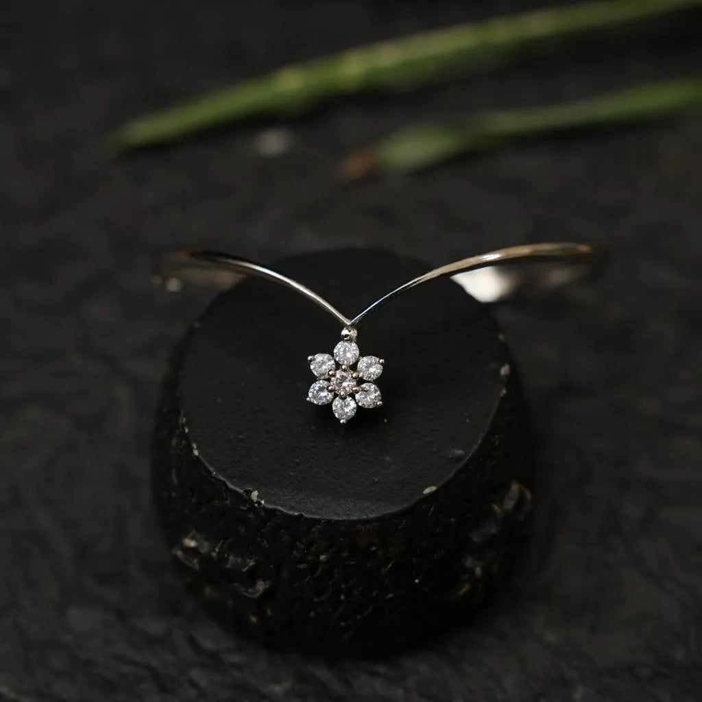 A simple and elegant bracelet in floral motif studded with zircon stones finished in oxidised finish.