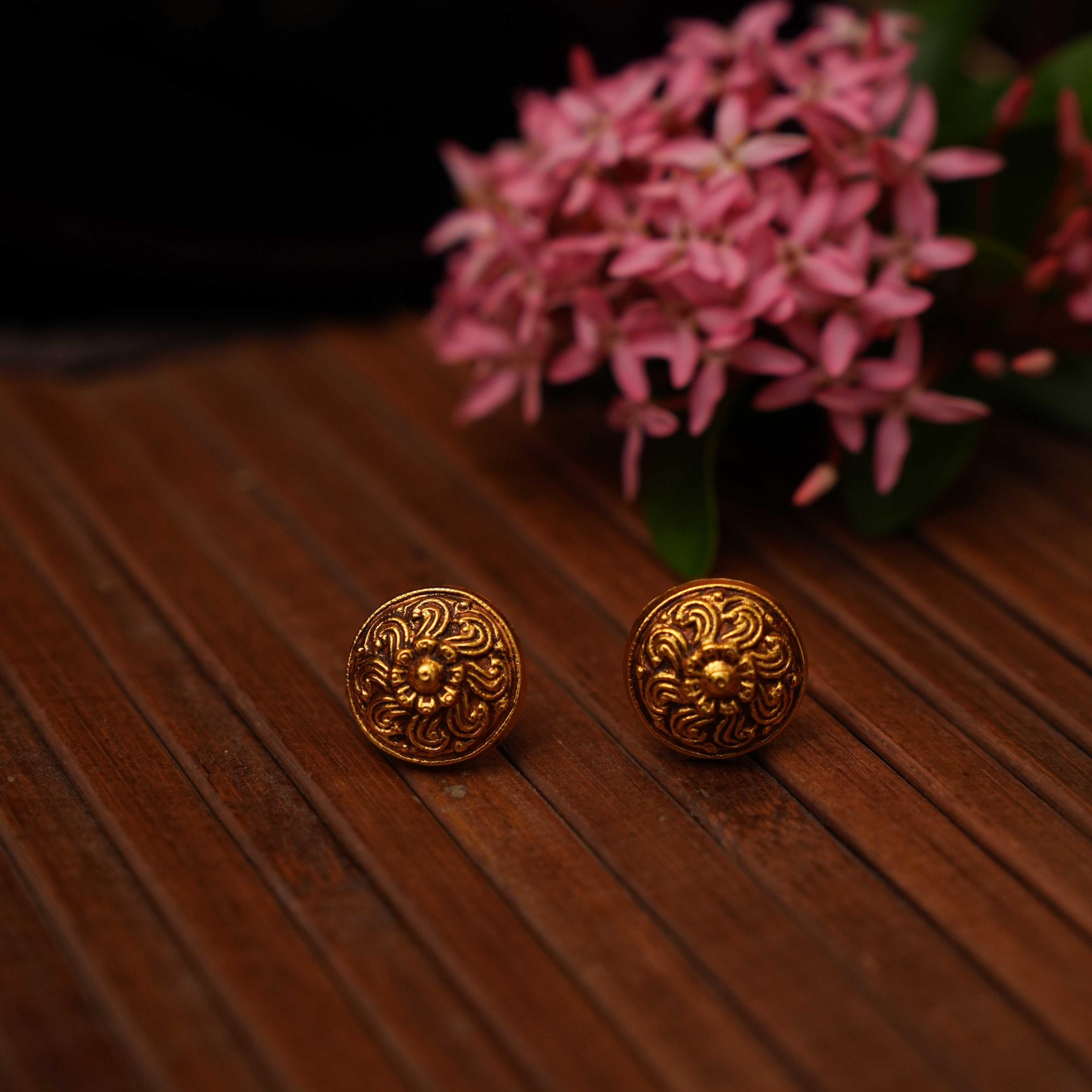 Celebrate heritage with our 92.5 gold-plated silver ear stud and finished in Nagas finish. This traditional piece reflects timeless sophistication, embodying the cultural richness of classic elegance.