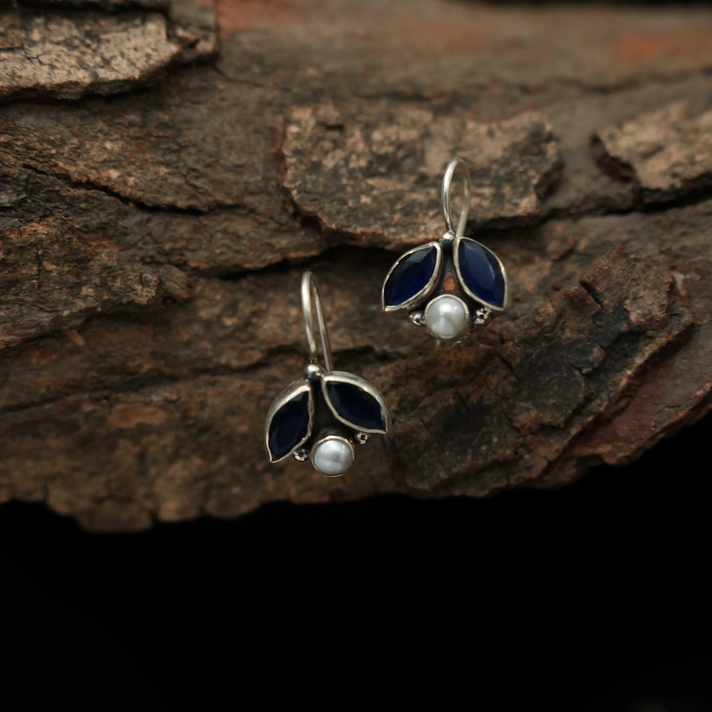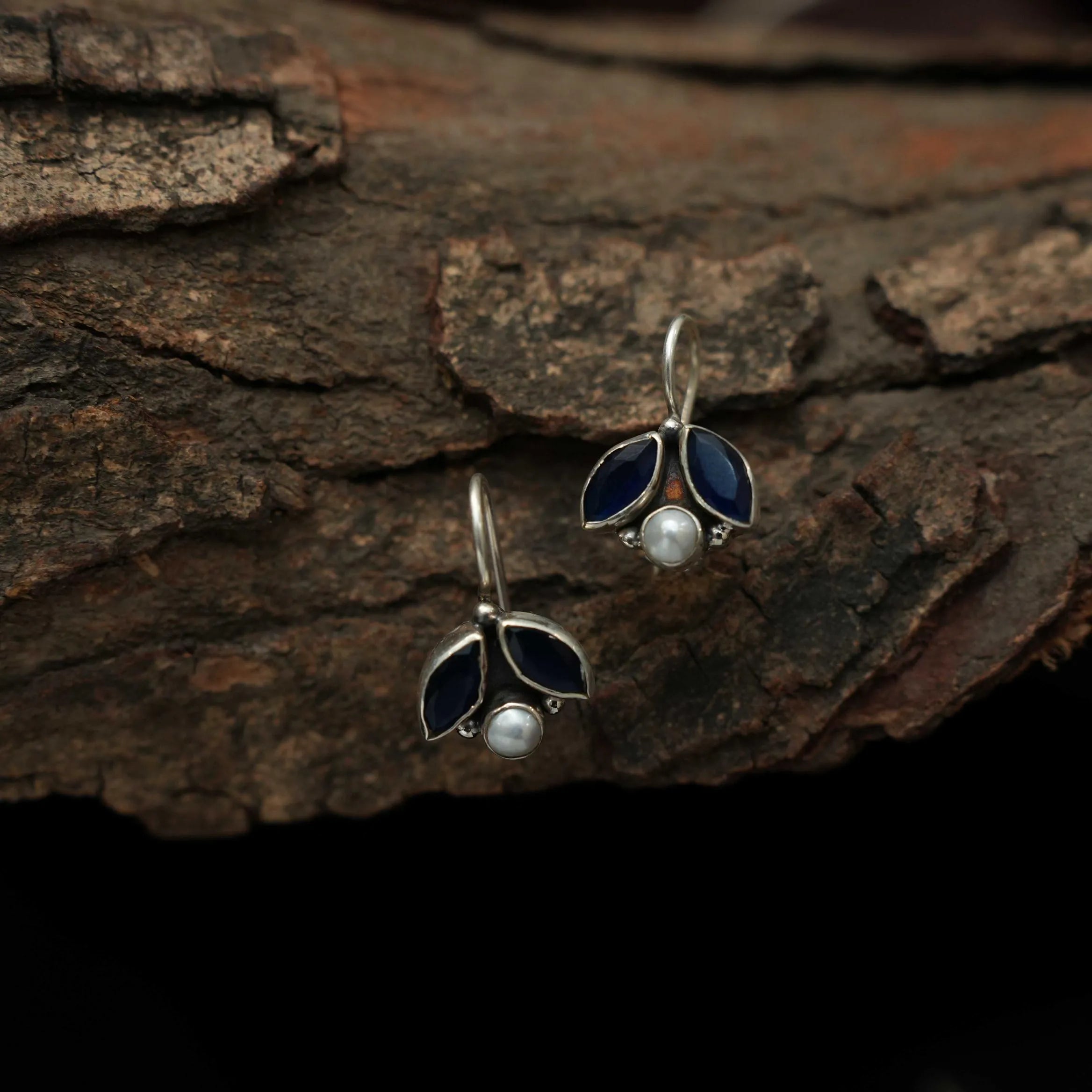 Diana Silver Oxidised Earring - Blue