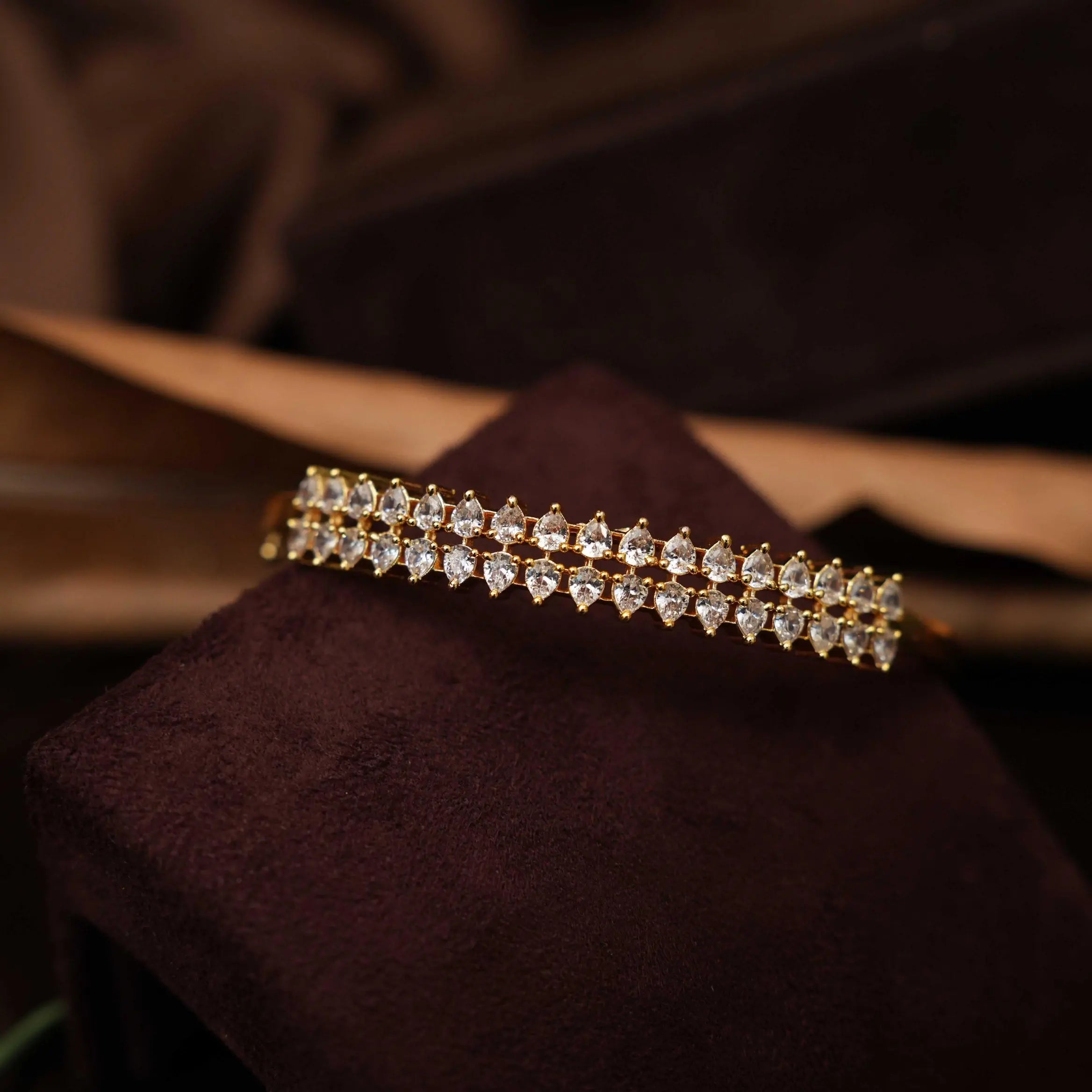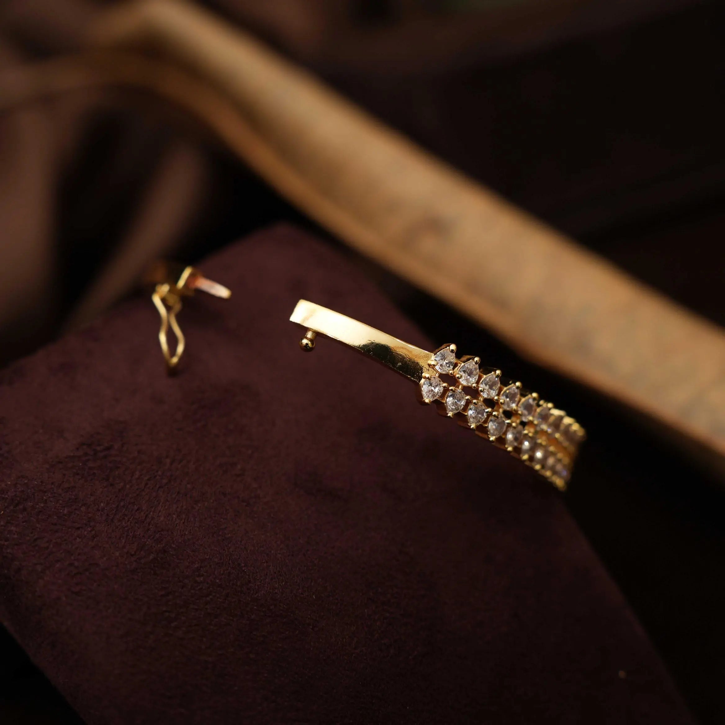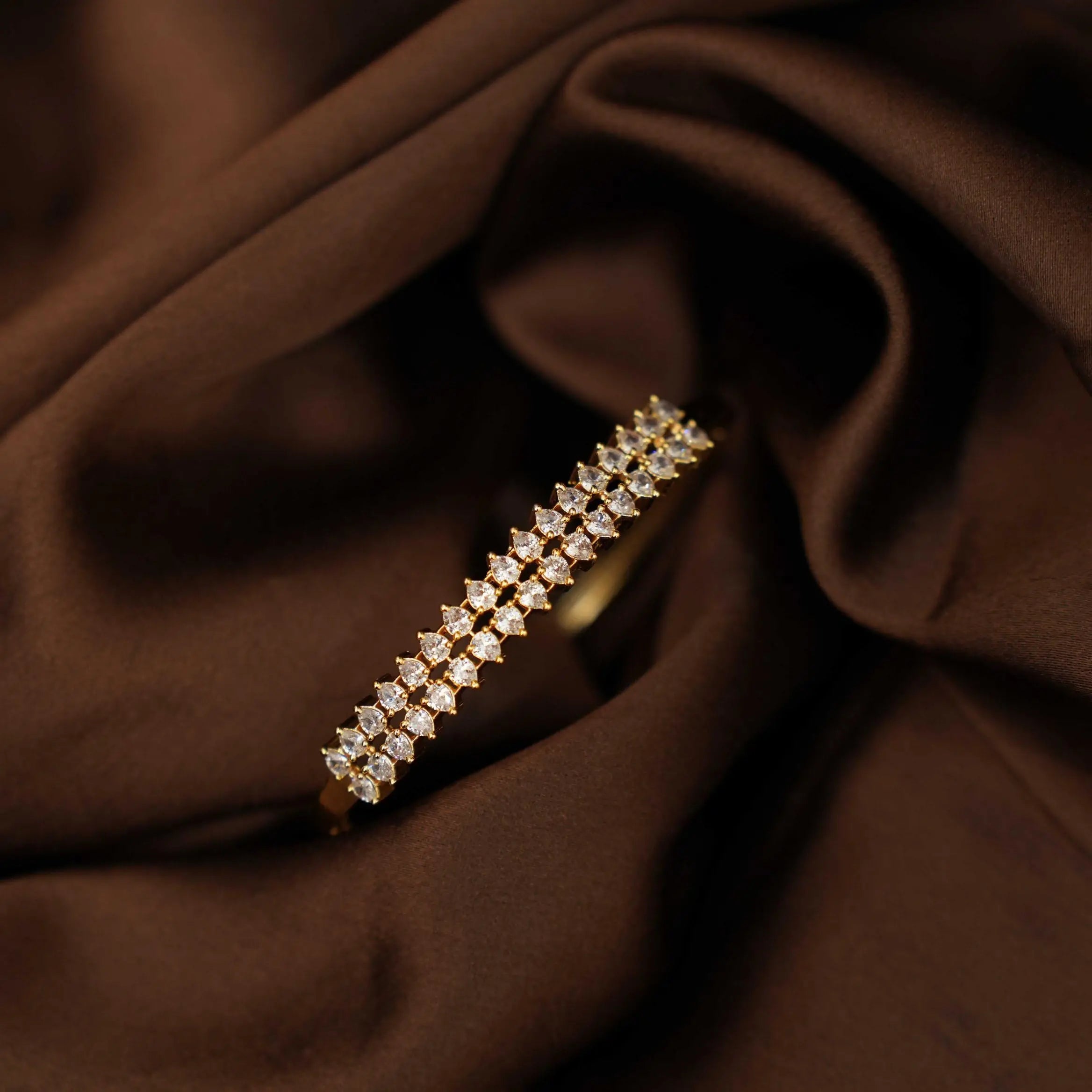 An elegant bracelet studded with zircon stones finely finished in gold finish.