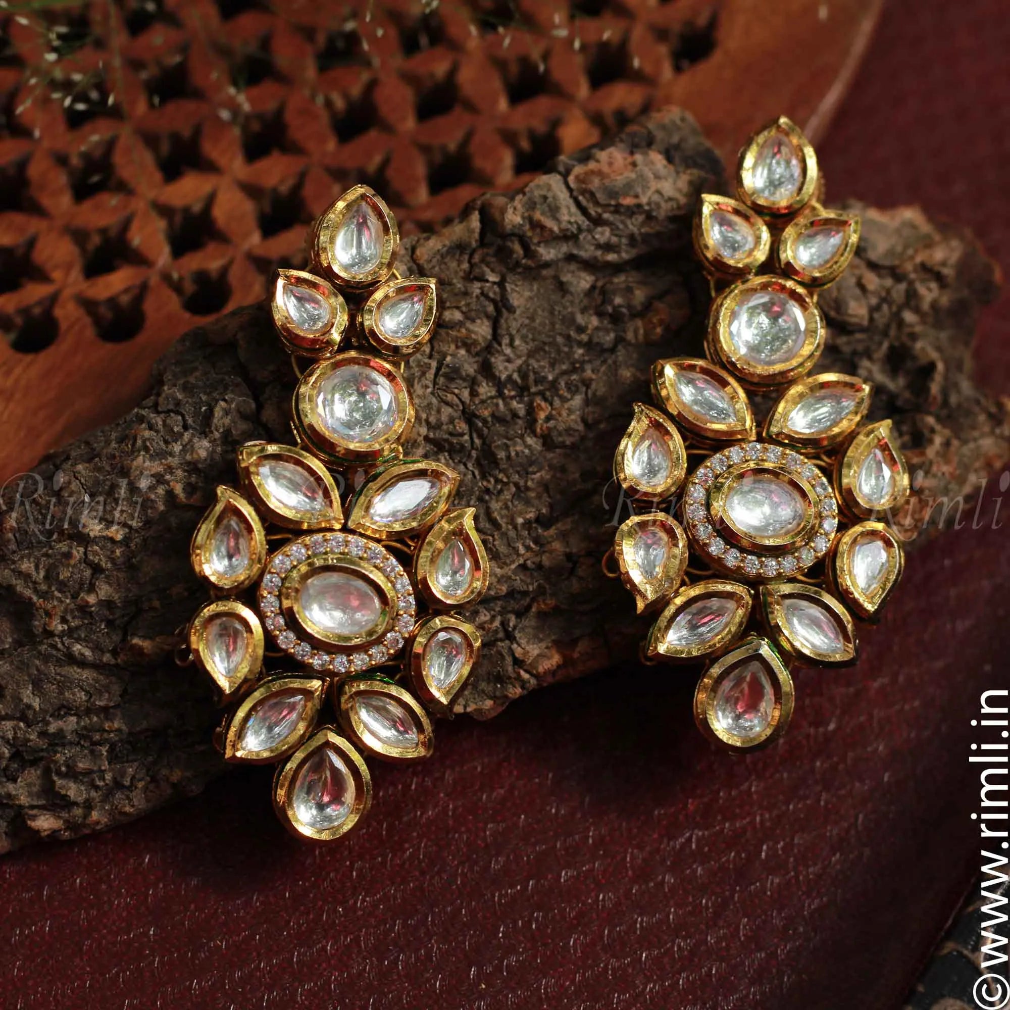 Exude timeless charm with our Classic Kundan Earrings featuring a floral design. Meticulously crafted, these earrings blend traditional elegance with modern sophistication. Perfect for adding a touch of grace and allure to your ensemble at weddings, festivals, and special occasions.