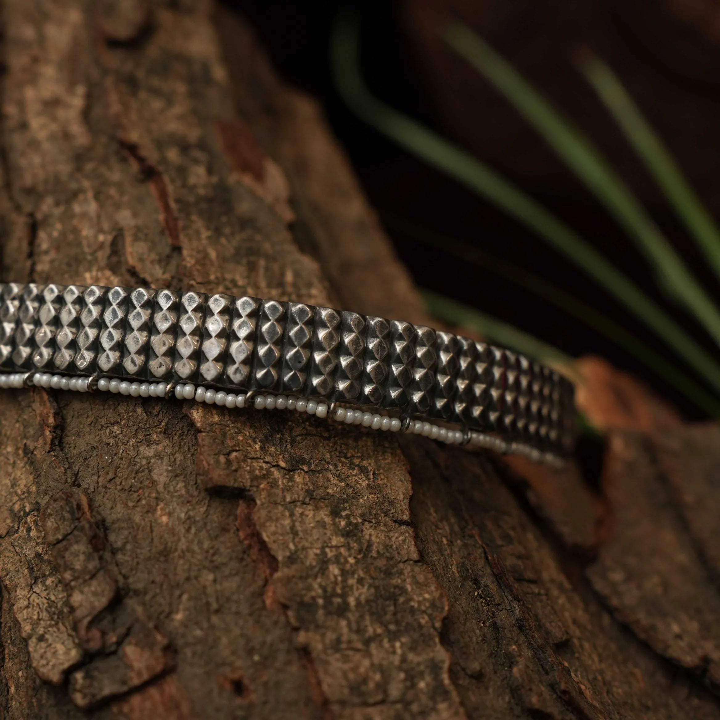 Adorn yourself with ethnic charm in our stylish 92.5 oxidized silver choker. This piece effortlessly combines tradition with contemporary style, adding a touch of sophistication to elevate your look with timeless elegance.
