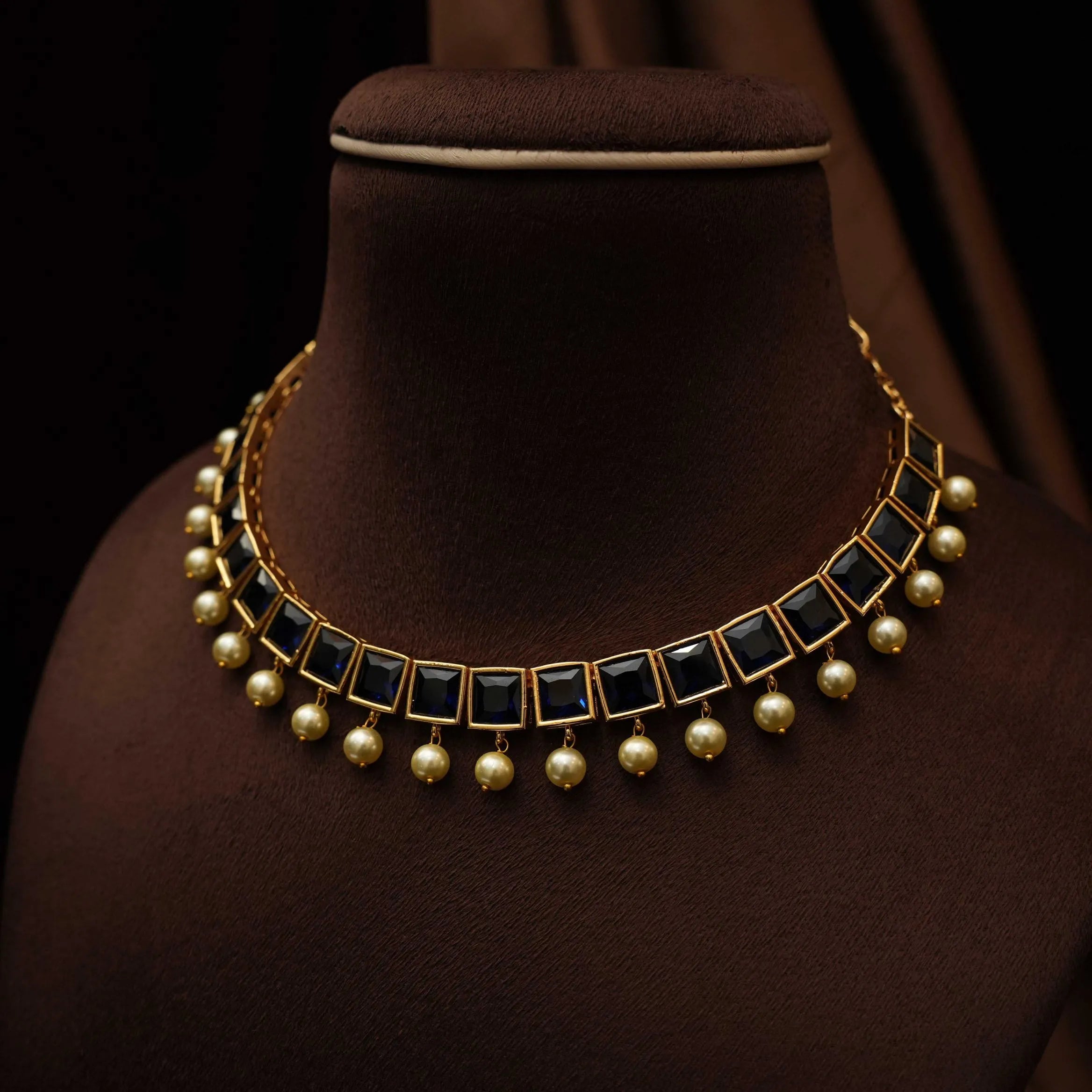 Embrace tradition with our Antique Necklace adorned with charming kemp stones and pearls. This classic piece adds a touch of vintage elegance to your ensemble, perfect for celebrating cultural occasions.