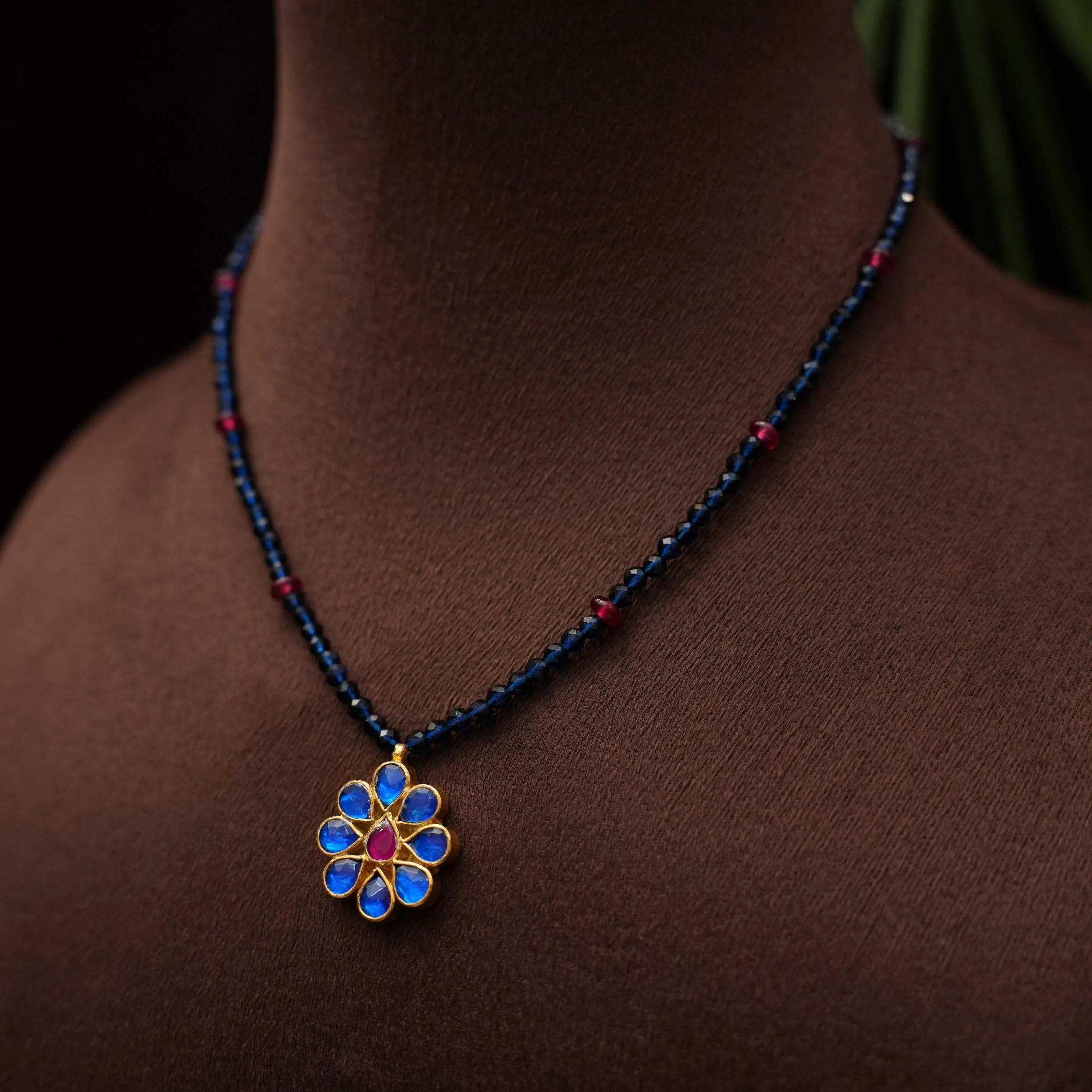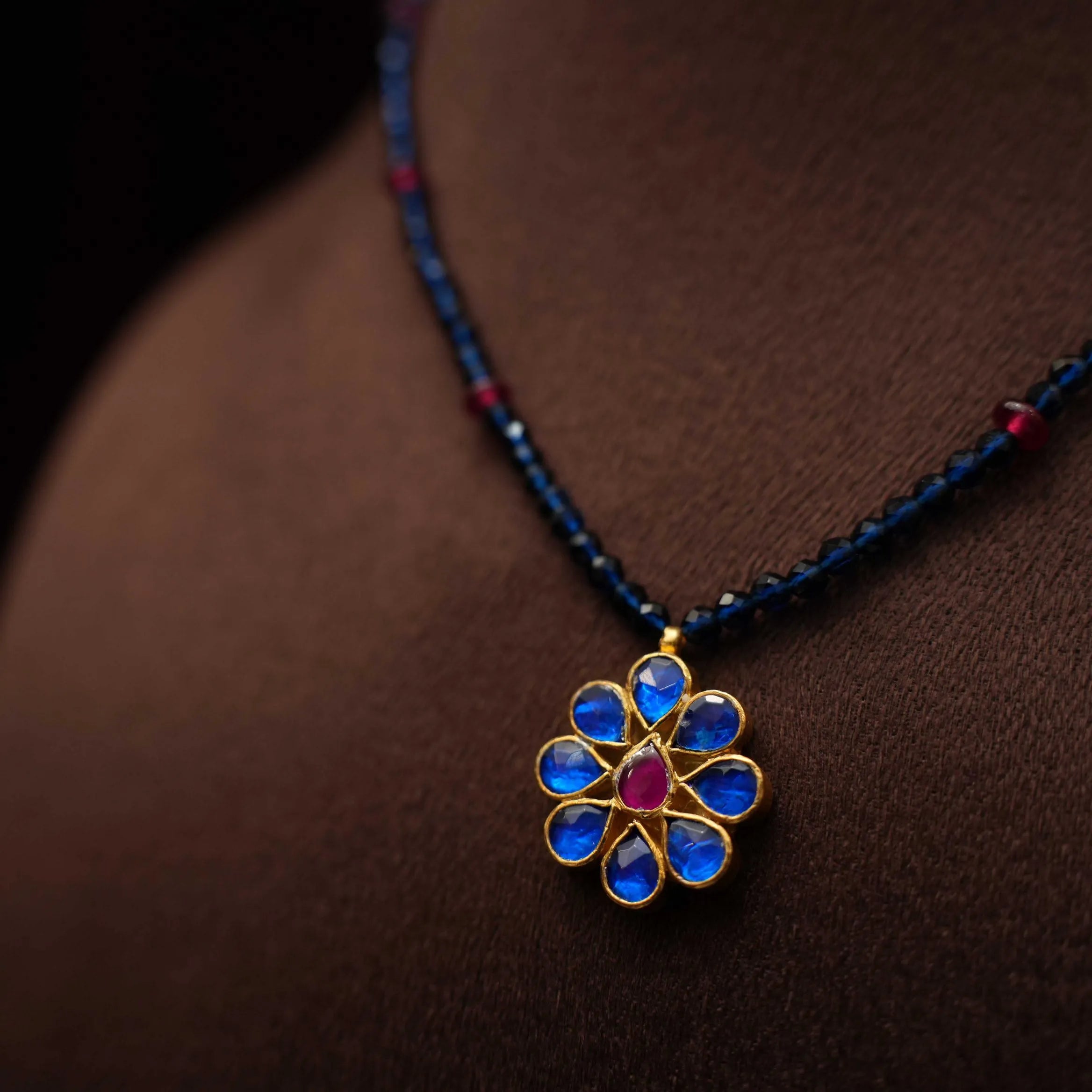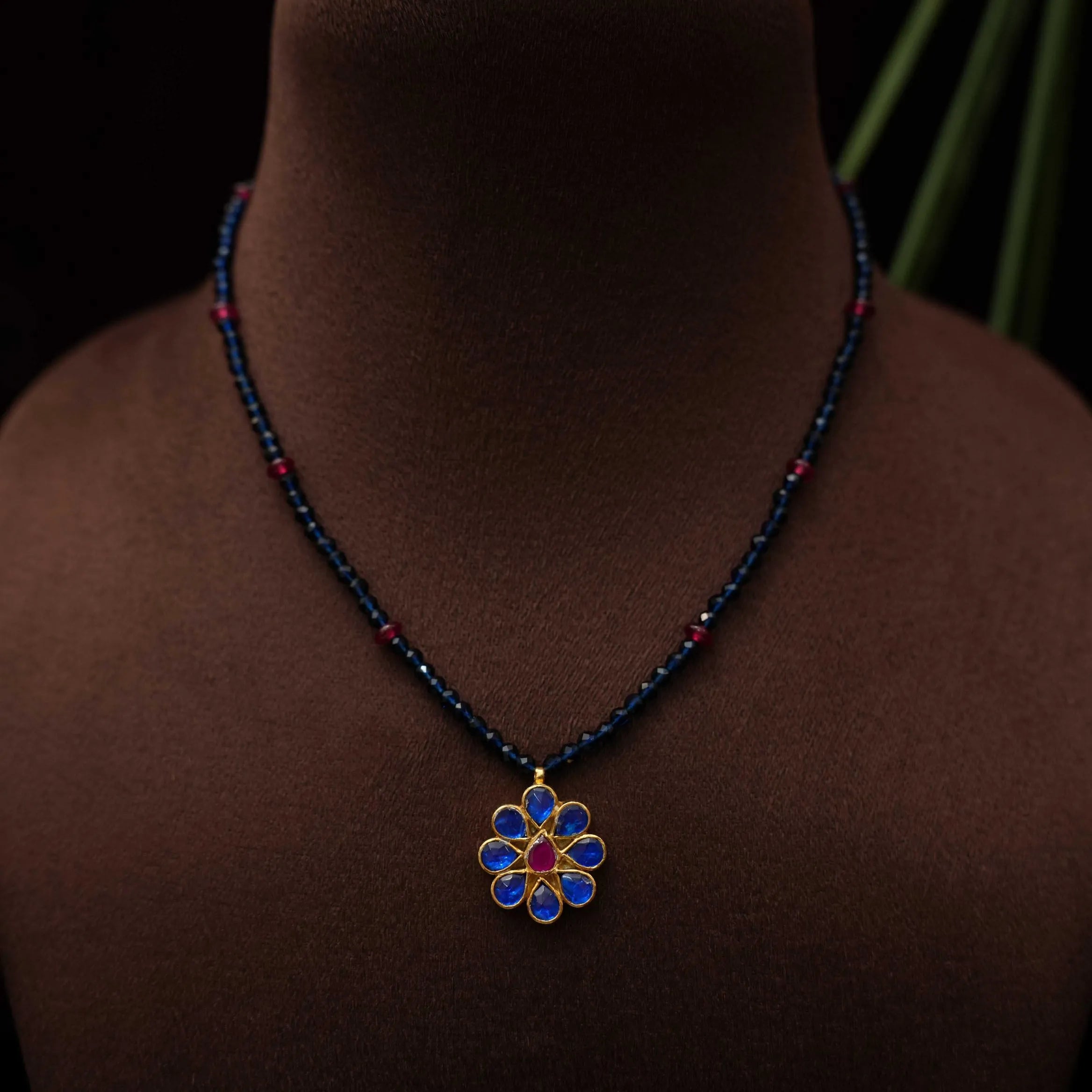 Introducing our Gautami Blue Beaded Necklace, a stunning accessory that exudes elegance and sophistication. Crafted with vibrant blue beads, this necklace adds a pop of color and style to any ensemble. Perfect for adding a touch of glamour to both casual and formal outfits, making a chic statement wherever you go.