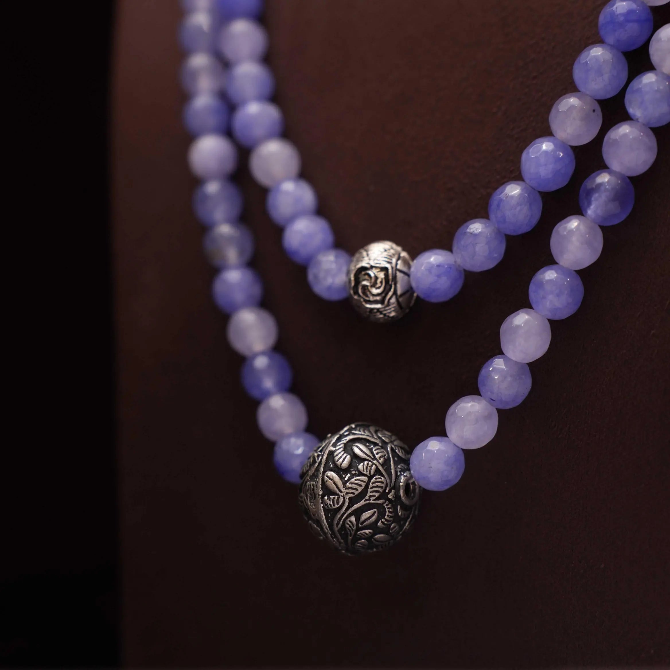 A stunning layered necklace handcrafted in purple beads paired to oxidised pendant.