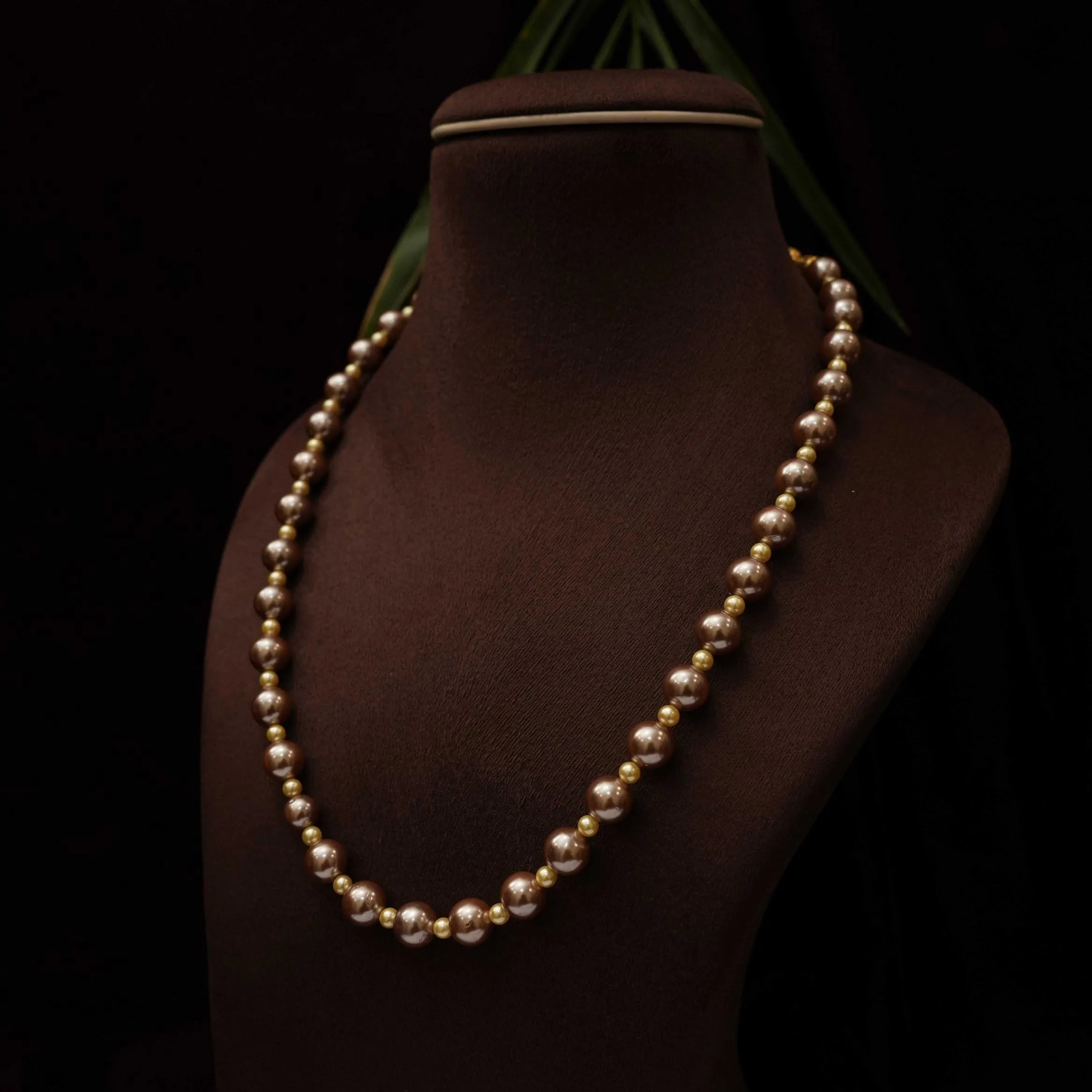 A simple & elegant beaded necklace handcrafted in copper pink beads.