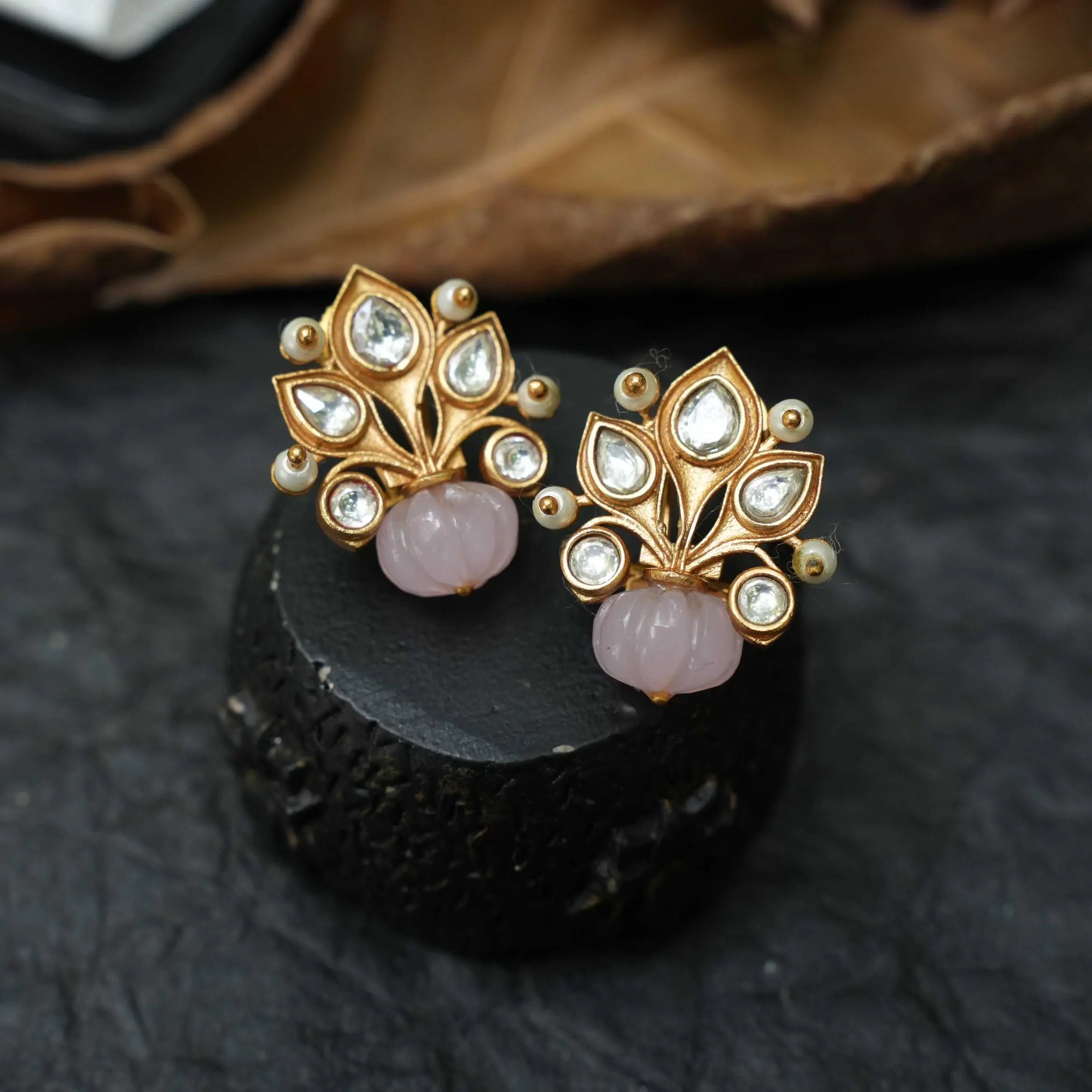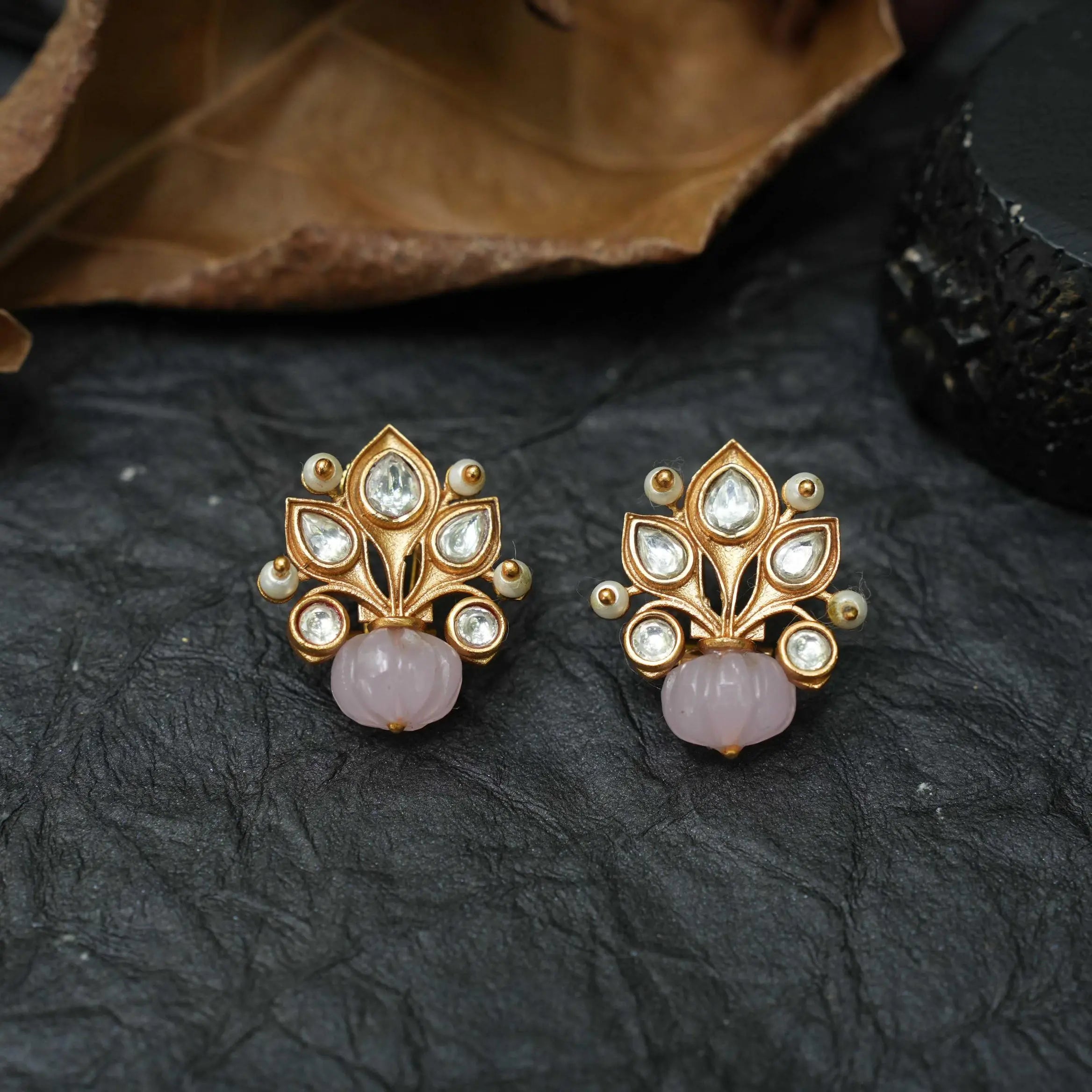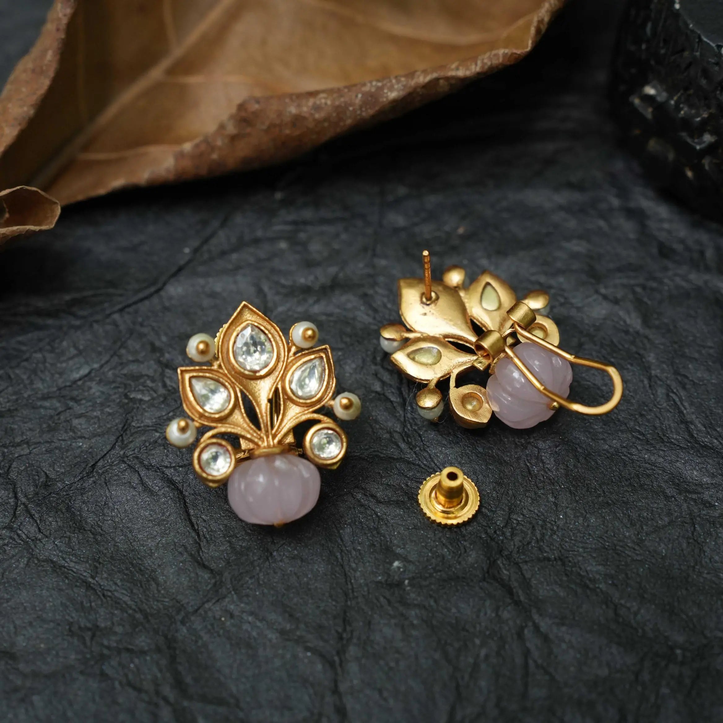 Hira Polki Ear Stud - Pastel Pink