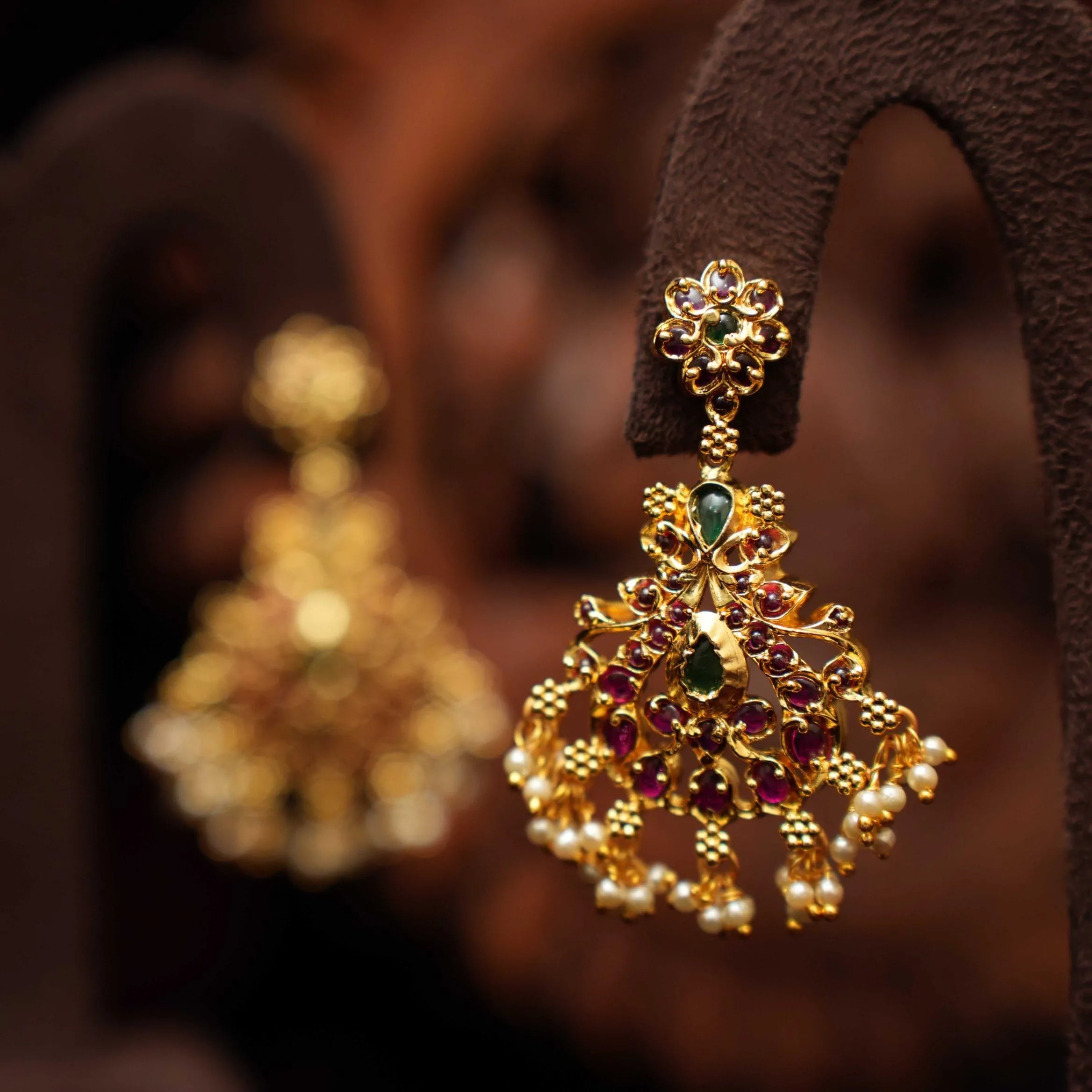 Introducing our timeless Classic Antique Designer Earrings, adorned with rich kemp stones and lustrous pearls. Crafted with intricate detailing and vintage charm, these earrings exude elegance and sophistication. Perfect for adding a touch of traditional allure to your ensemble, whether it's for a festive occasion or a cultural event. Wear these earrings with pride to showcase your refined taste and appreciation for timeless beauty.