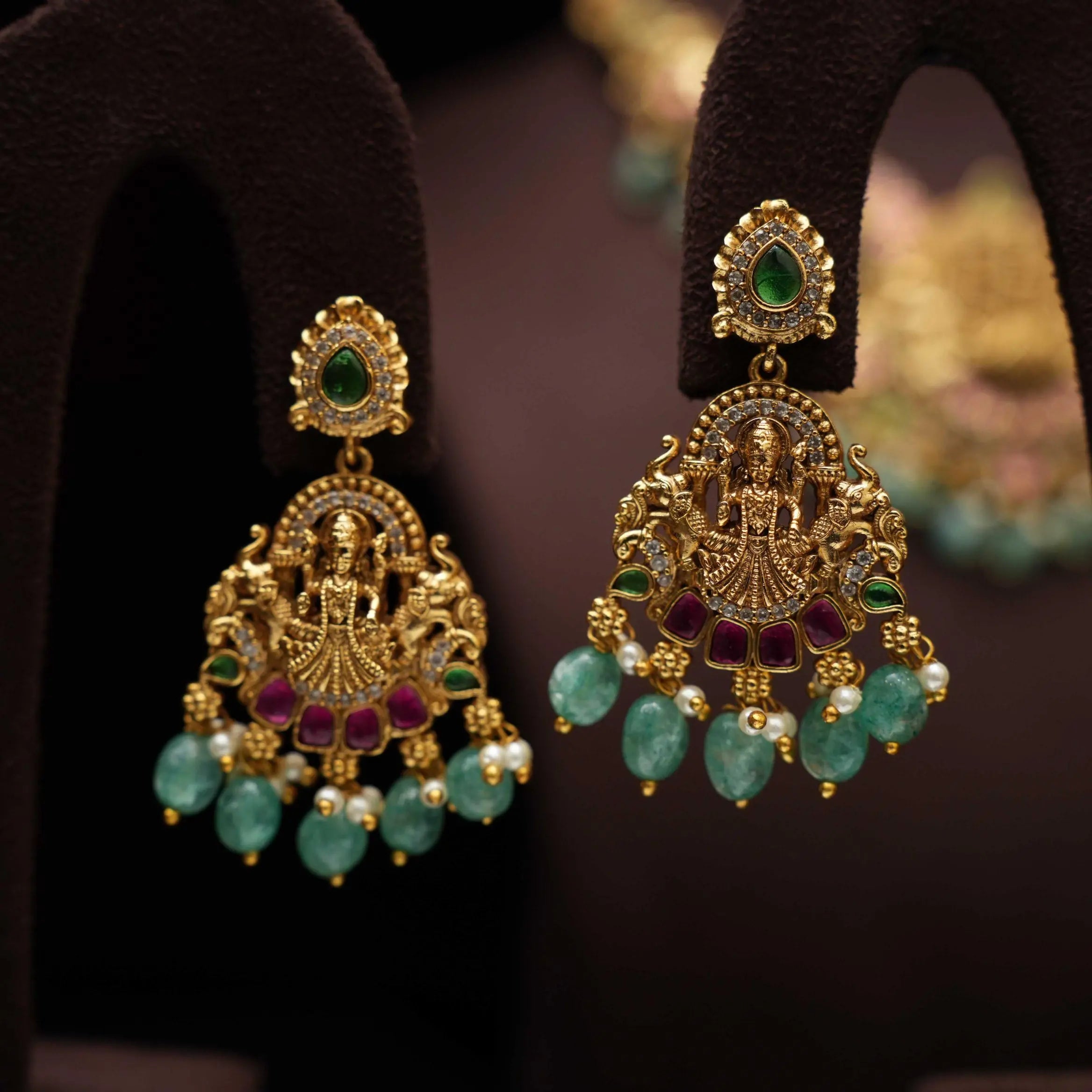 This exquisite piece is paired with matching earrings, making it a perfect ensemble for traditional celebrations, weddings, and festive occasions.