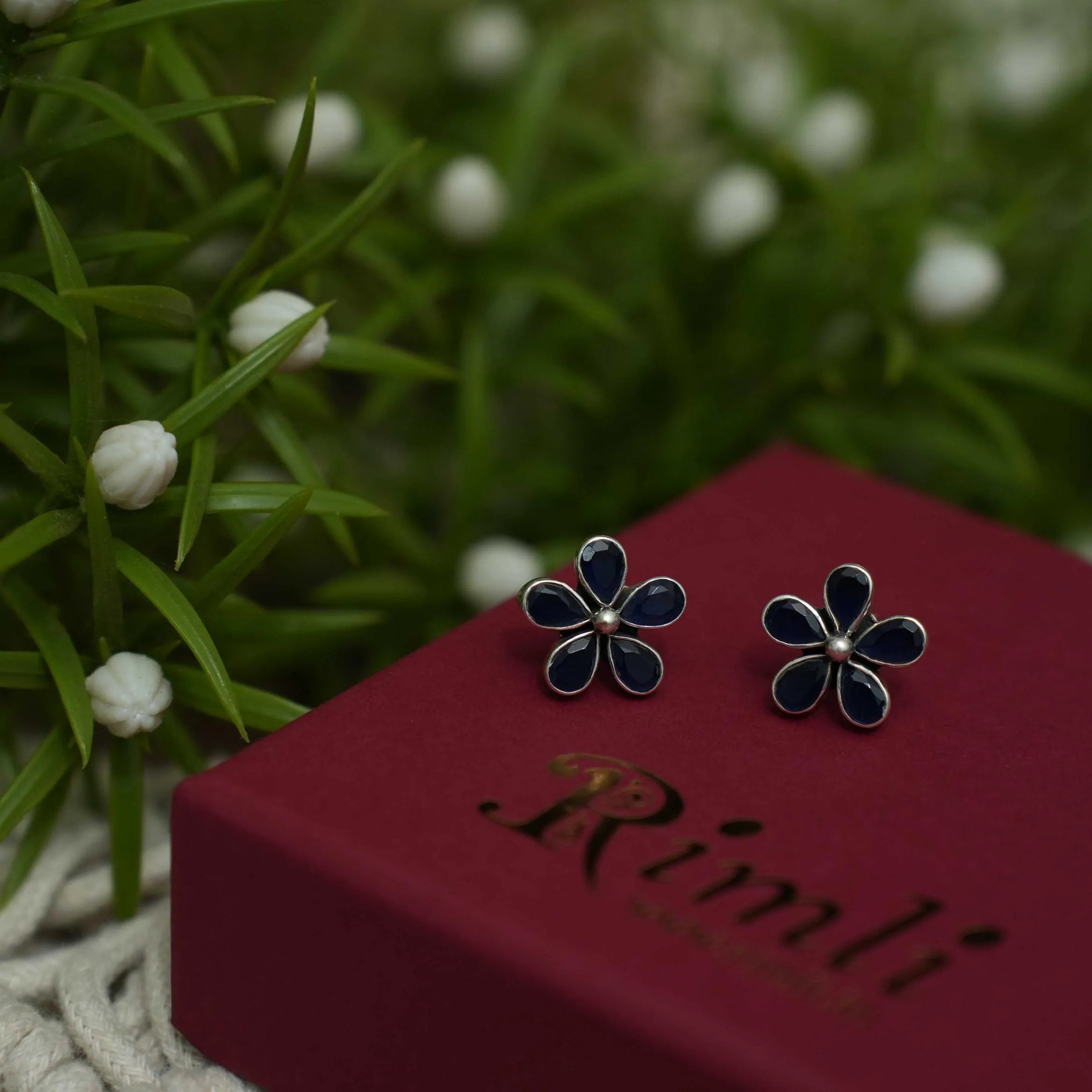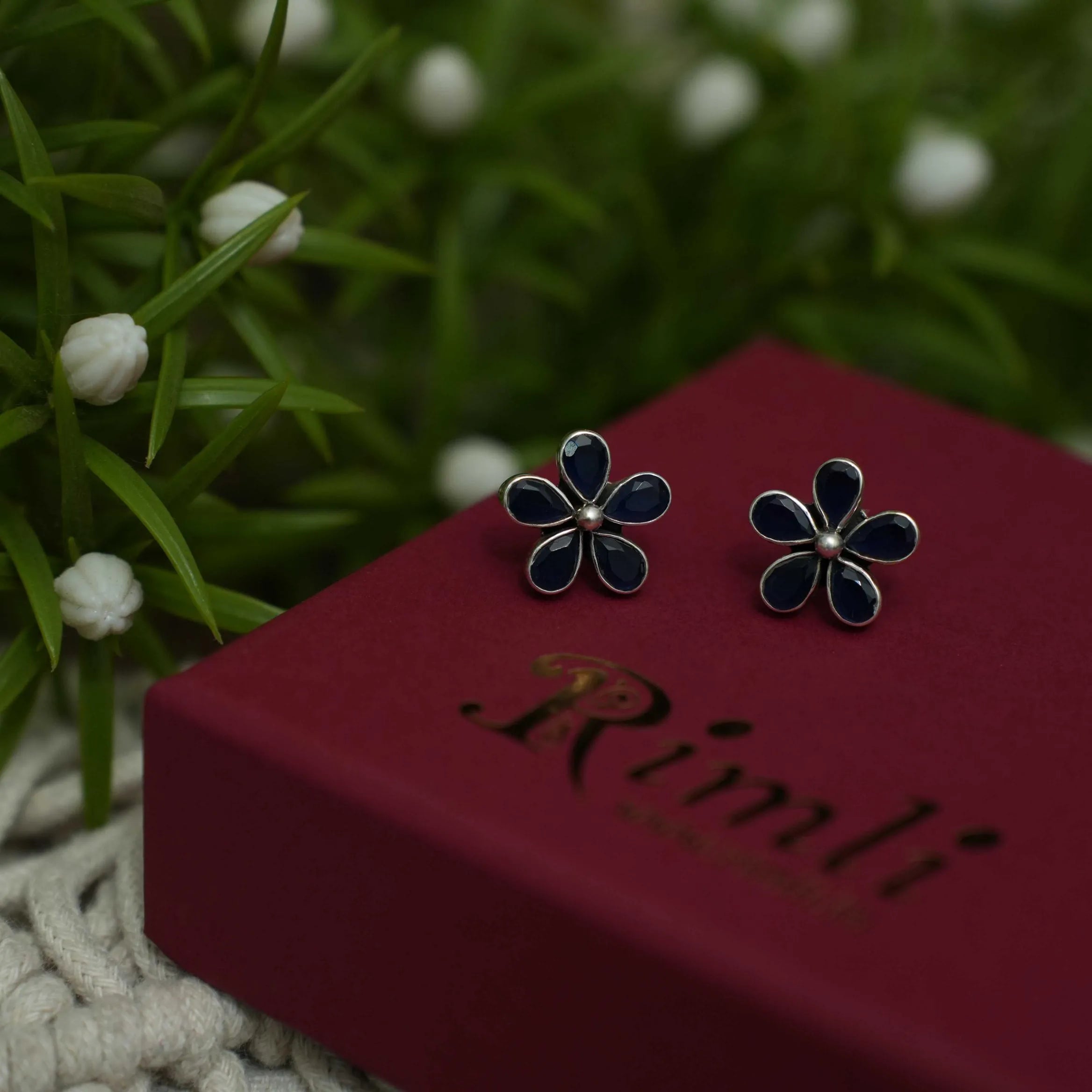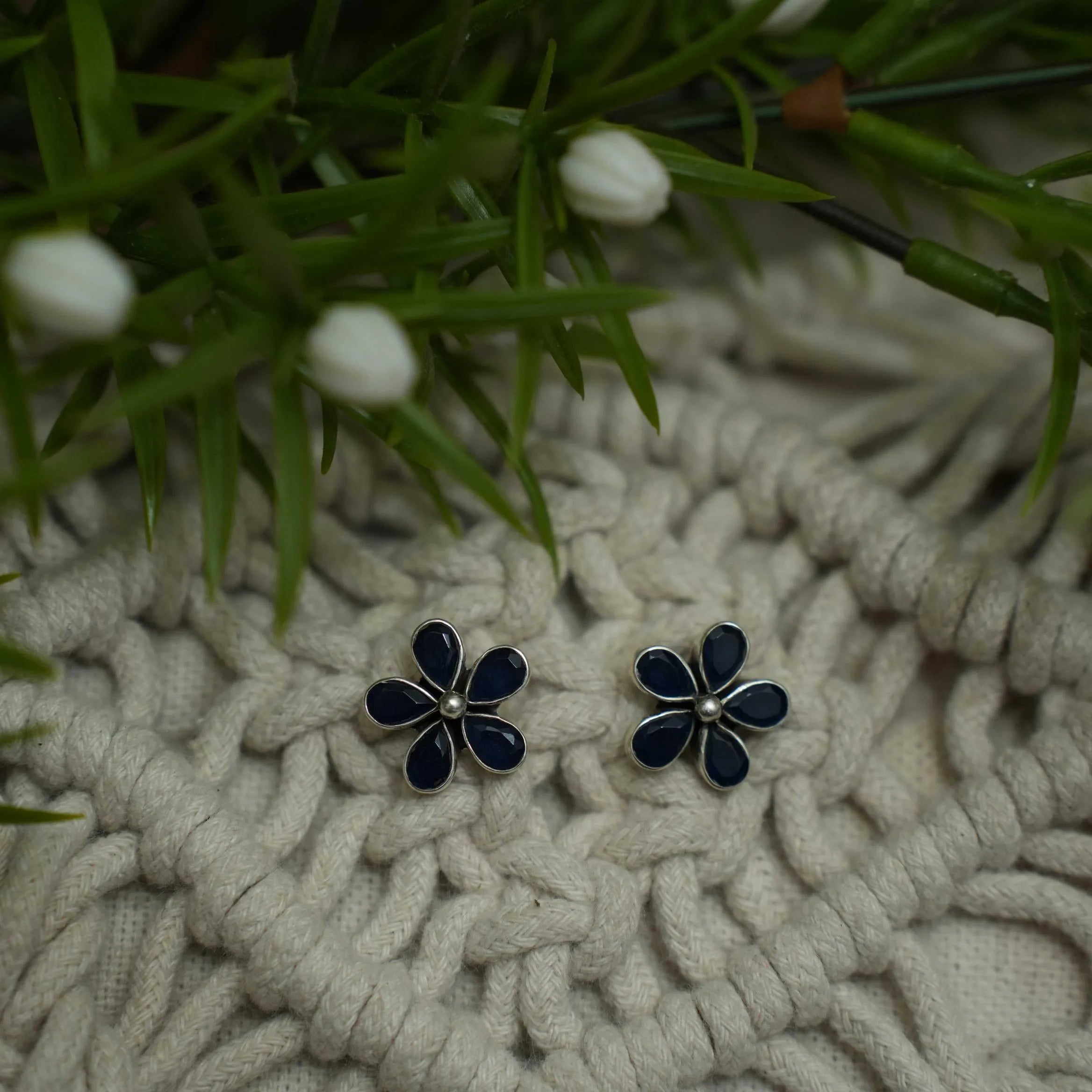 Jaksh Silver 925 Oxidised Ear Stud - Blue