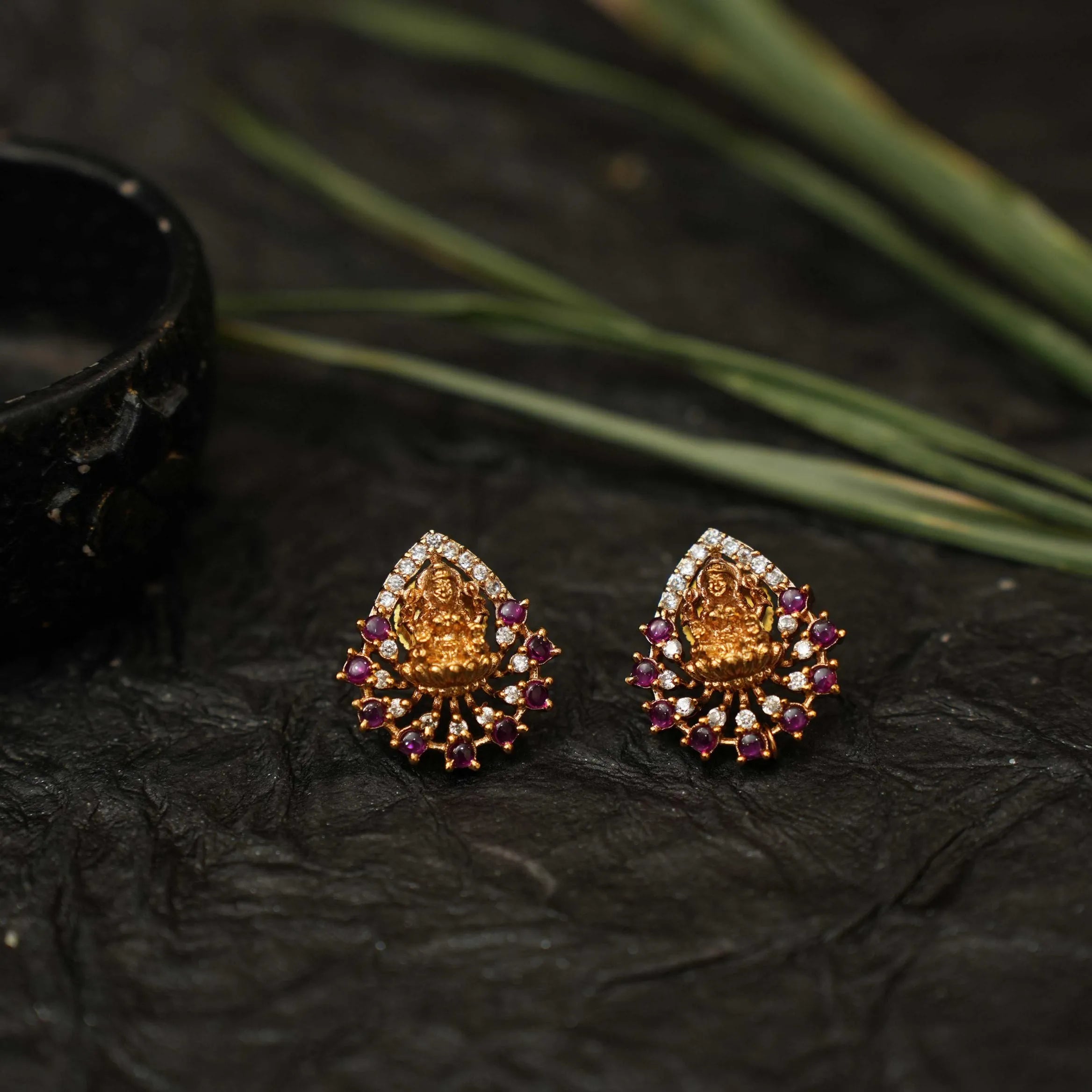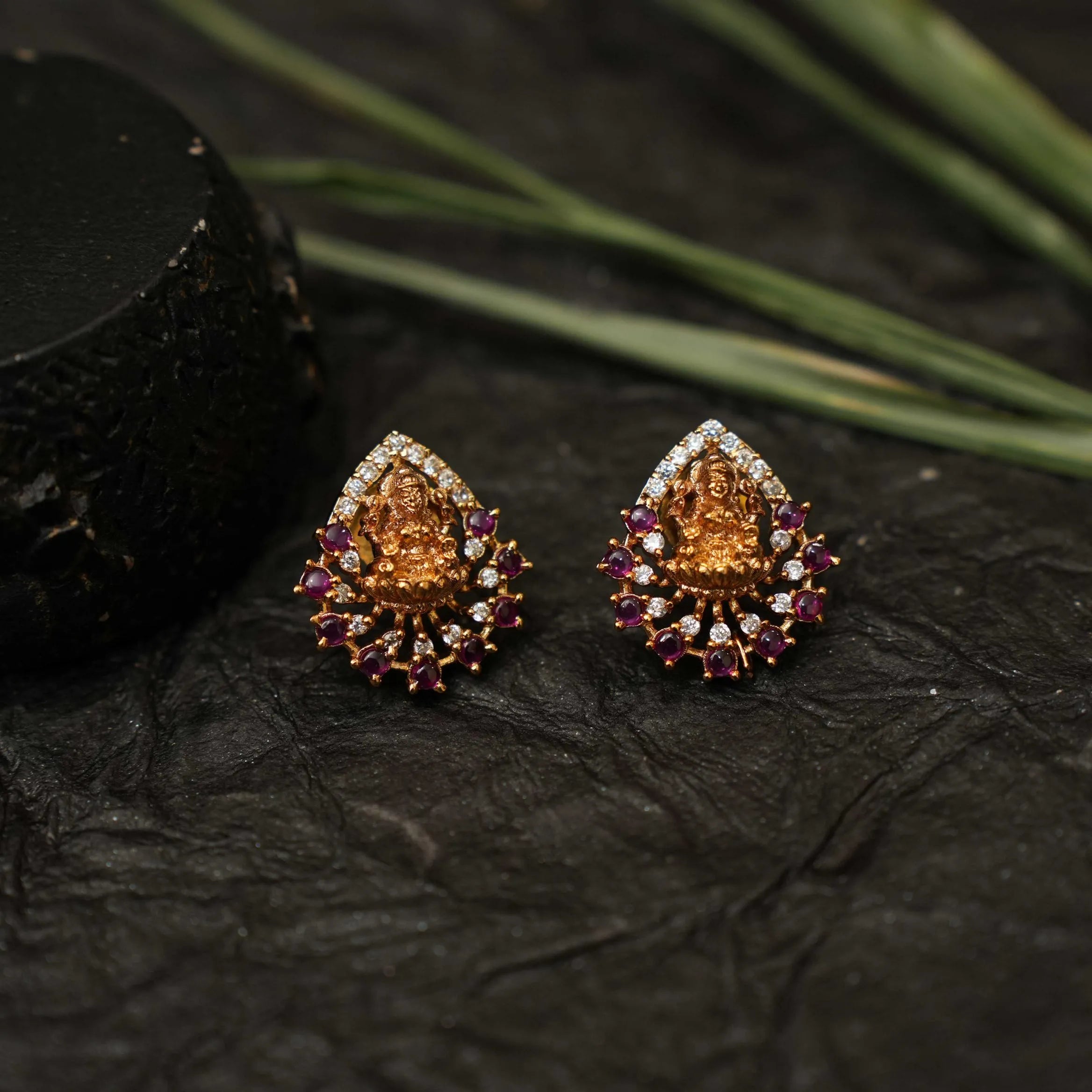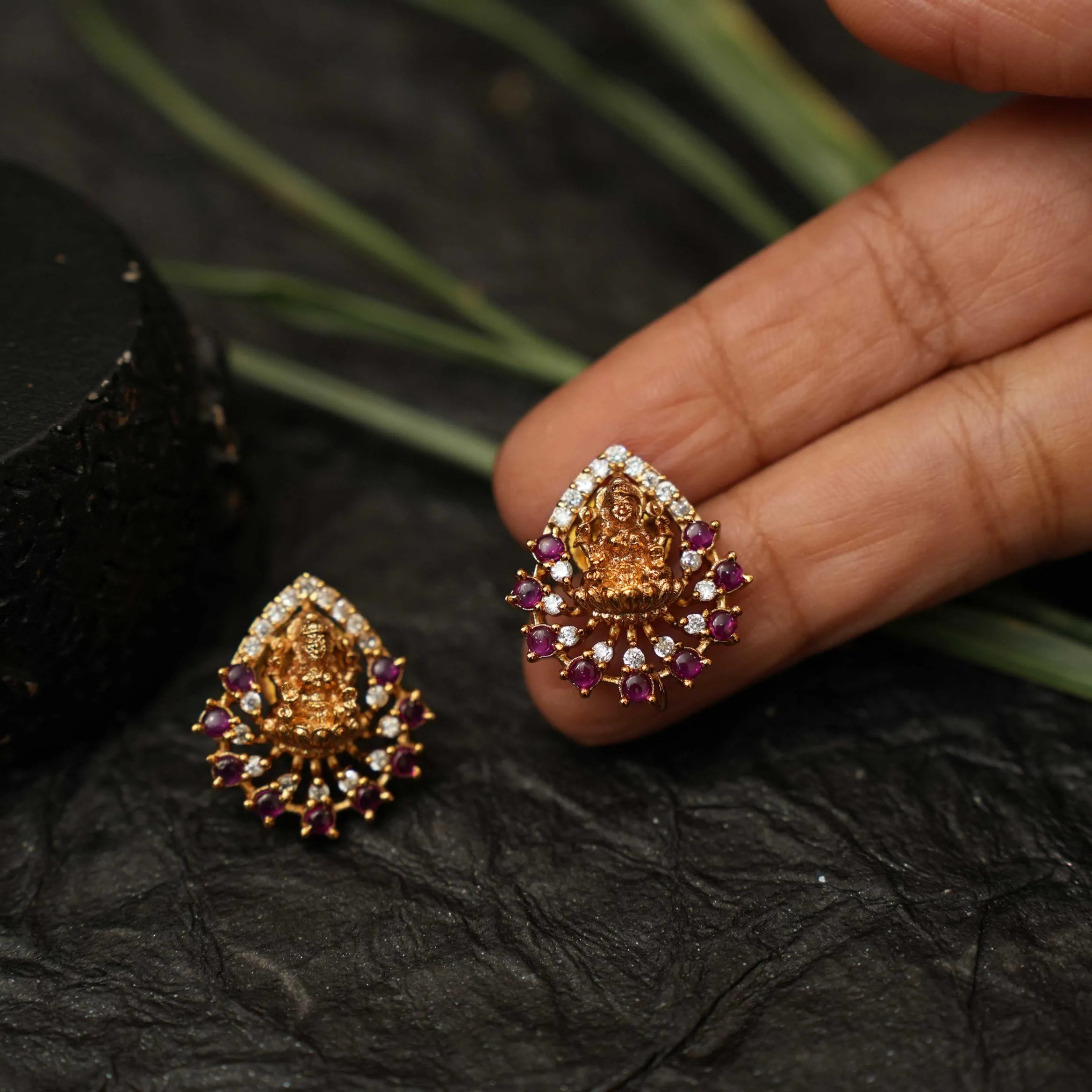 A simple & elegant ear stud in Goddess motif adorn with zircon stones.