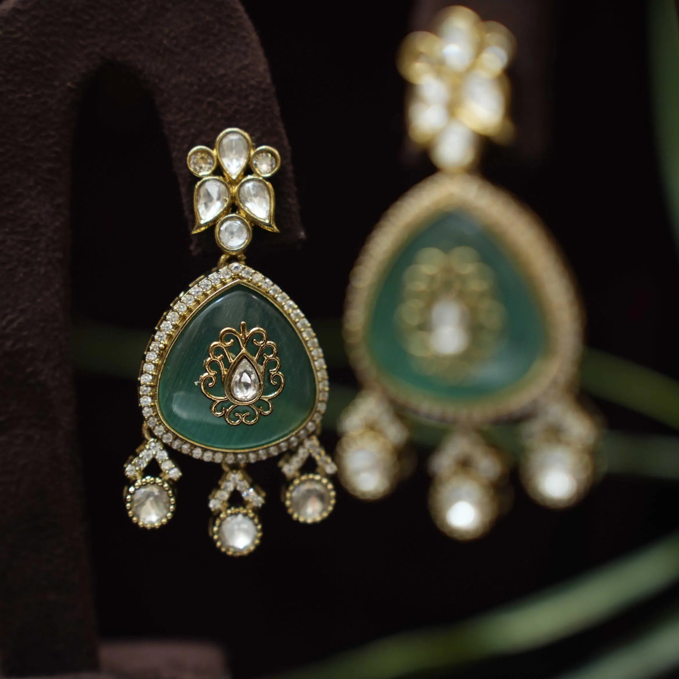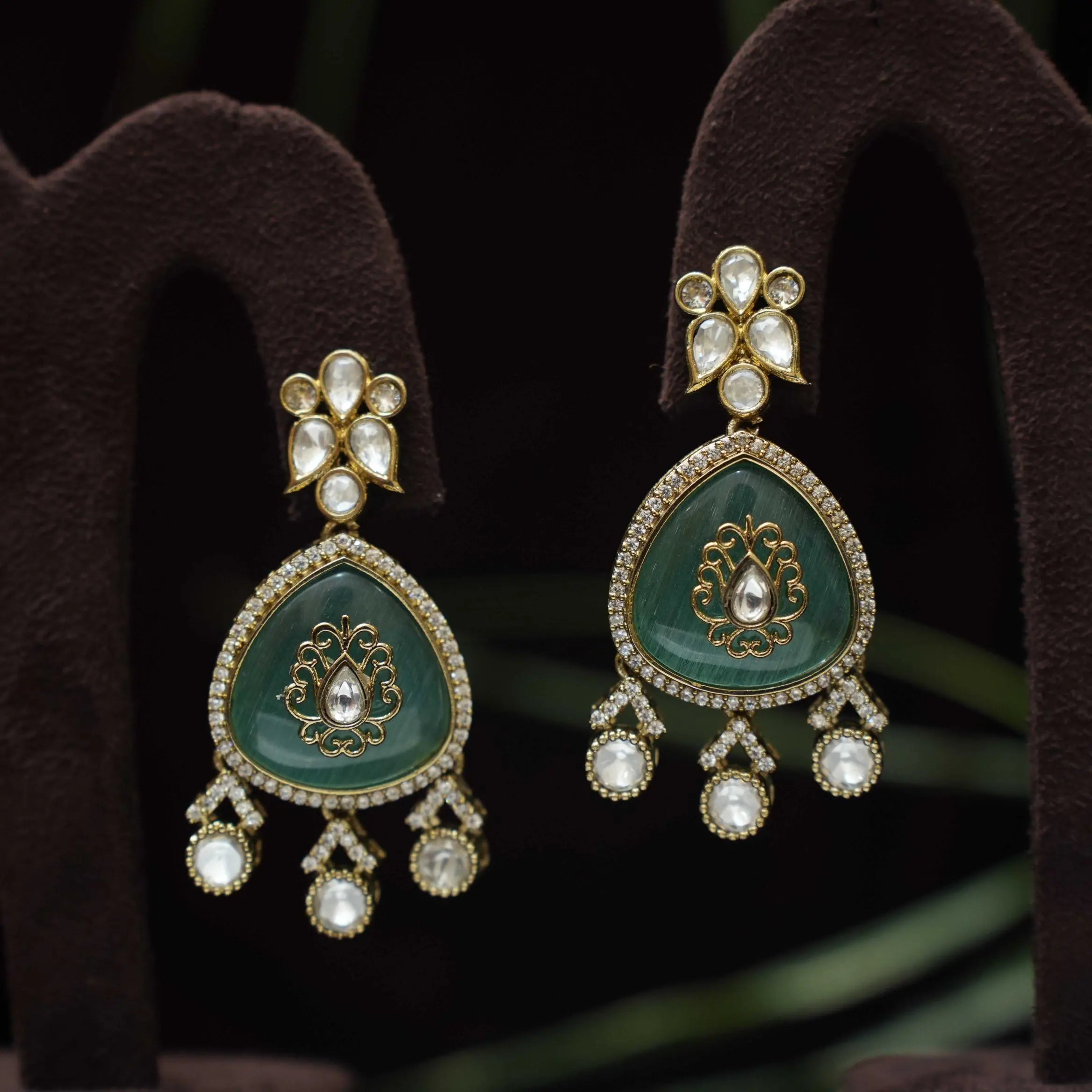 A contemporary designer earrings handcrafted in peacock motif studded with agate and pearls.
