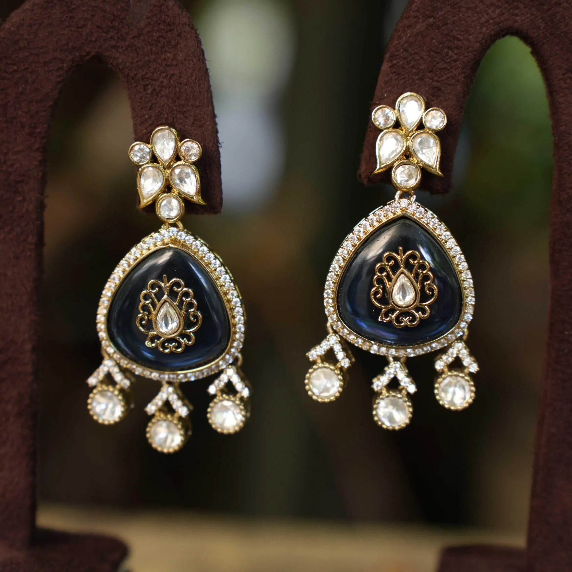A beautiful designer earrings studded with Victorian Polki stones adorn with agate.