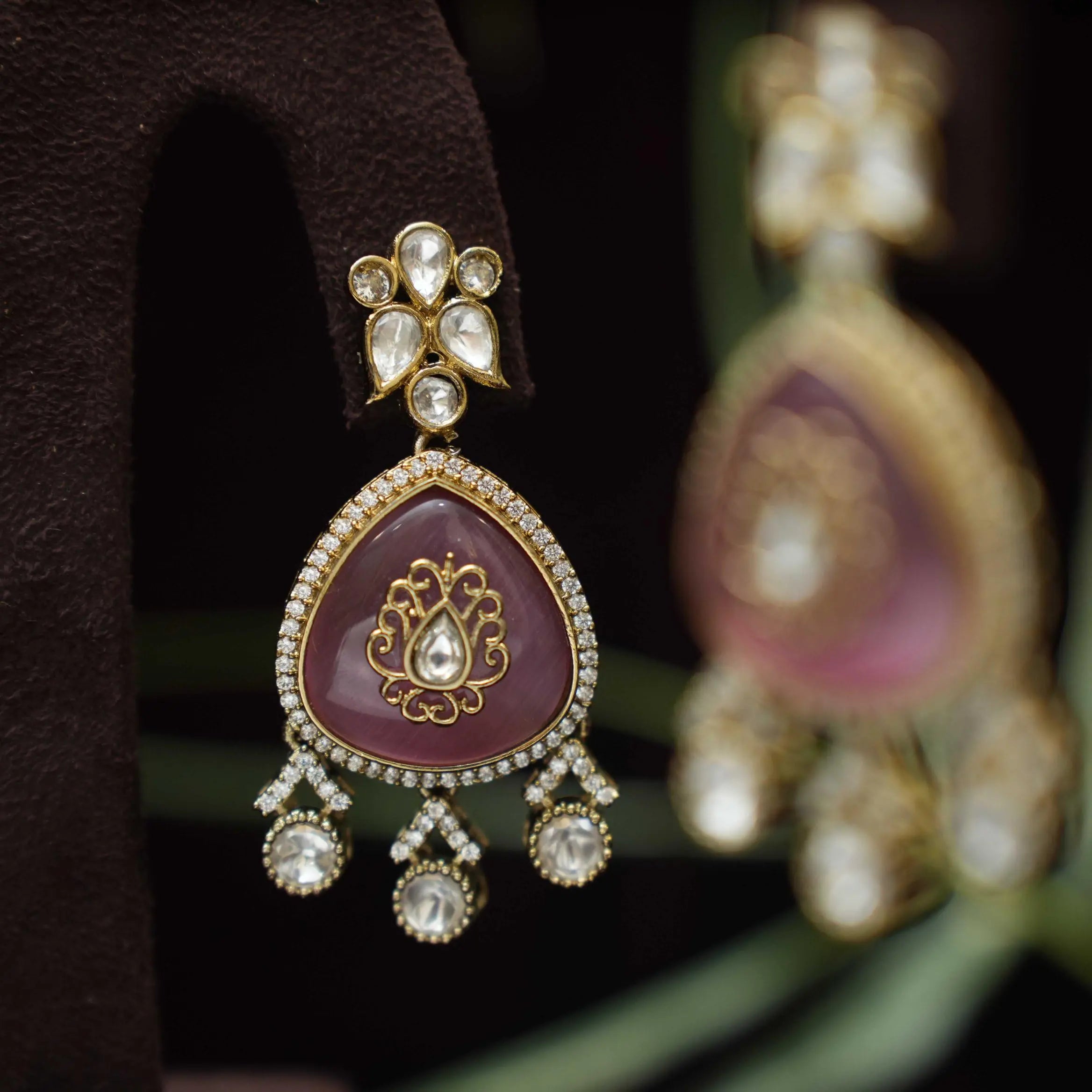 A beautiful designer earrings studded with Victorian Polki stones adorn with agate.