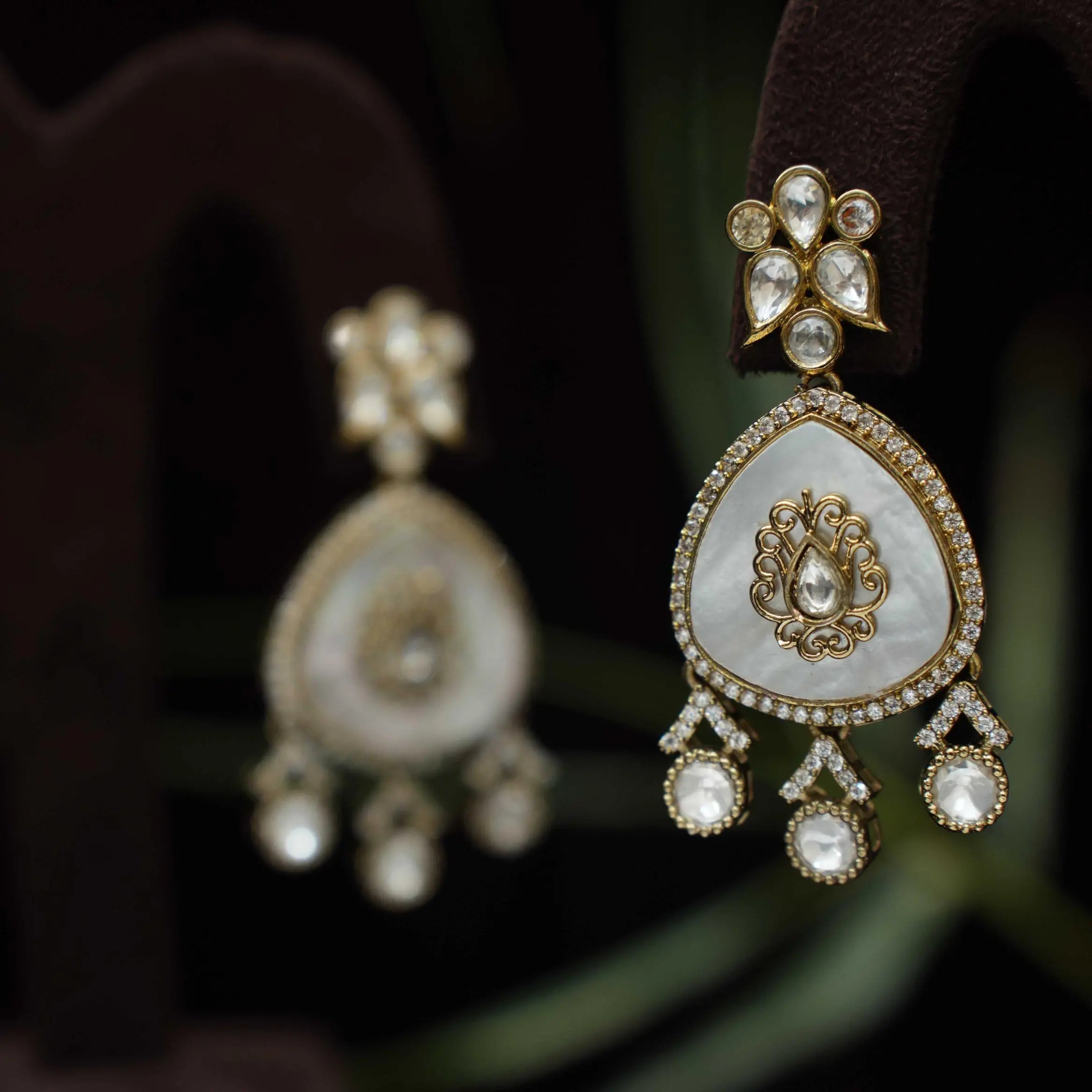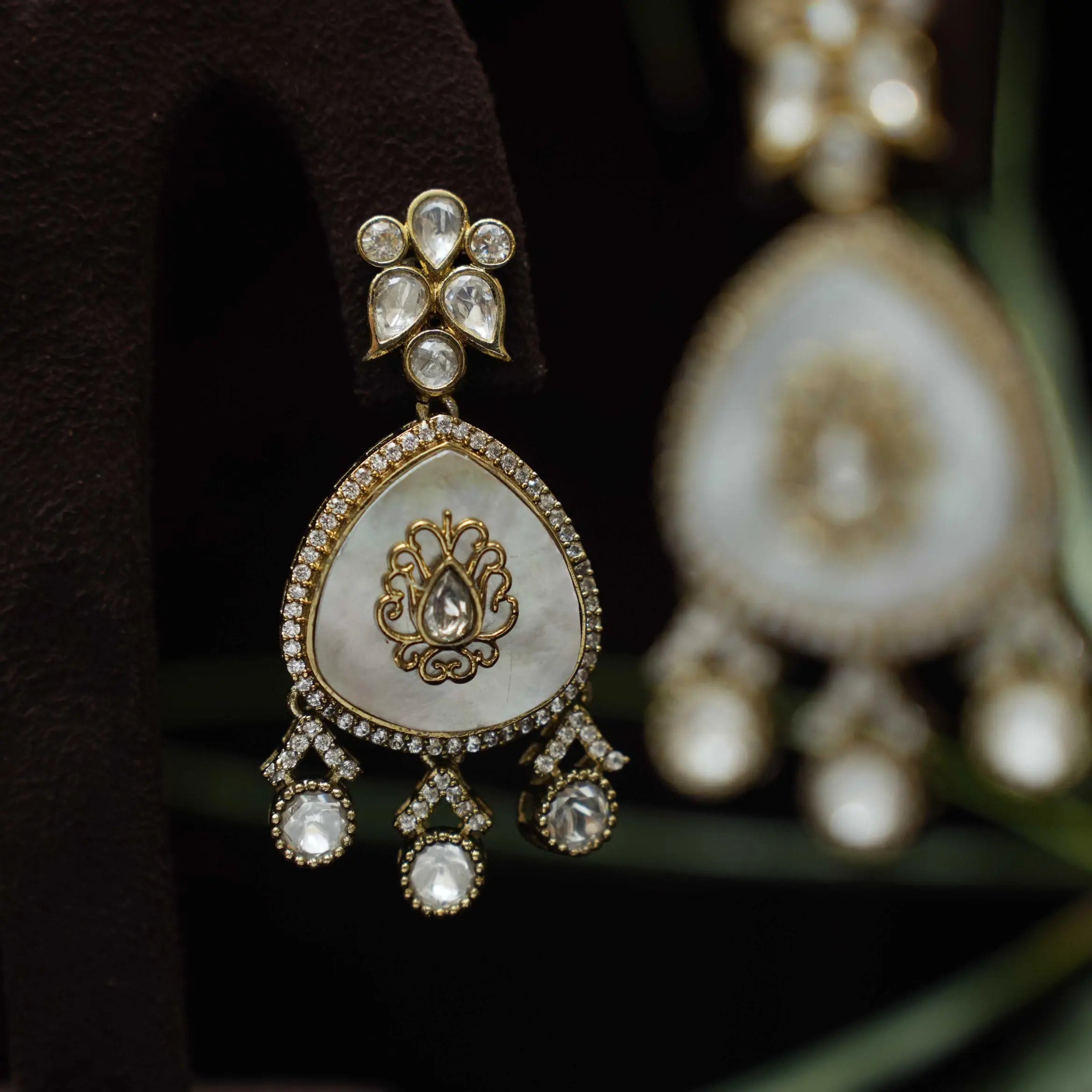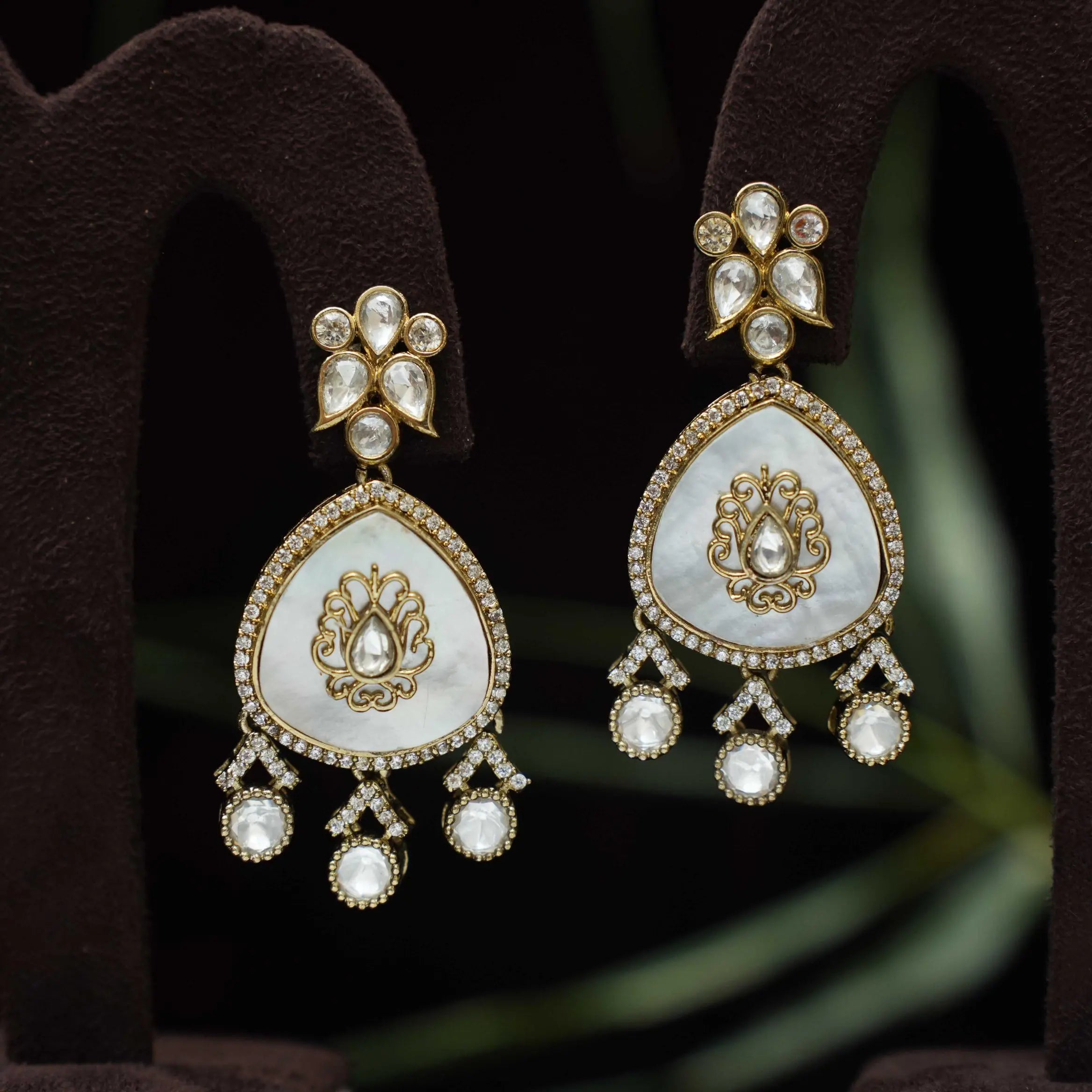 A beautiful designer earrings studded with Victorian Polki stones adorn with agate.