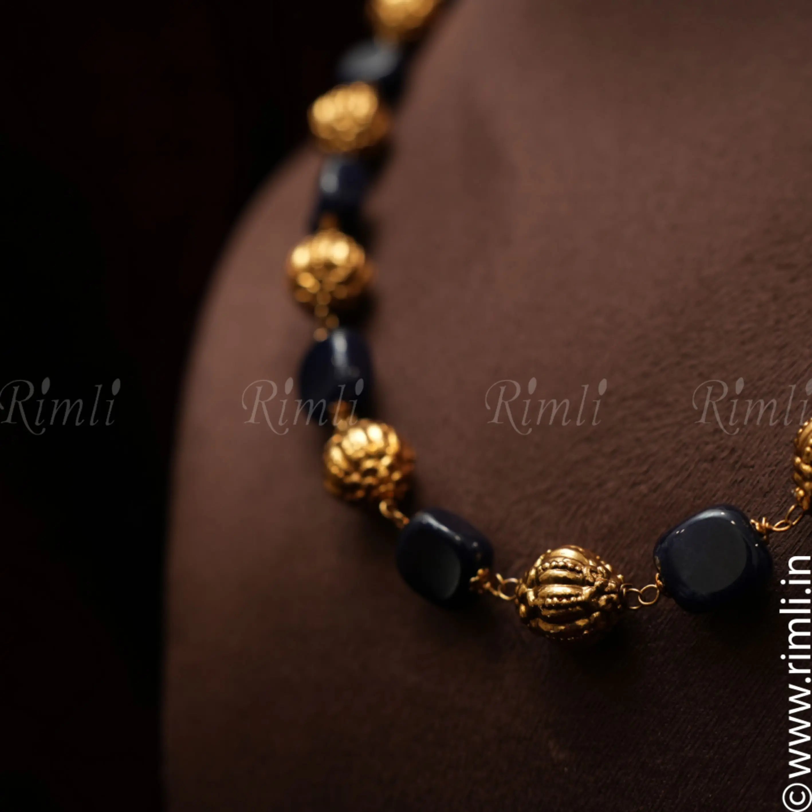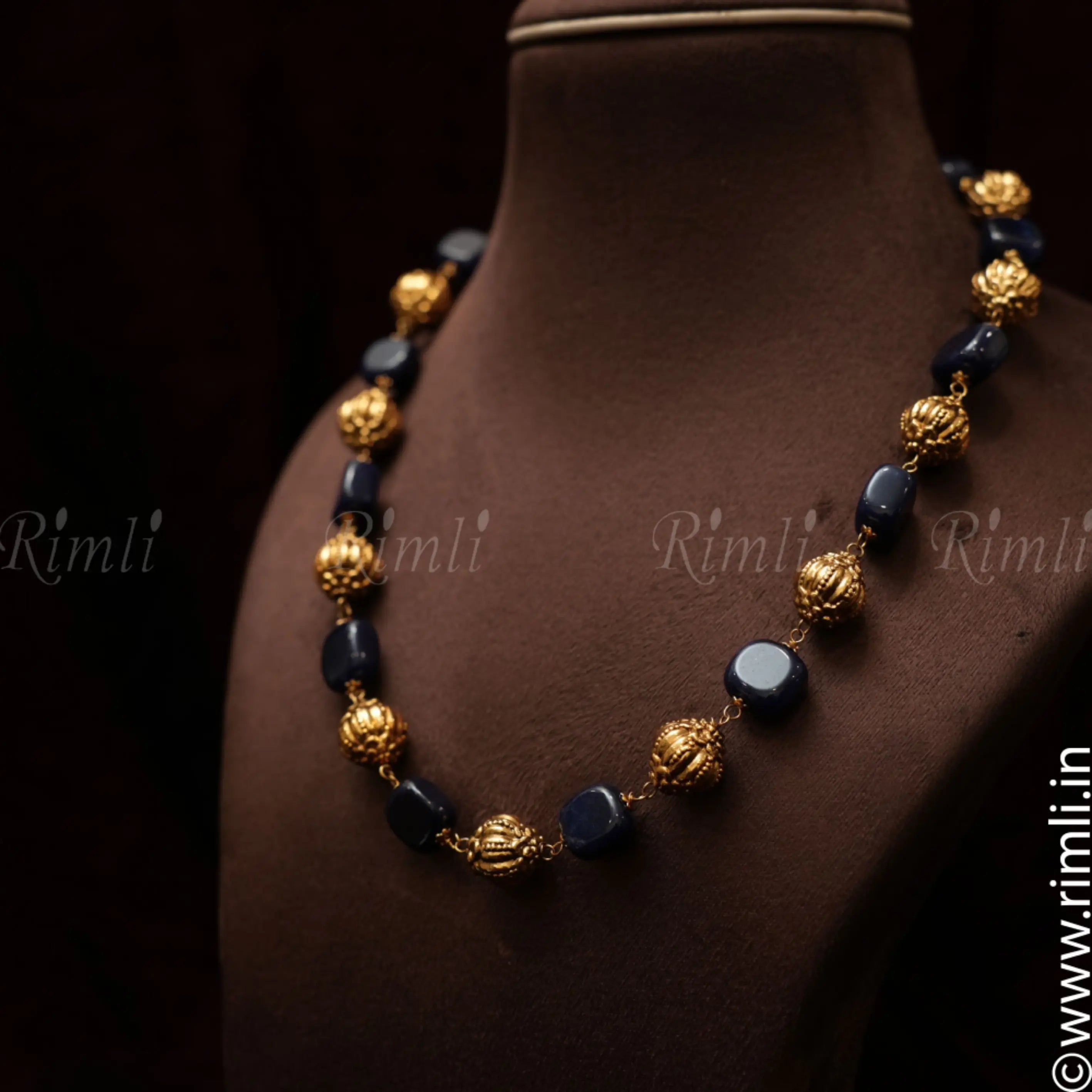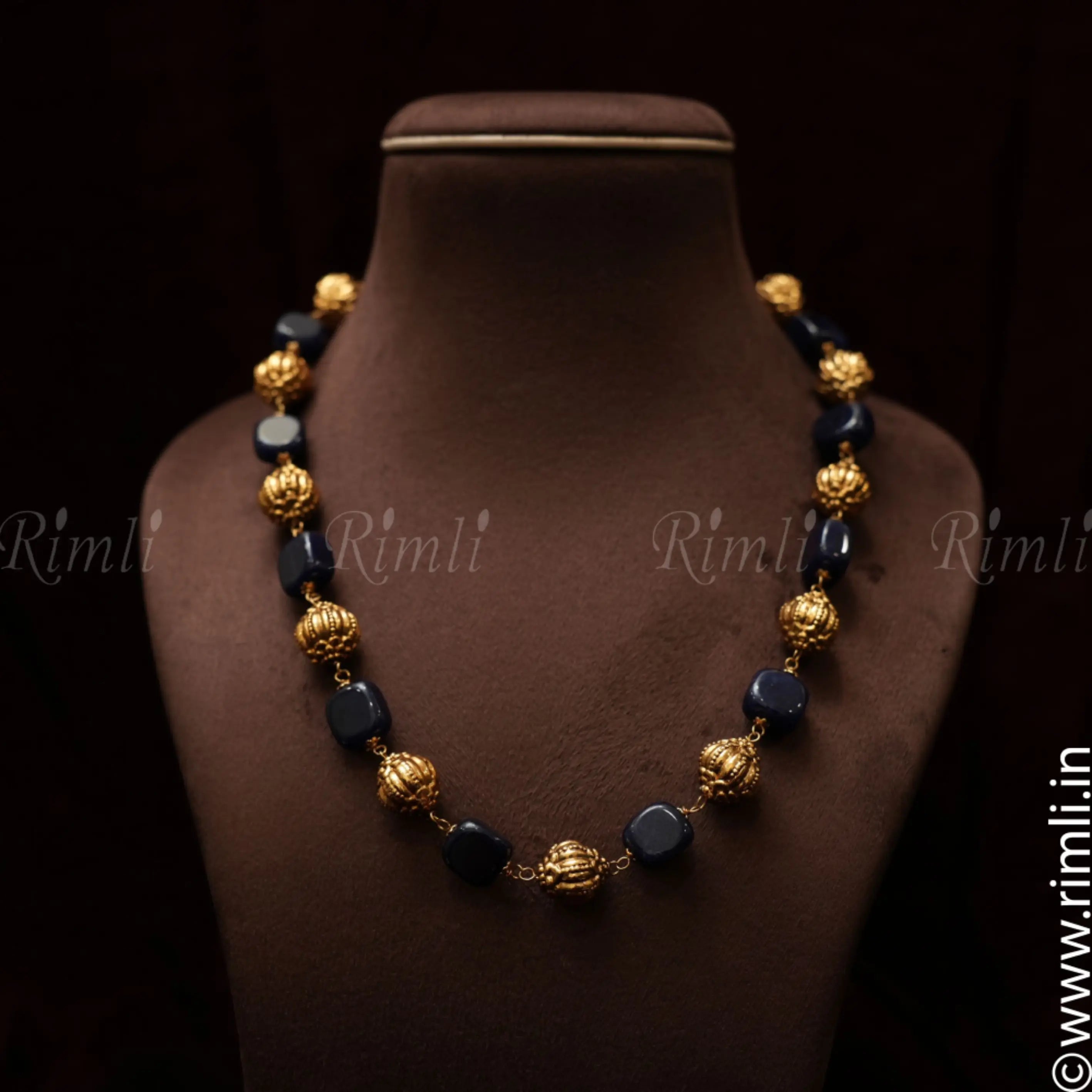 A classic necklace handcrafted with golden balls and blue beads finely finished in Nagas finish.