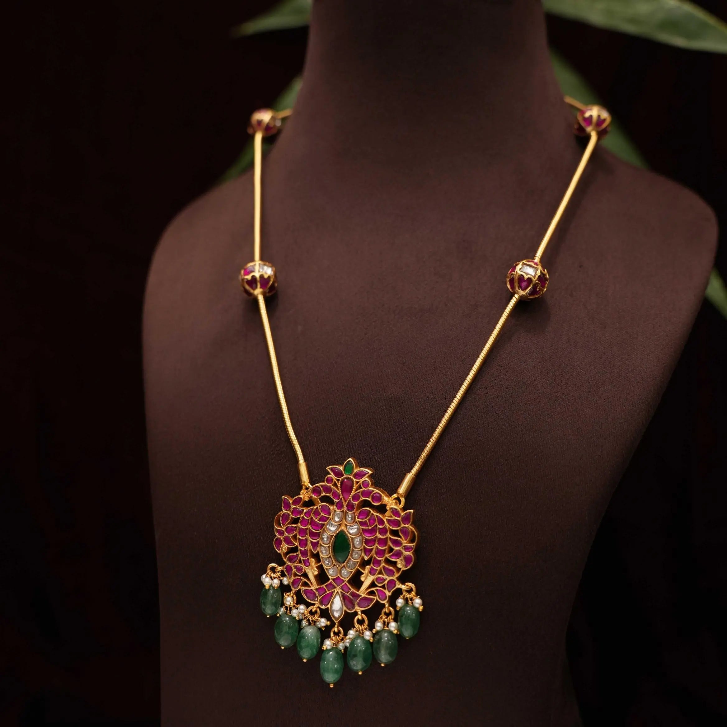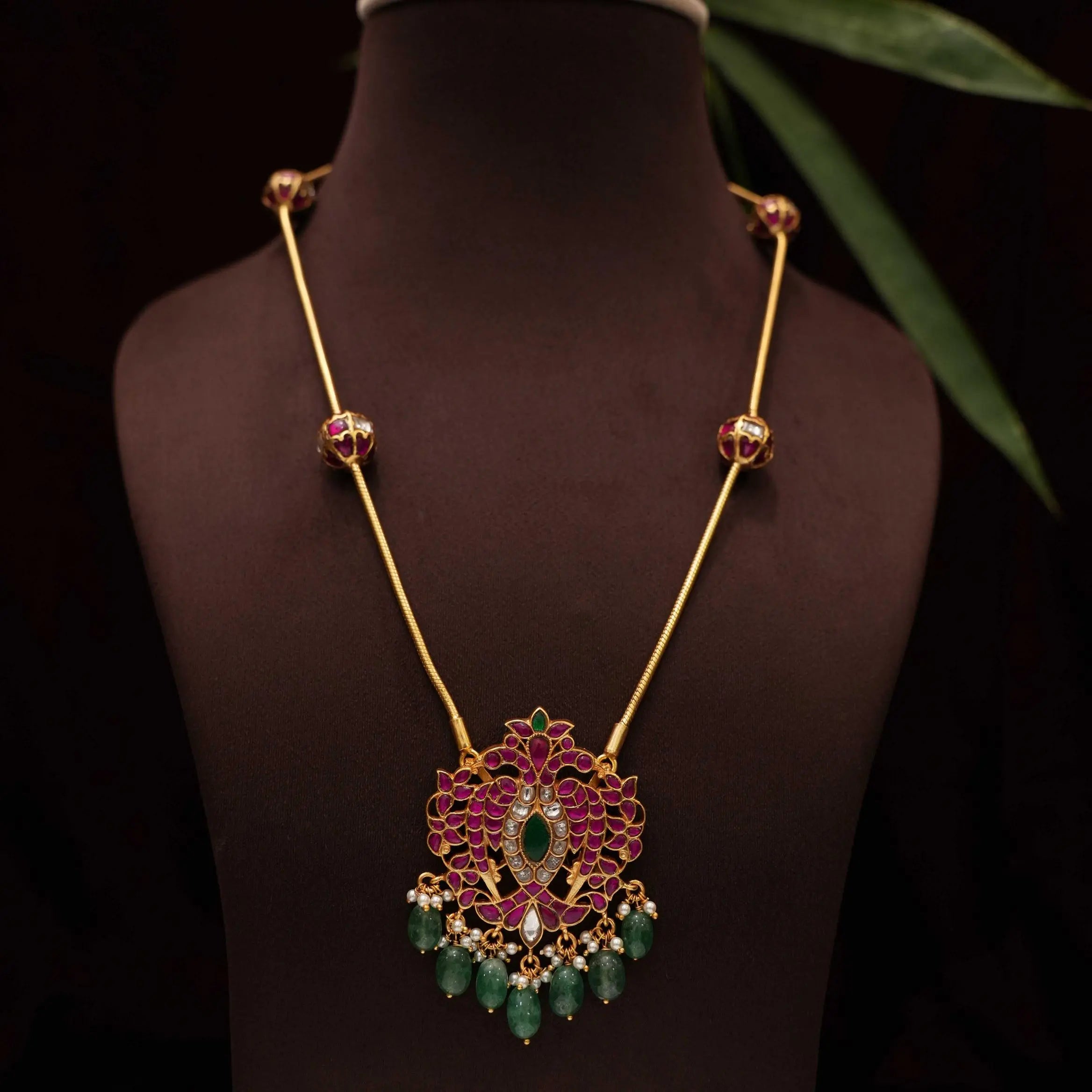 Delicate beads and finely detailed jadau balls enhance the pendant, adding depth, texture, and a refined elegance to the piece. Crafted in pure silver, this necklace effortlessly blends cultural charm with timeless sophistication.
