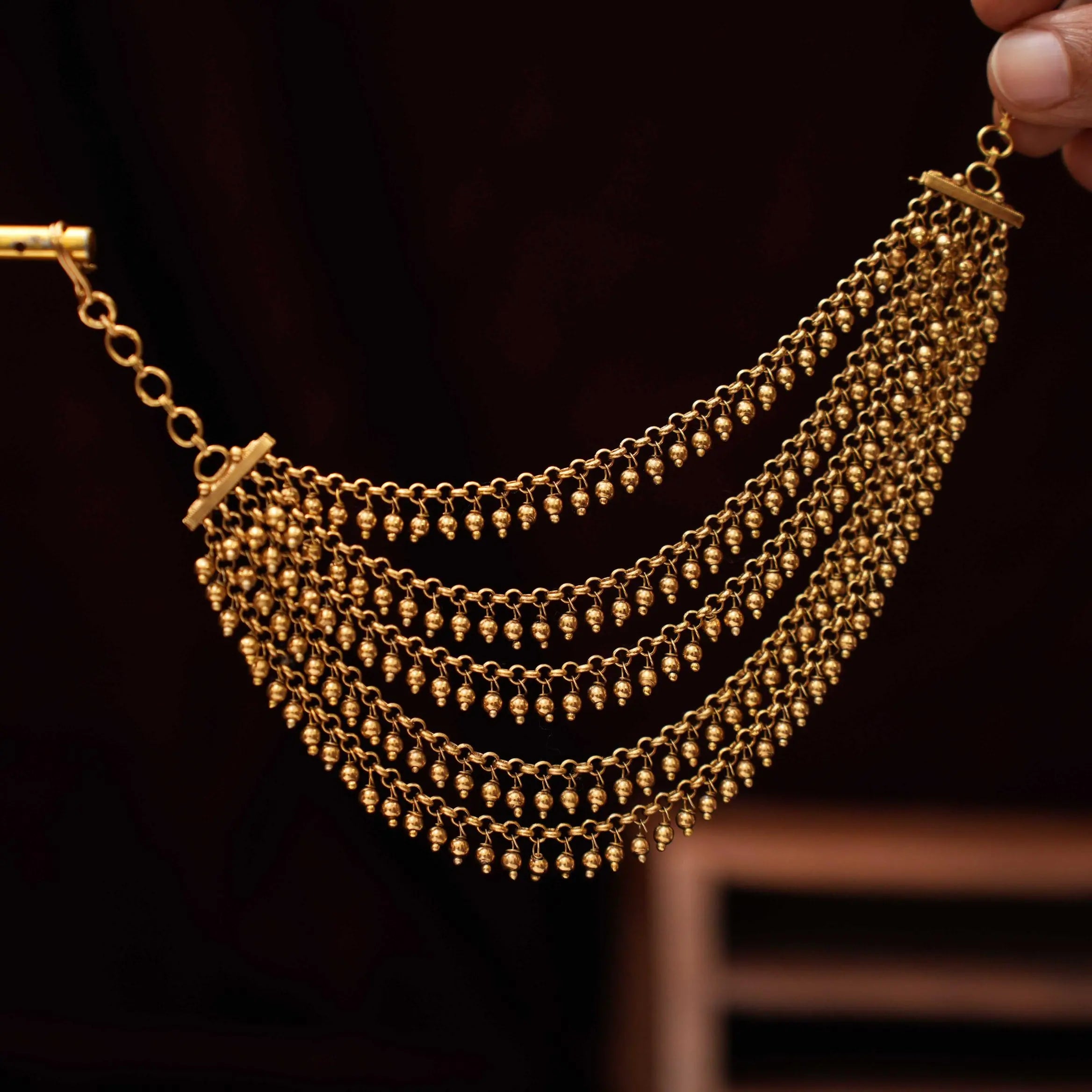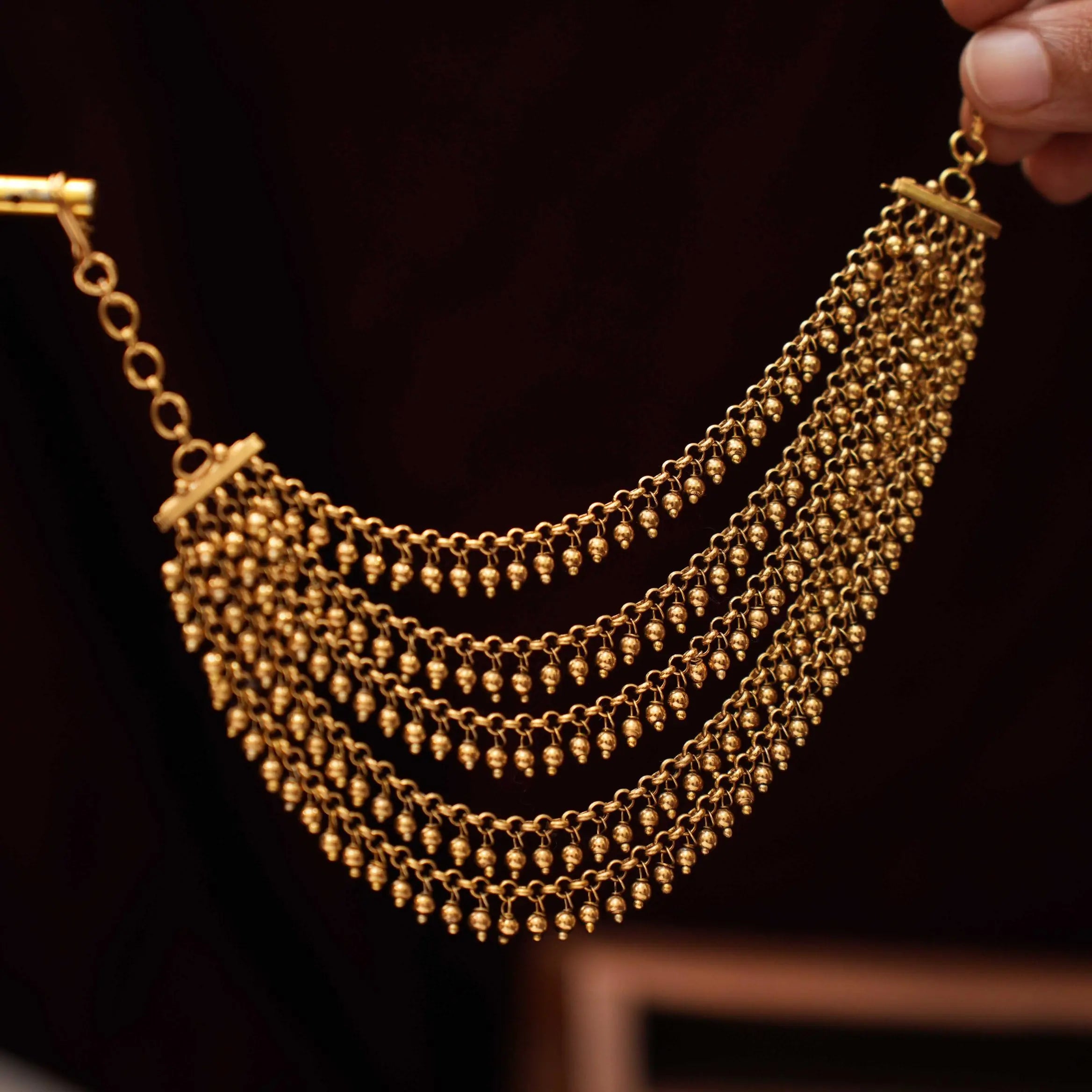An elegant five row ear chain handcrafted with antique balls. This ear chain comes as a pair.