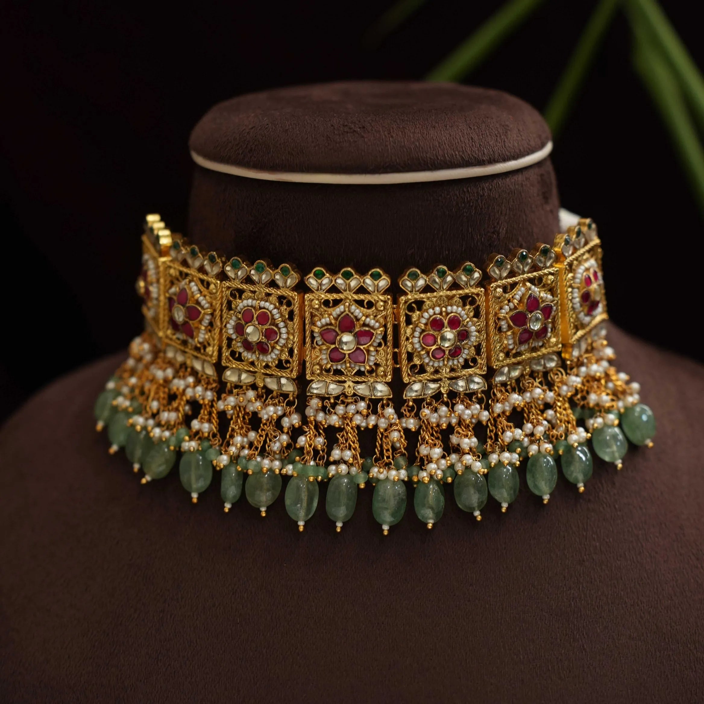 Paired with a coordinating set of earrings, this choker necklace completes your look with effortless grace, making it an ideal choice for weddings, festive occasions, or statement styling.