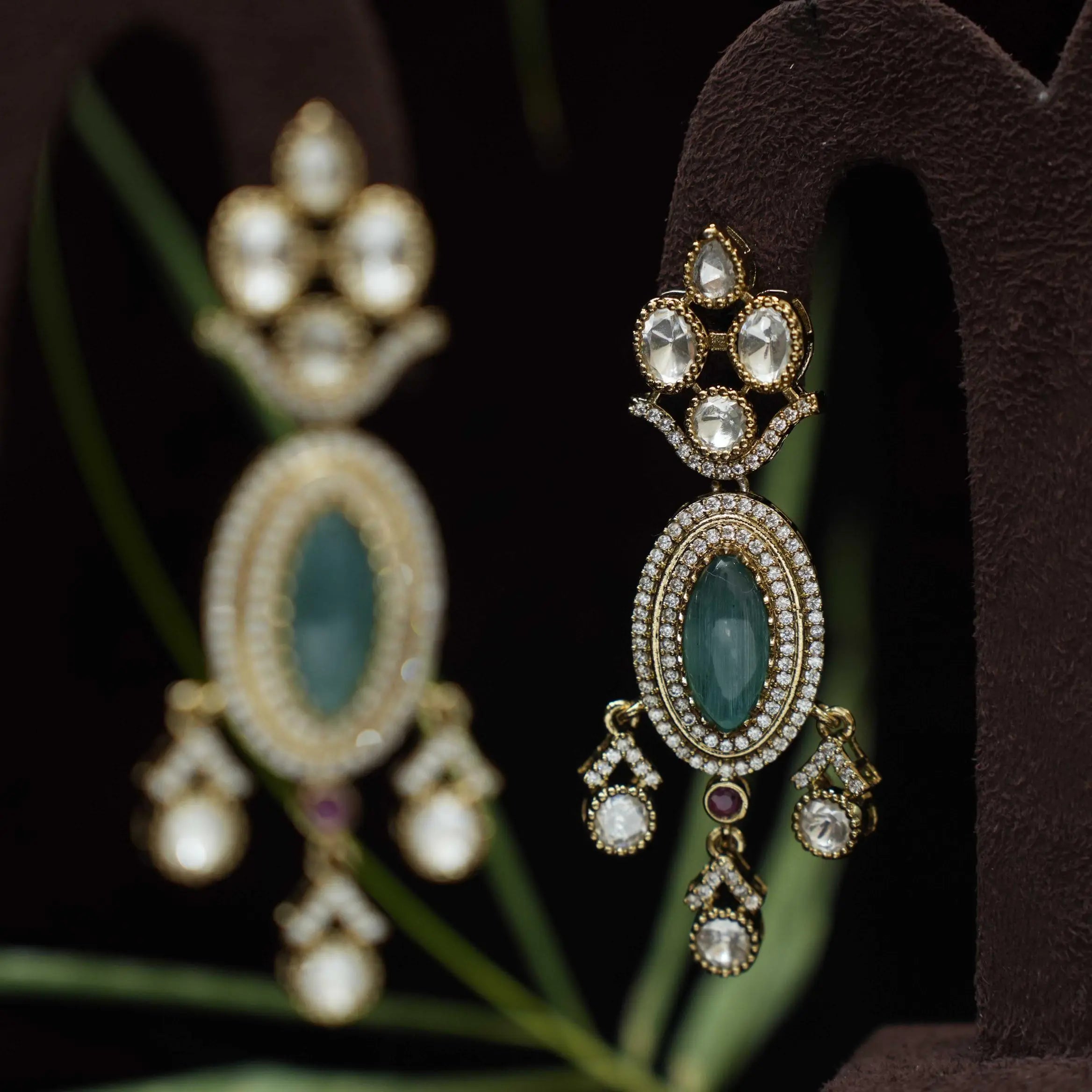 A classic designer earrings studded with Victorian Polki stones adorn with agate.