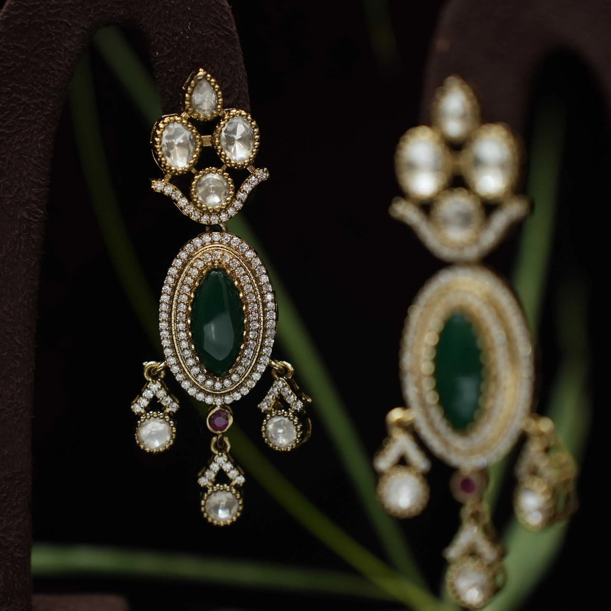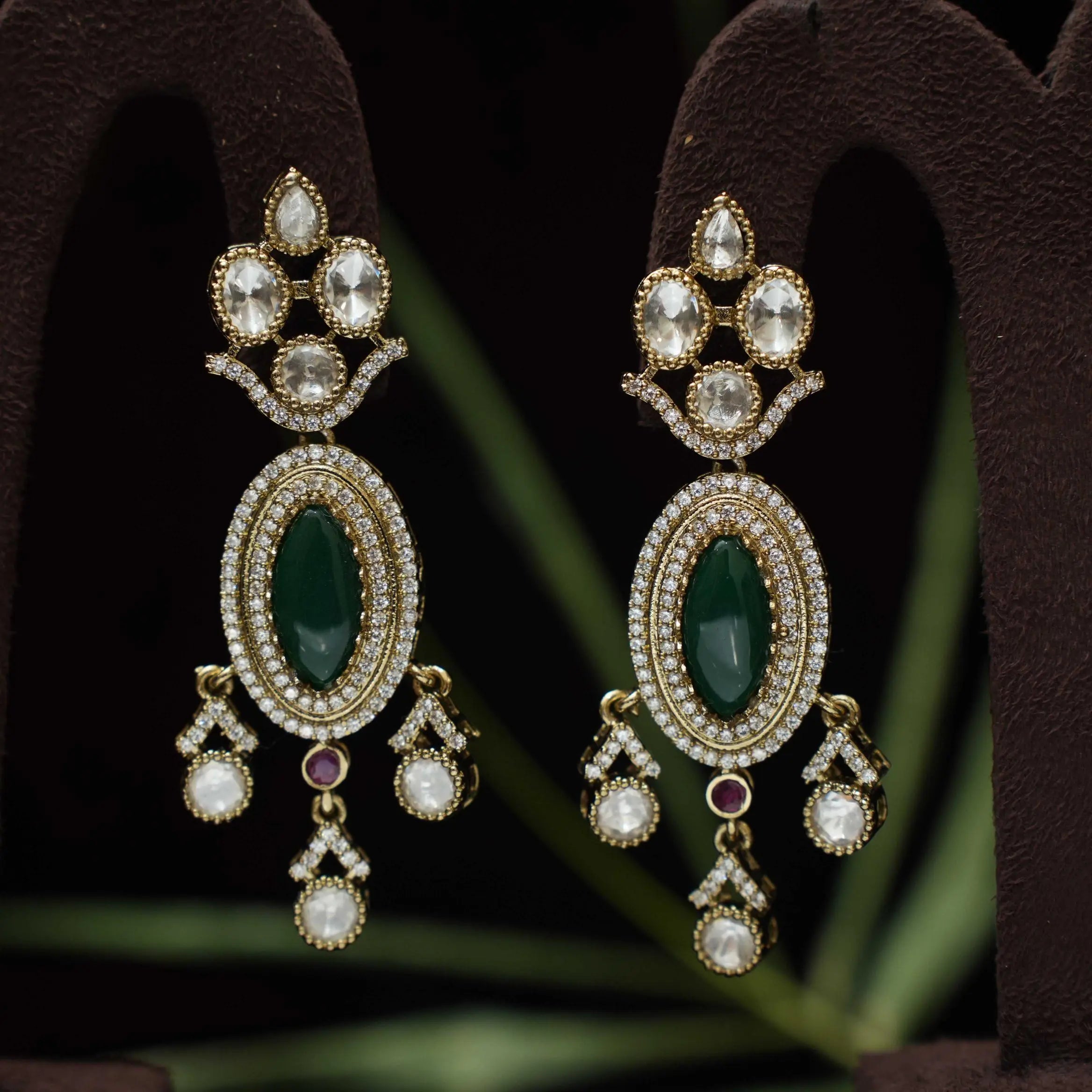 A classic designer earrings studded with Victorian Polki stones adorn with agate.