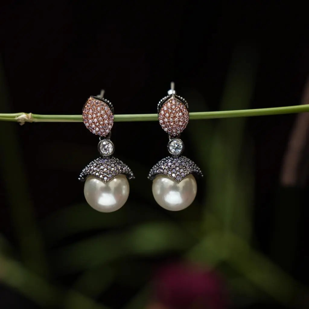 A simple and elegant designer earrings studded with zircon stones adorn with pearl.