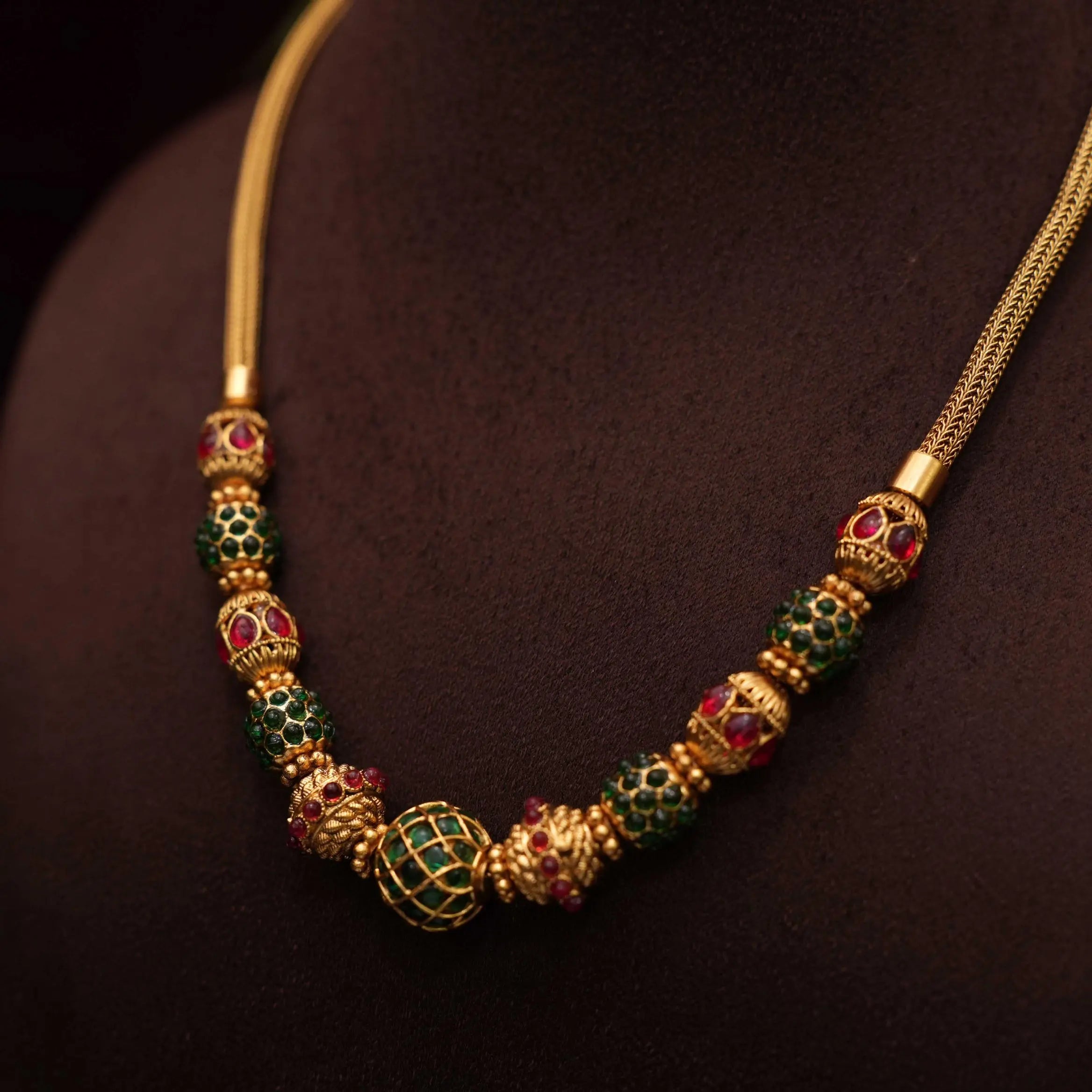 A beautiful necklace handcrafted with antique balls paired to chain.