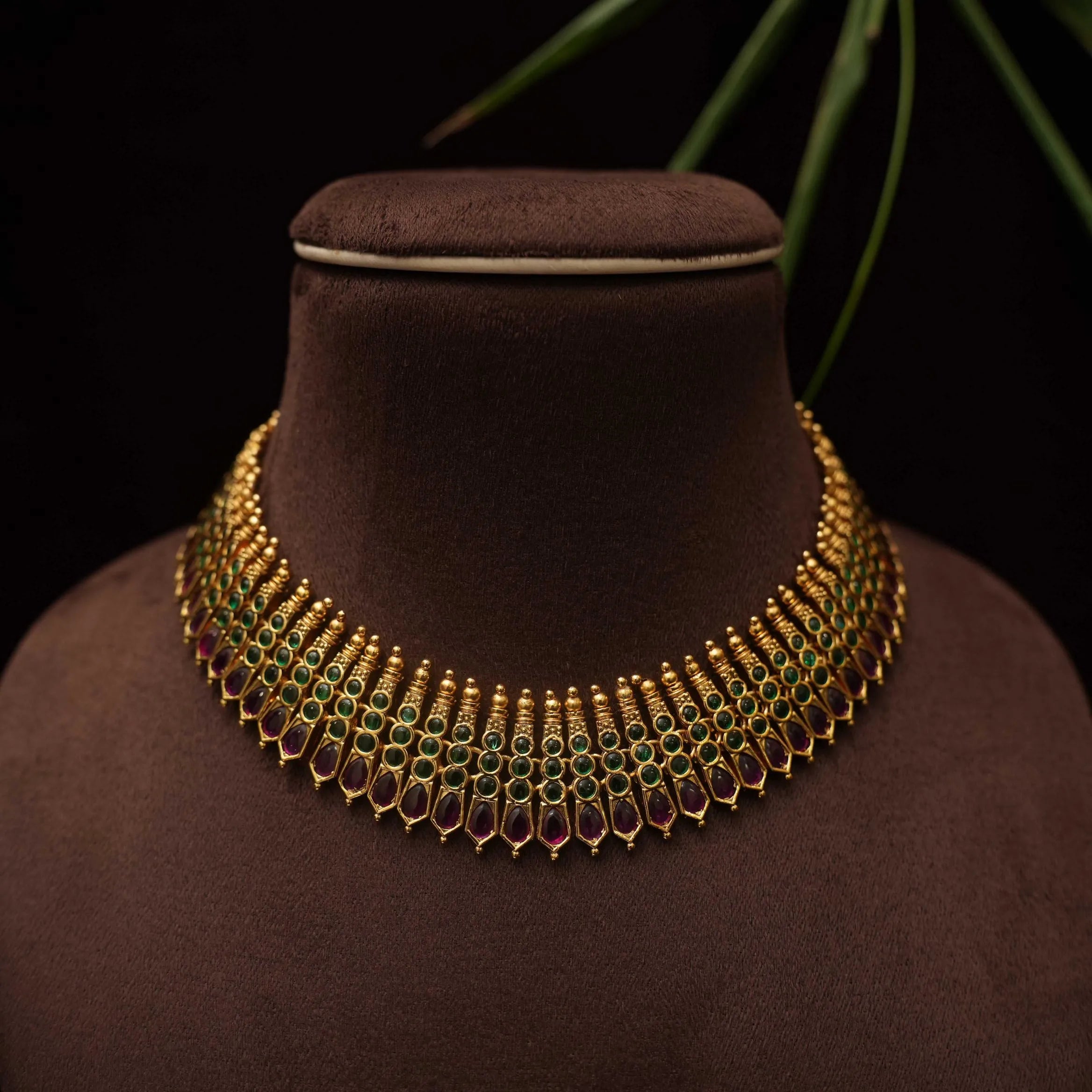 A simple & elegant spiked antique necklace studded with kemp stones.