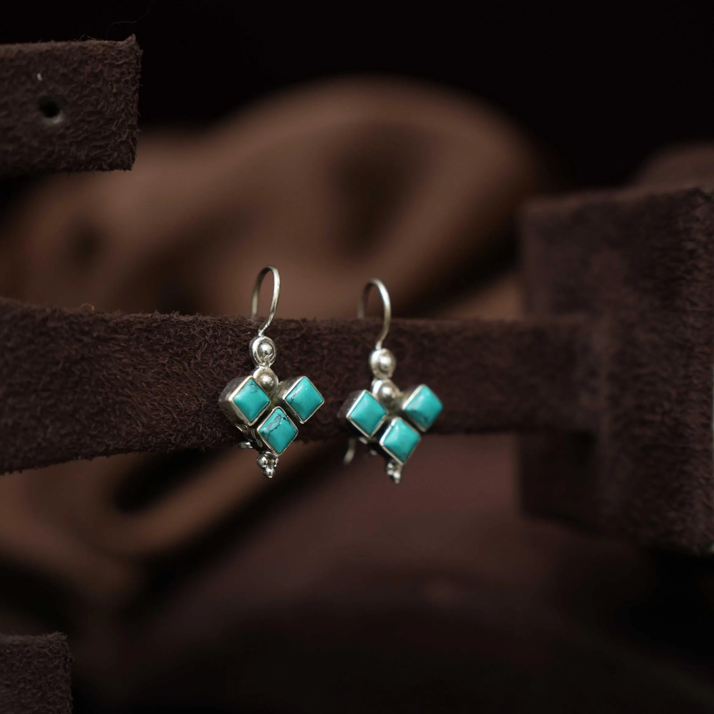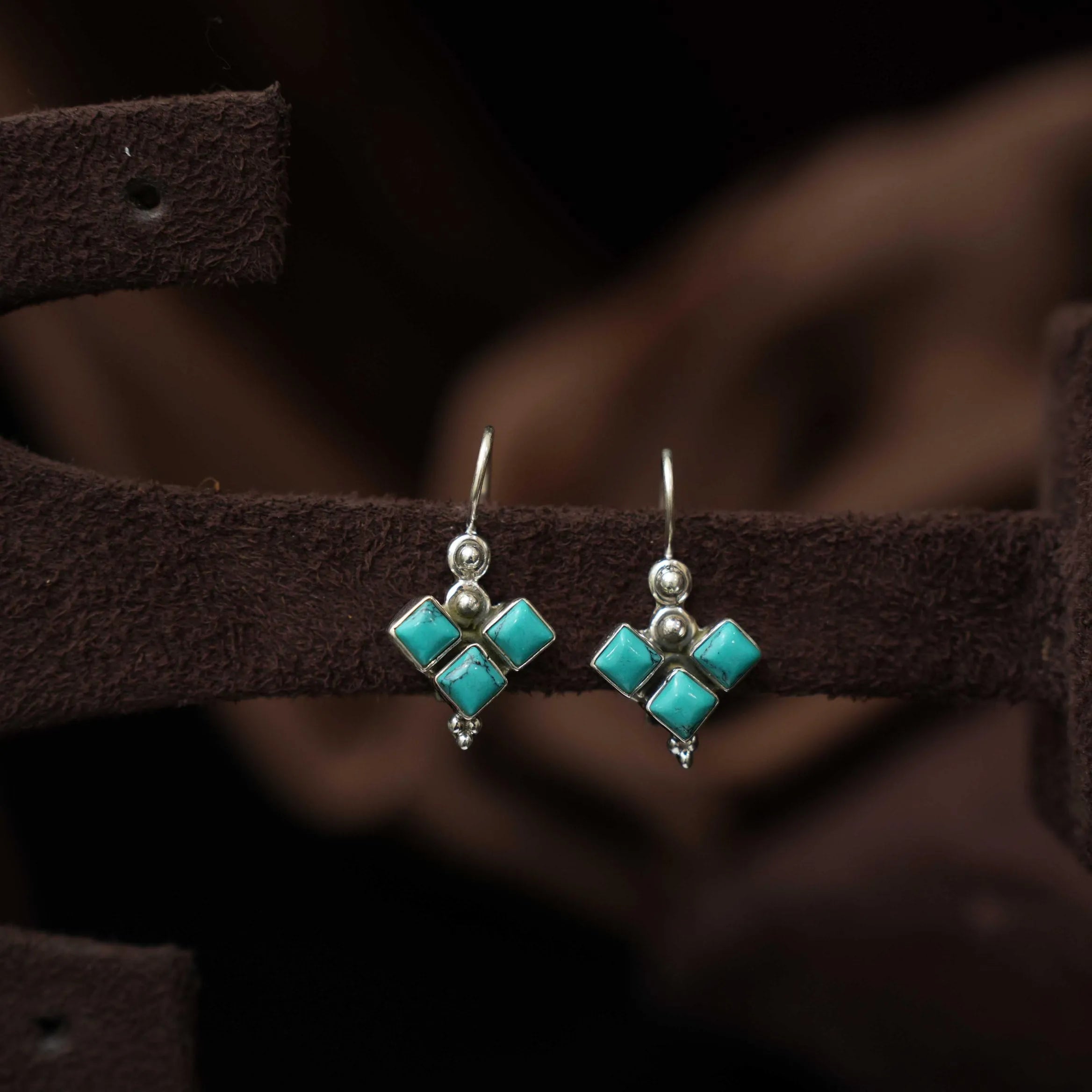 A classic silver oxidised hoop earring studded with turquoise stones.