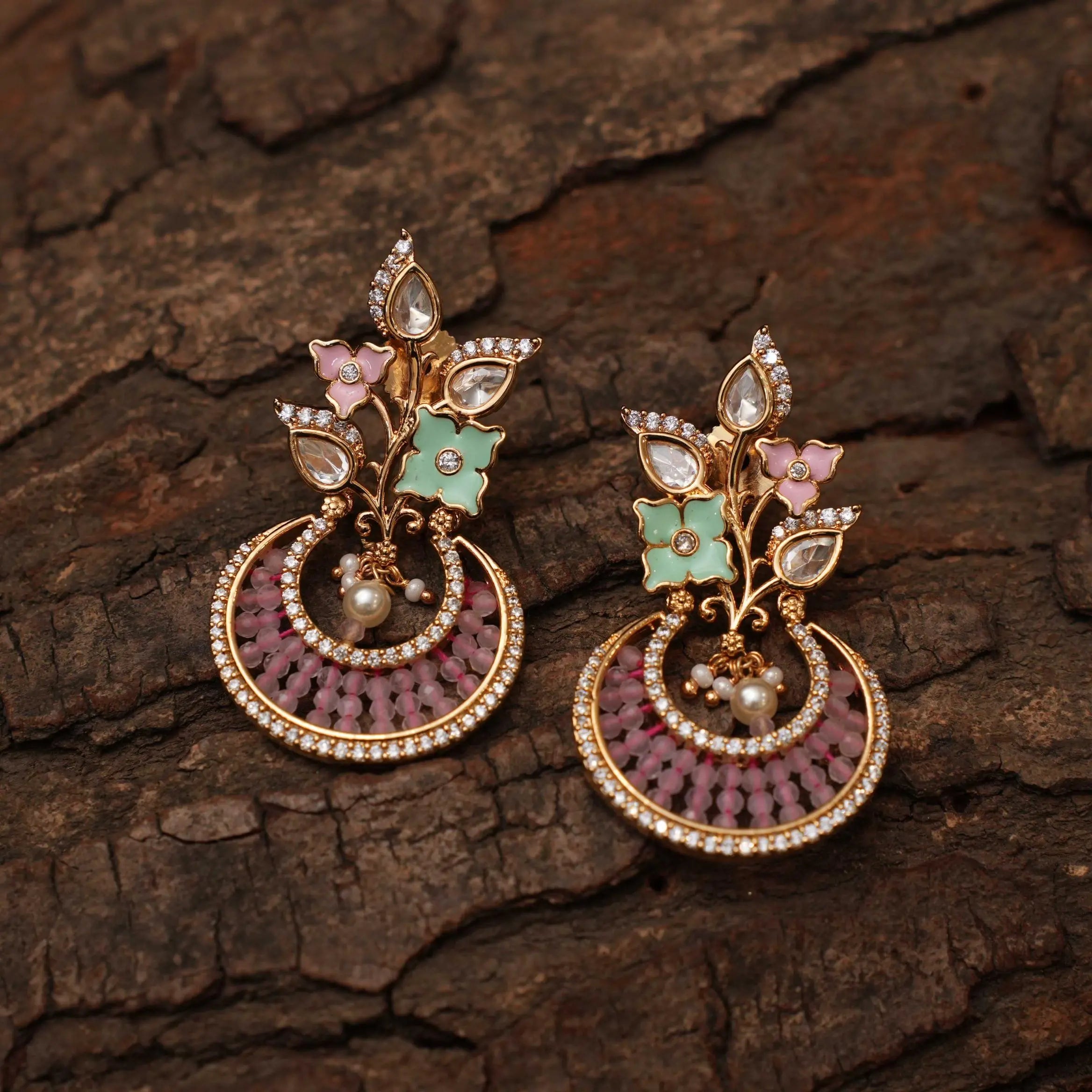 A beautiful and designer earrings in floral and chand motif studded with polki stones and pink beads.