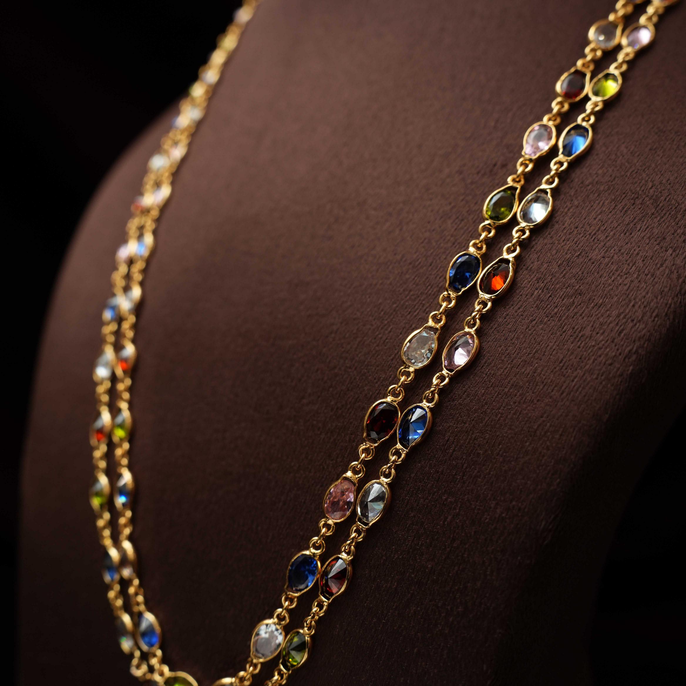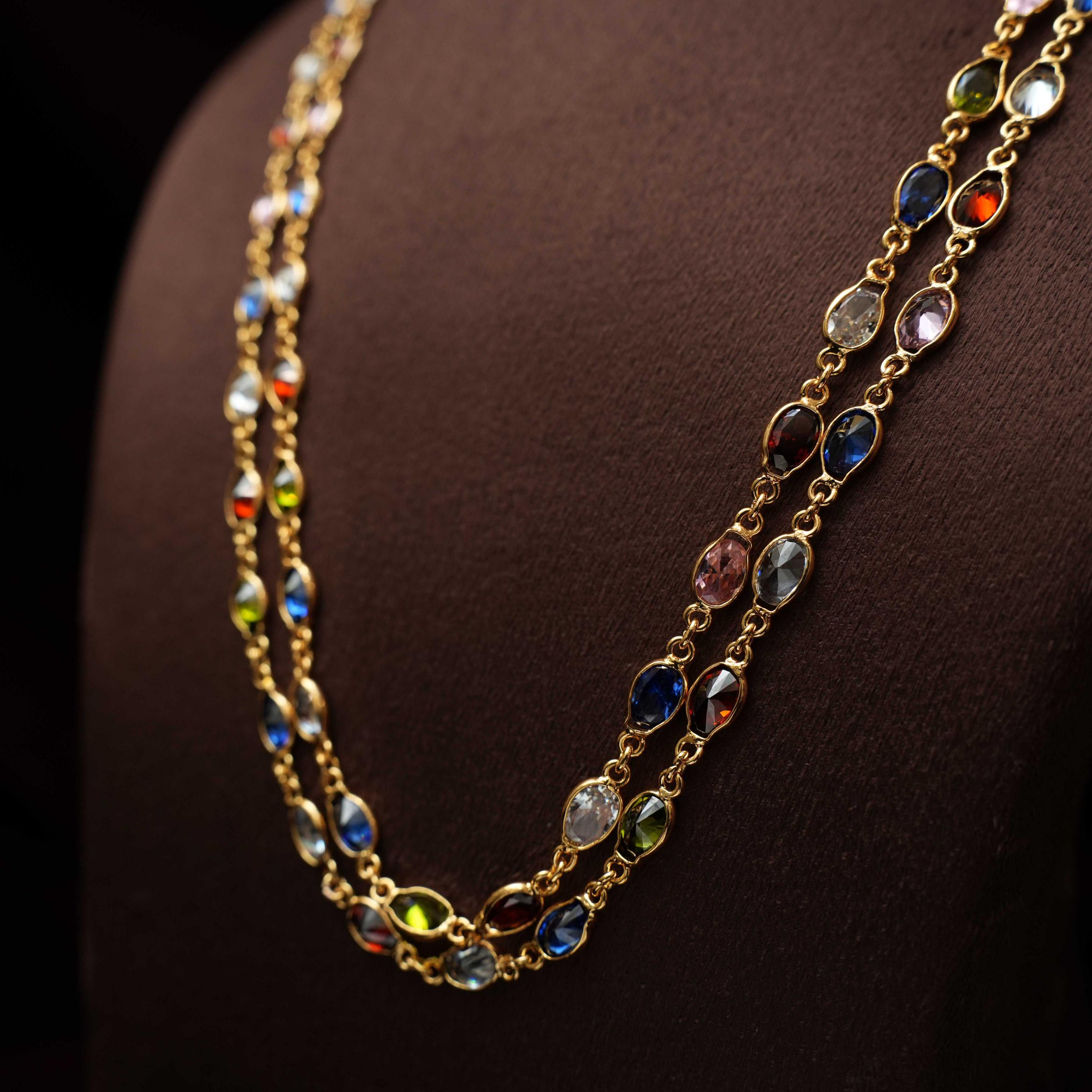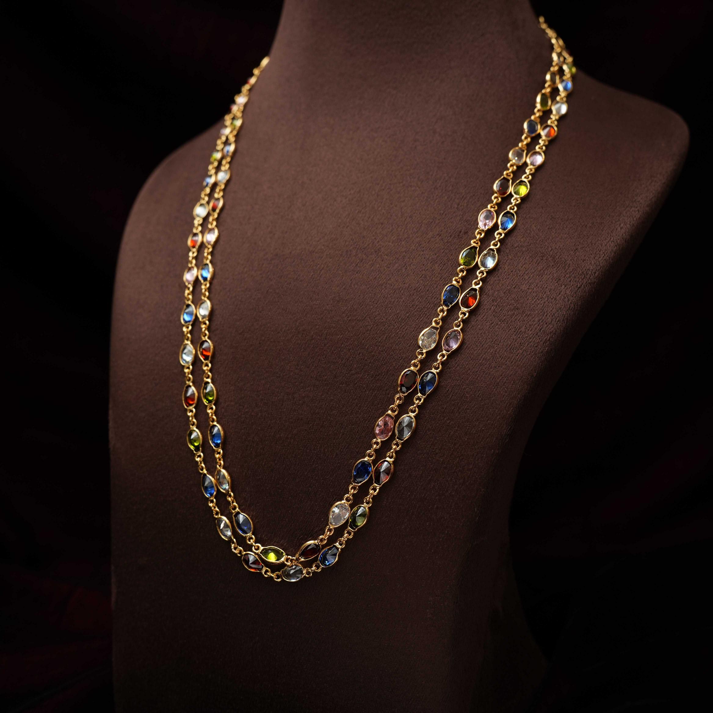A beautiful and minimalistic necklace handcrafted with navarathna stones.