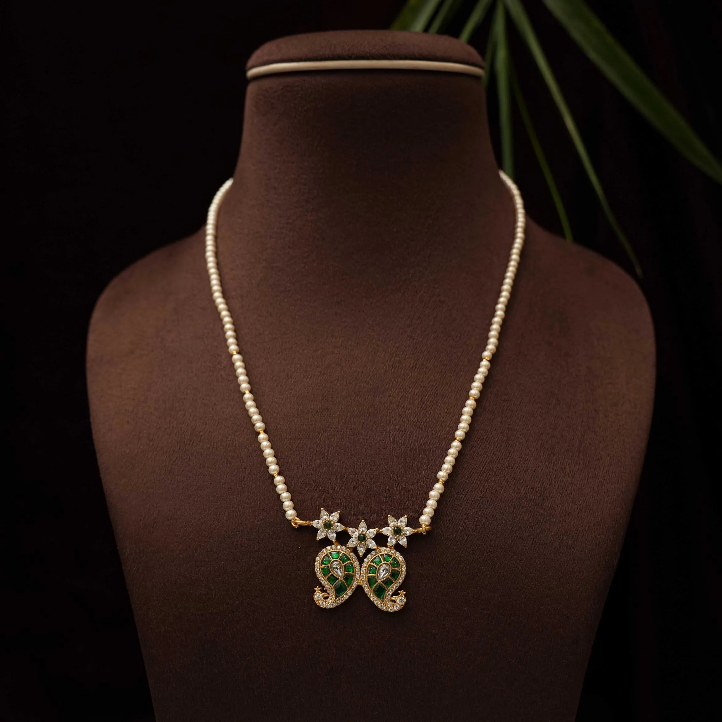 A graceful fusion of pearls and pastel elegance — this handcrafted necklace features naturally irregular freshwater pearls paired with subtle pink stone spacers, creating a soft and timeless look. The statement pendant showcases intricate polki-style detailing with pastel pink stones, delicate pearls, and a charming drop bead that adds movement and sophistication. Paired with matching earrings designed in the same pastel and polki-inspired aesthetic, this set beautifully complements both ethnic and Indo-western outfits.