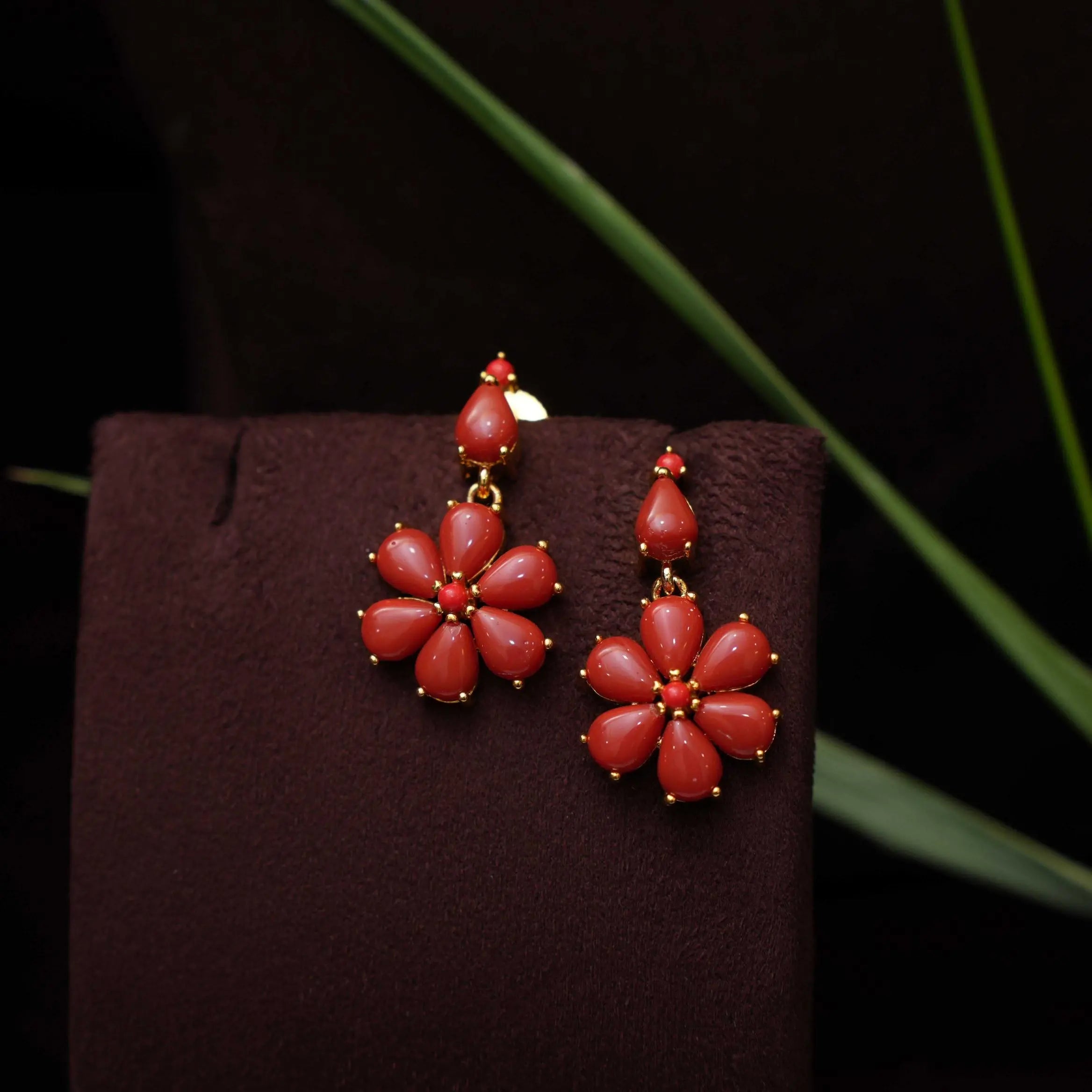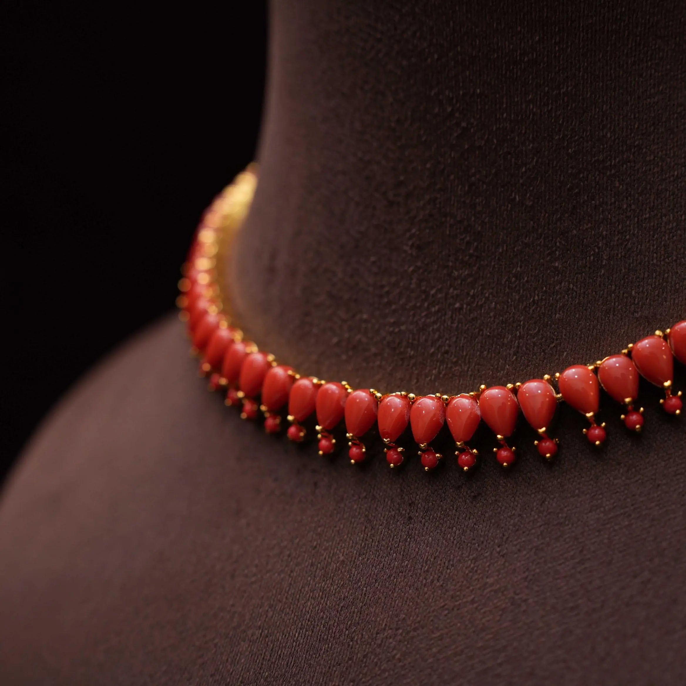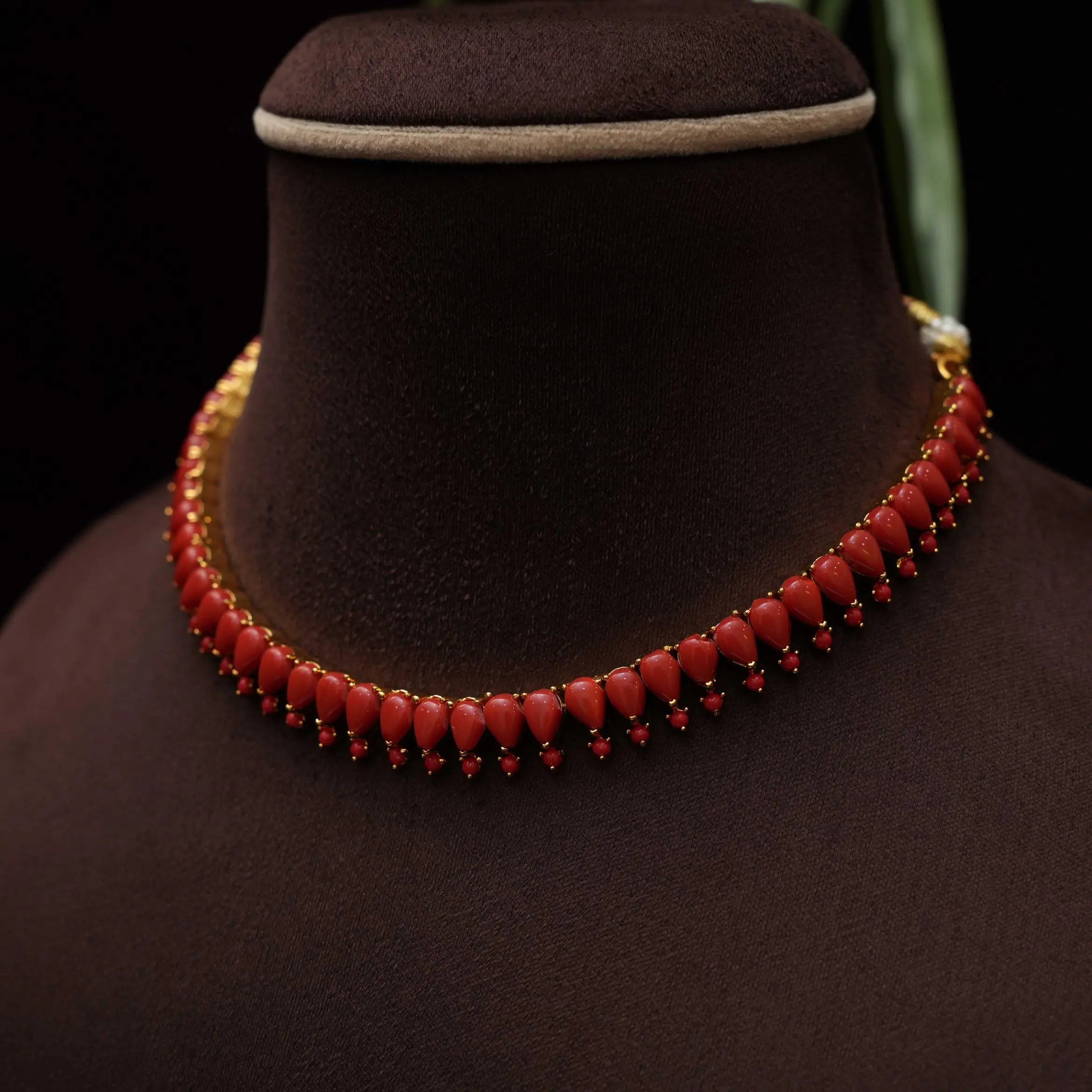 An elegant necklace handcrafted with coral stones. This set comes with a pair of earrings.