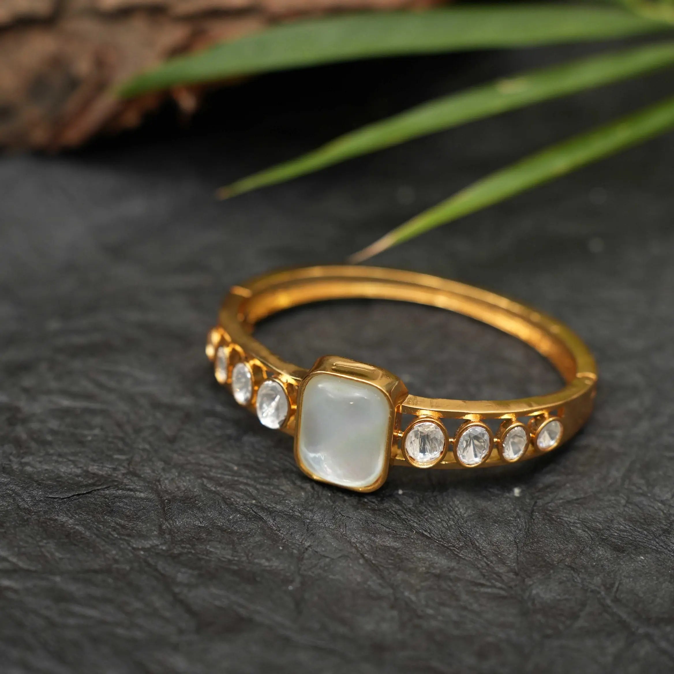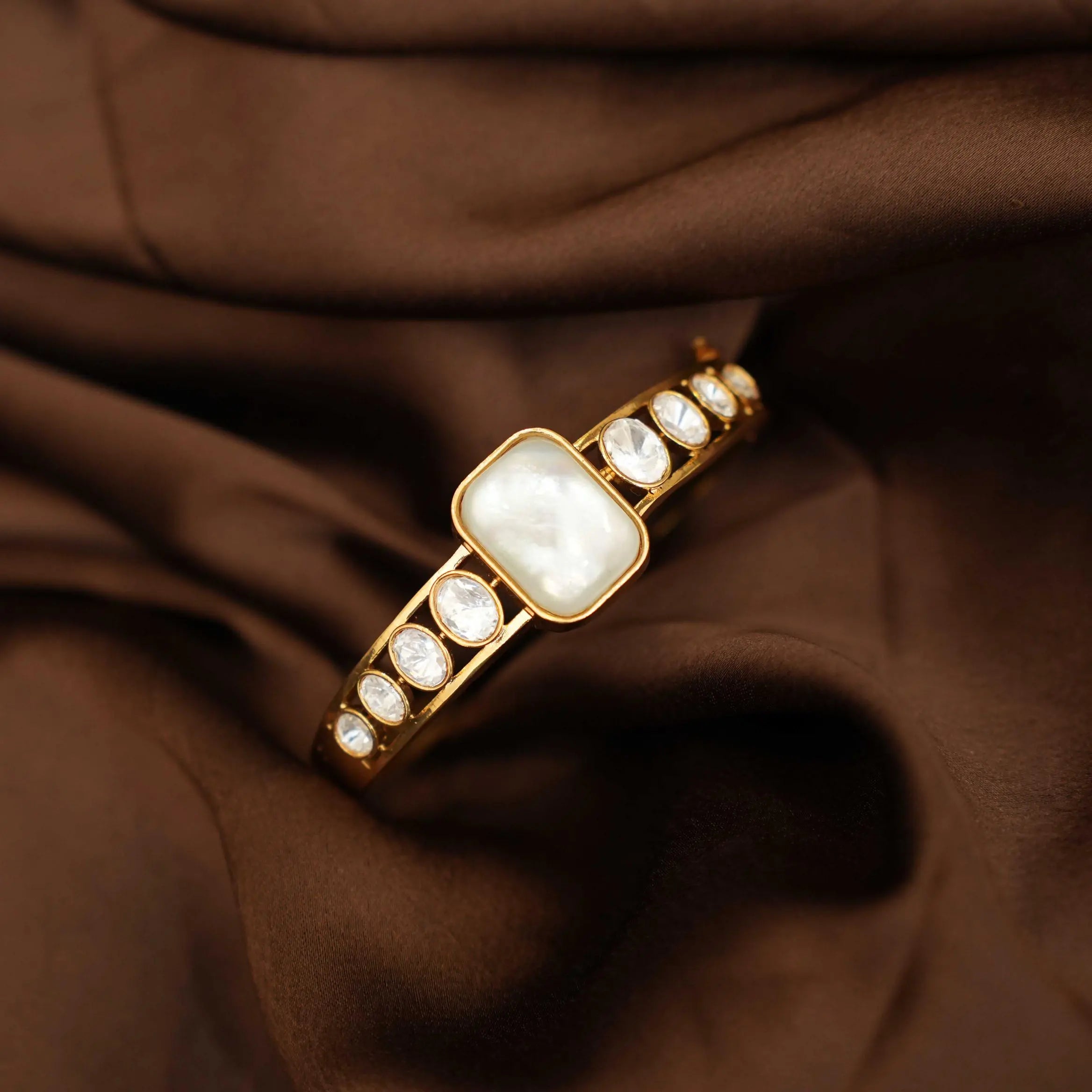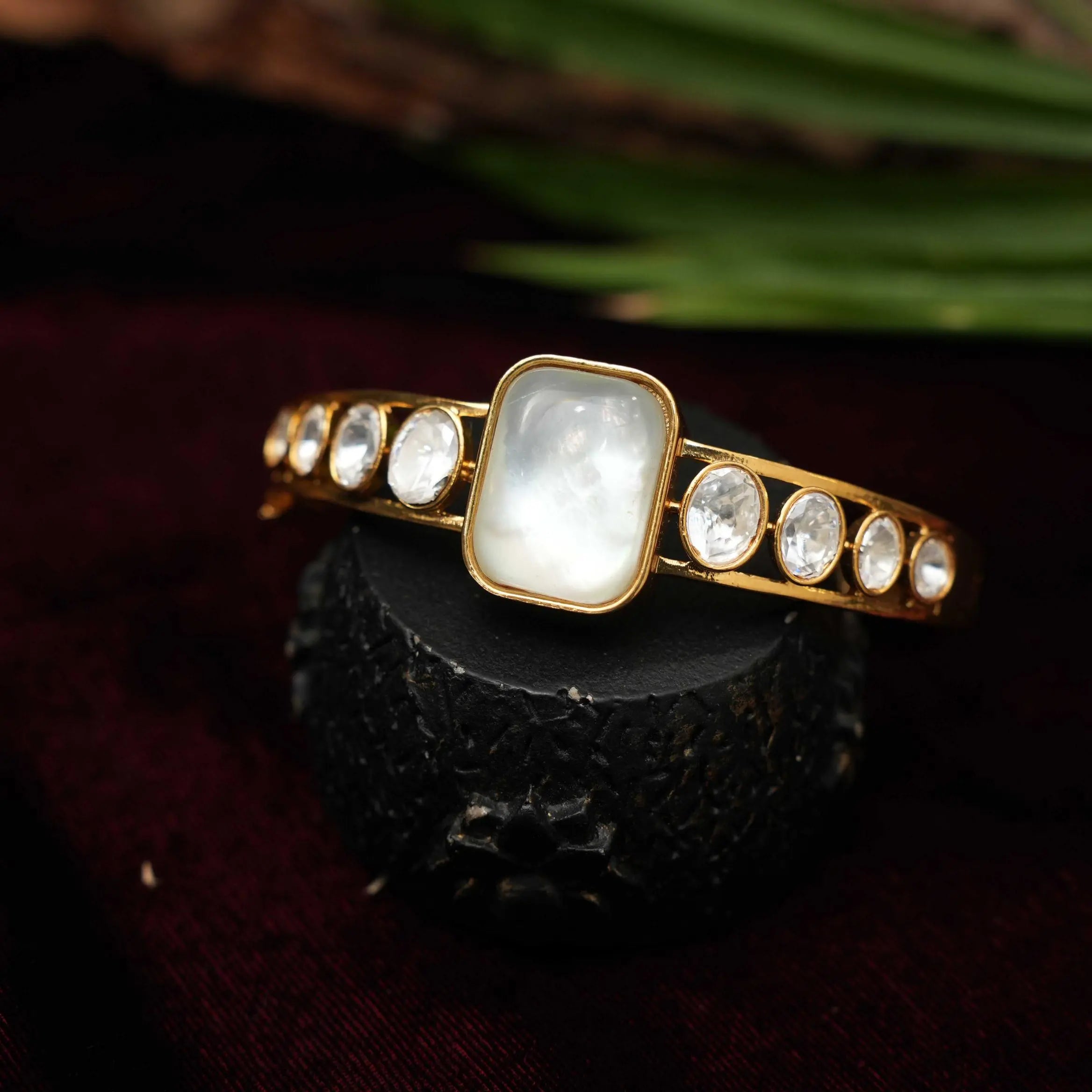 An elegant single bracelet handcrafted with polki stones and white agate.