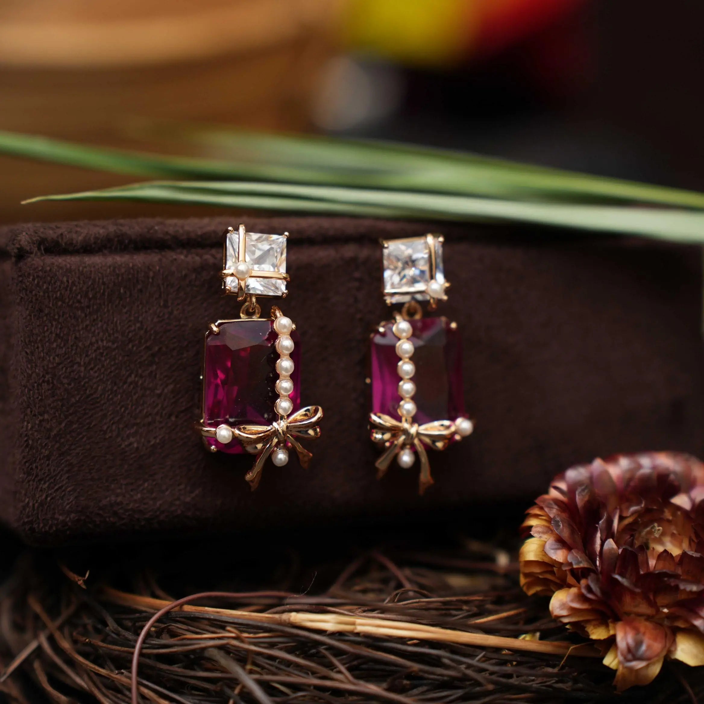 A unique designer earrings studded with zircon stones, agate and pearls.