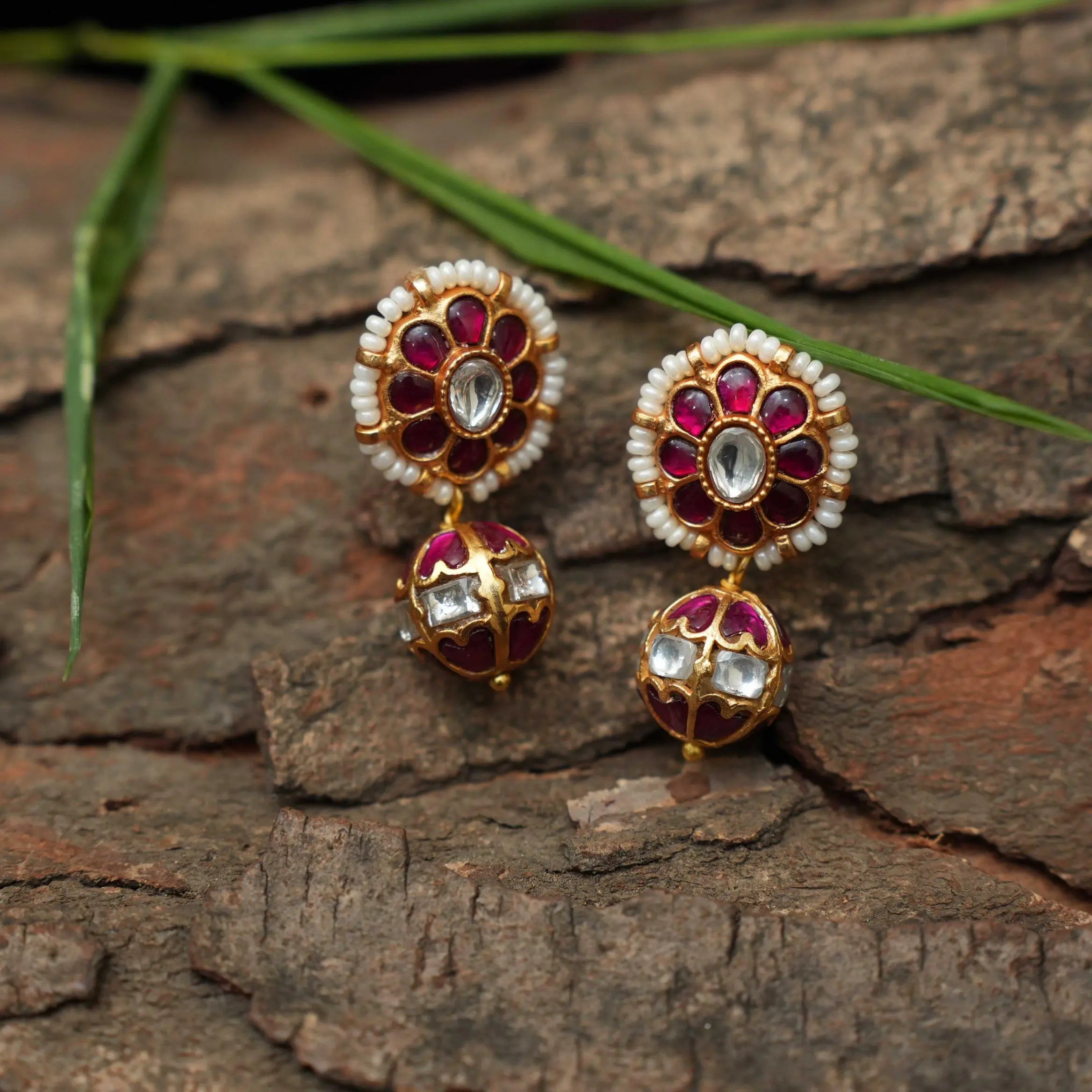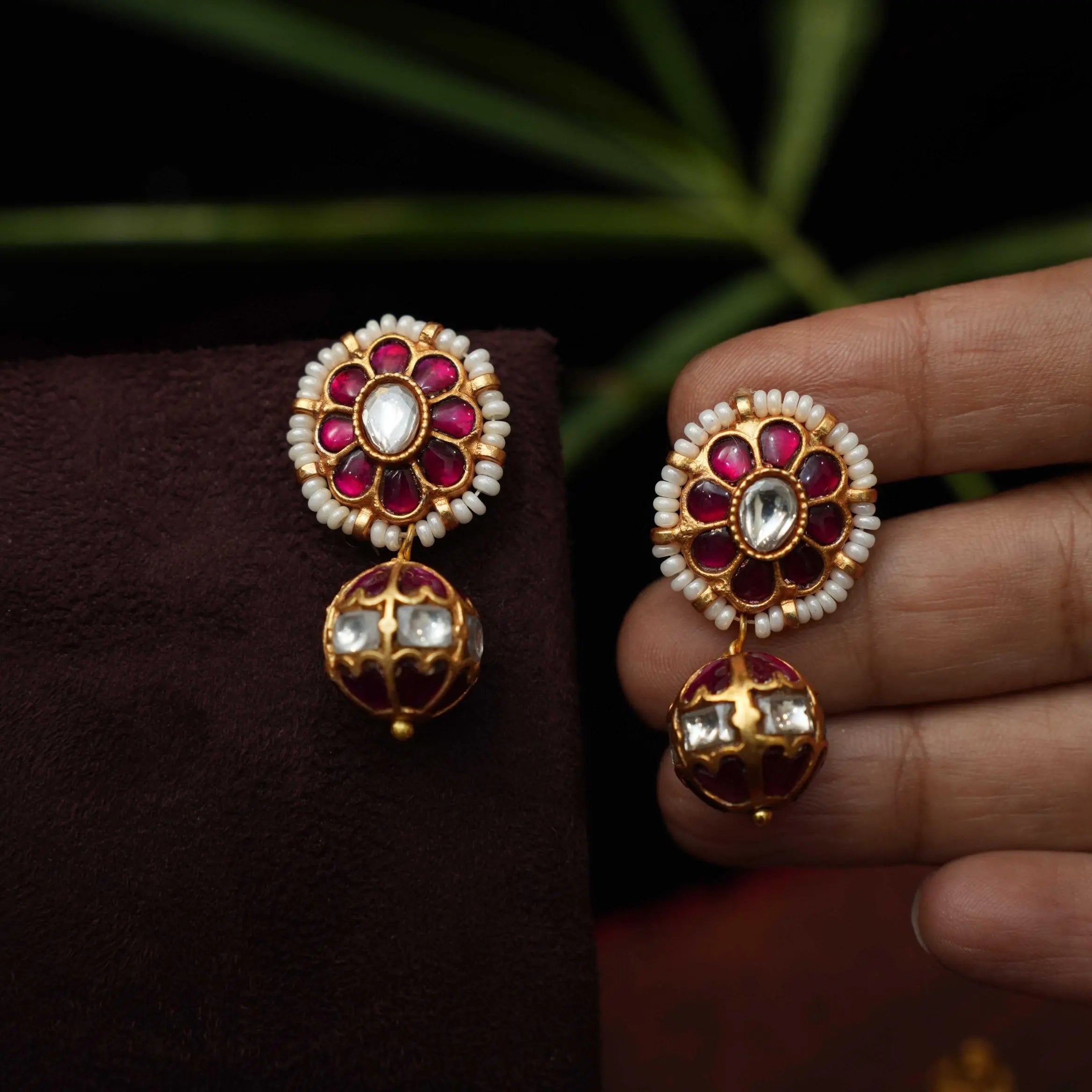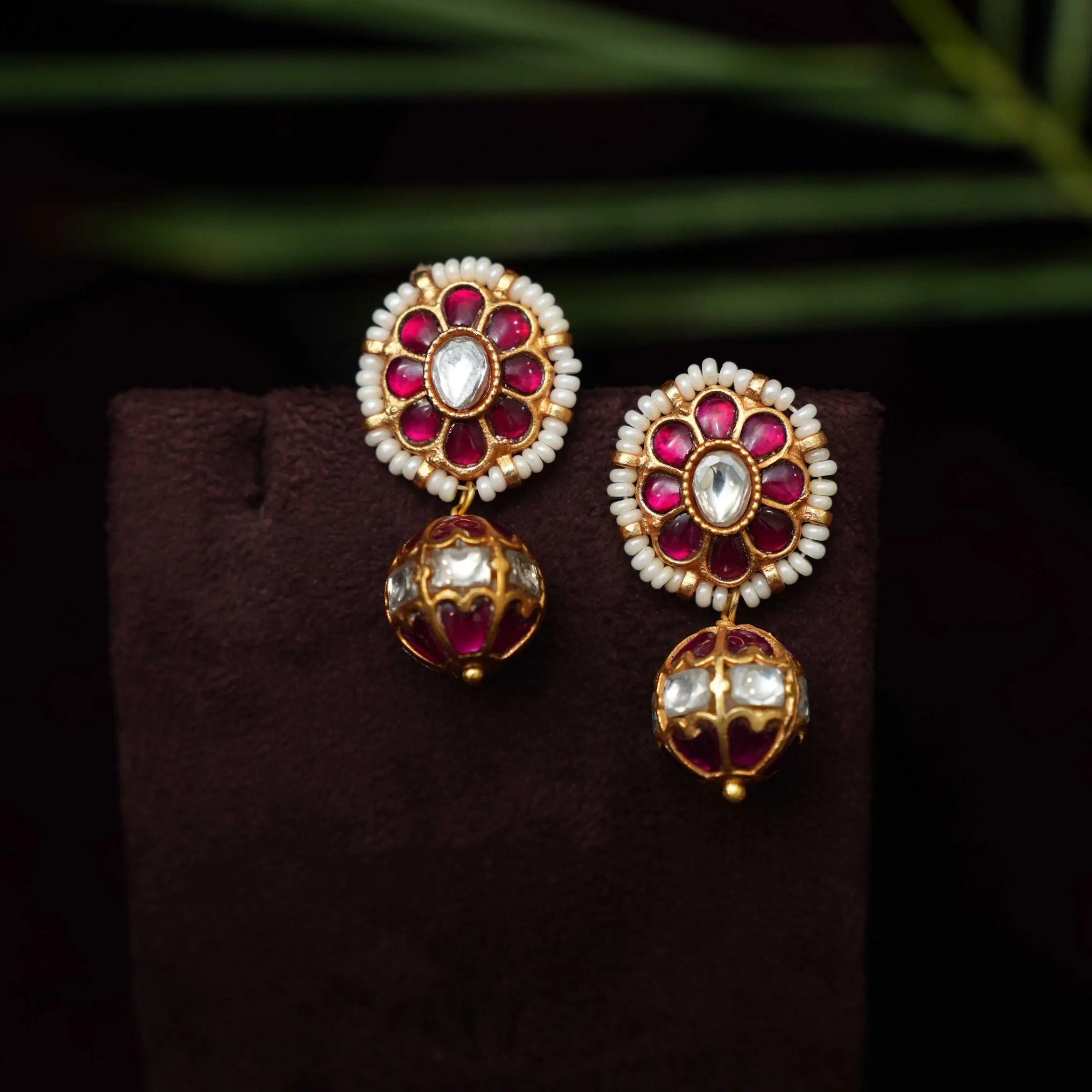 Explore modern elegance with our 92.5 gold-plated silver earrings featuring danglers and vibrant red stones. This contemporary piece effortlessly blends tradition and trend for a timeless expression of sophisticated style.