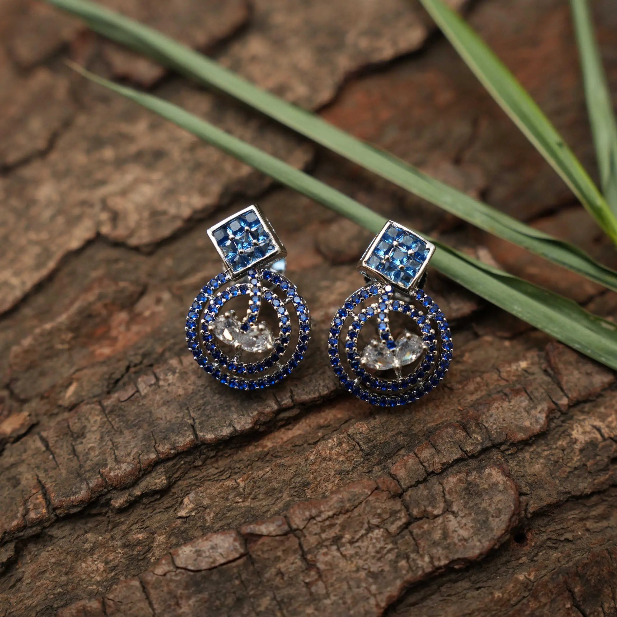 A simple and classic earrings handcrafted with zircon stones and blue agate.