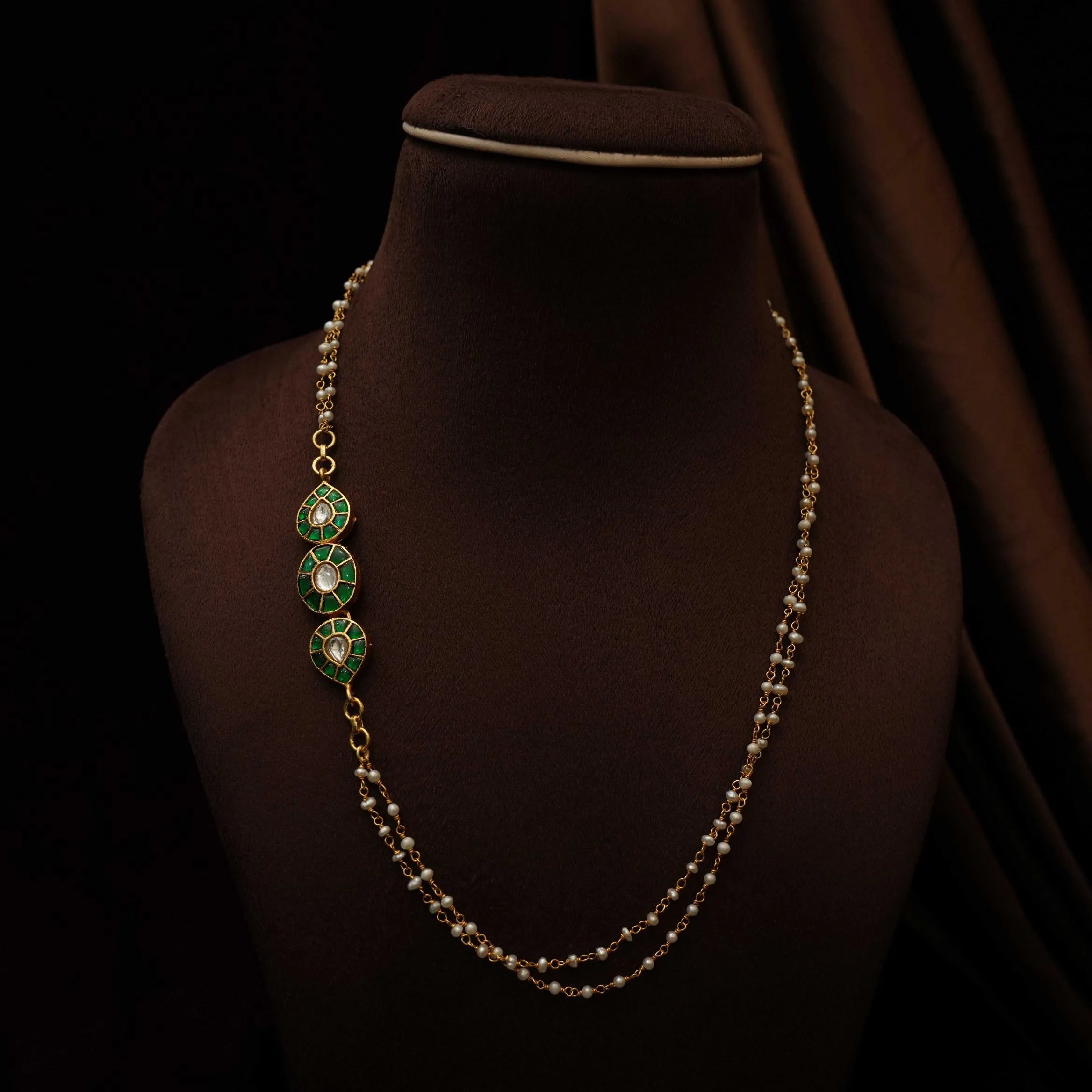A layered necklace handcrafted in pearls adorn with 925 silver floral pendant.