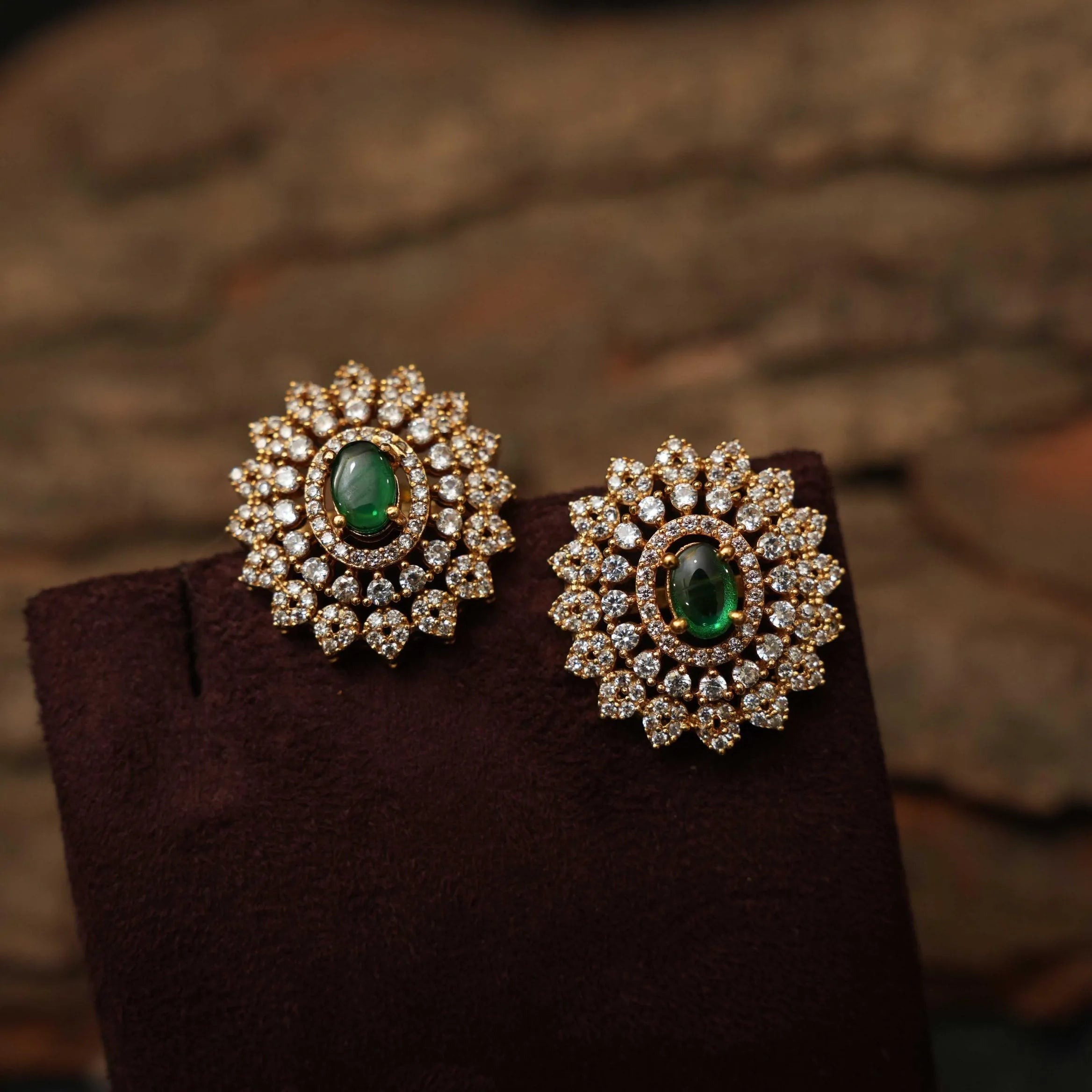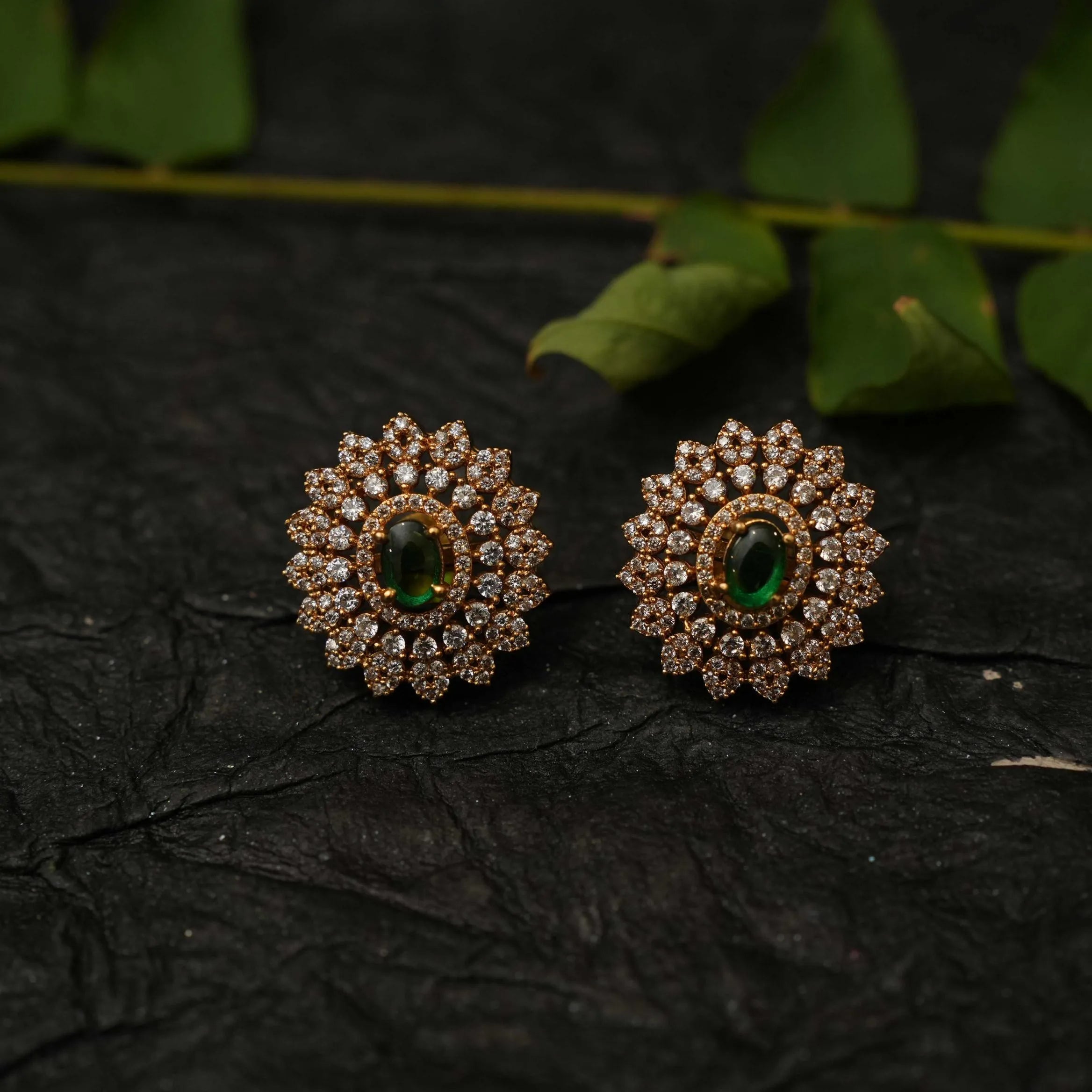 Discover elegance with Reyka Zircon Stud Earrings. Each ear stud is adorned with intricate white and green stones, perfect for every occasion. Elevate your style effortlessly with this exquisite stud earrings set designed for women who appreciate timeless beauty.