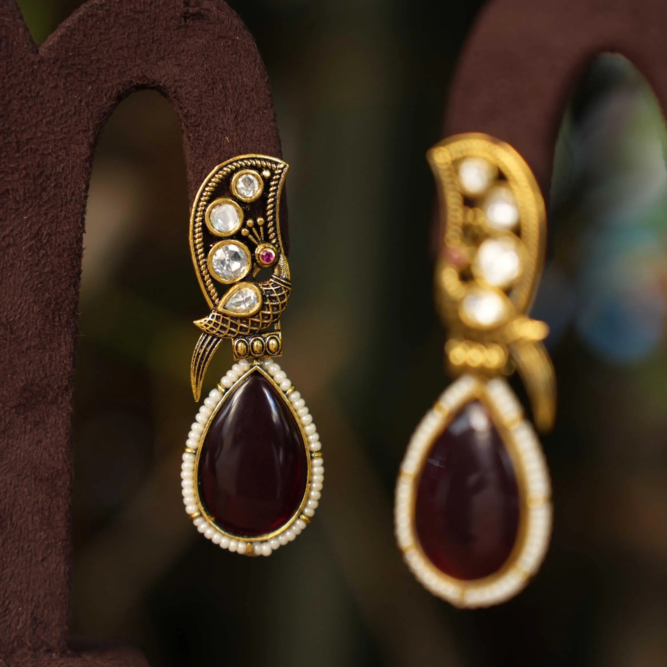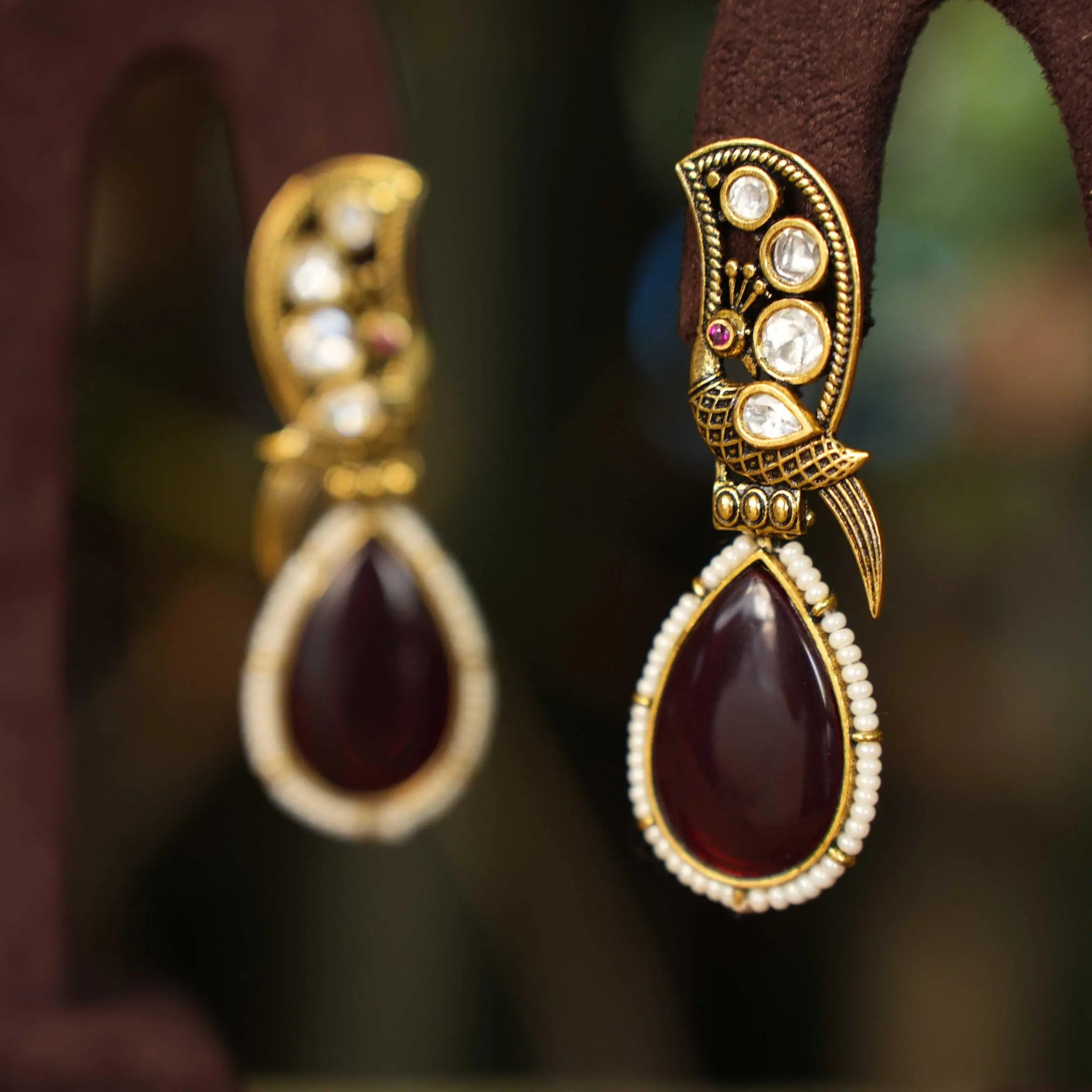 A contemporary designer earrings handcrafted in peacock motif studded with agate and pearls.