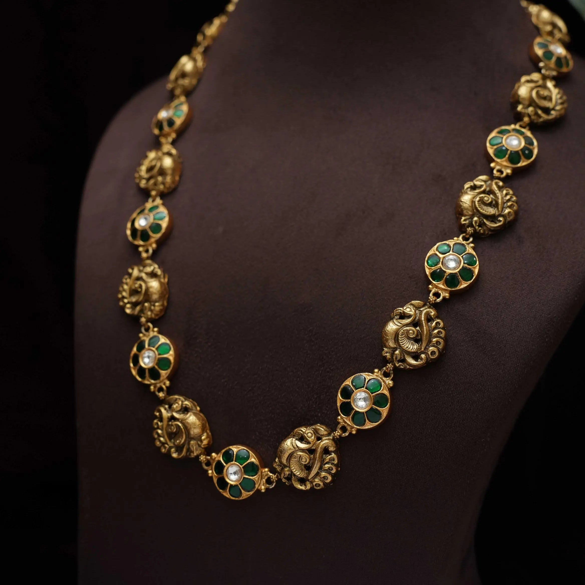 Celebrate timeless elegance with this traditional silver necklace, meticulously handcrafted in intricate peacock and floral motifs.