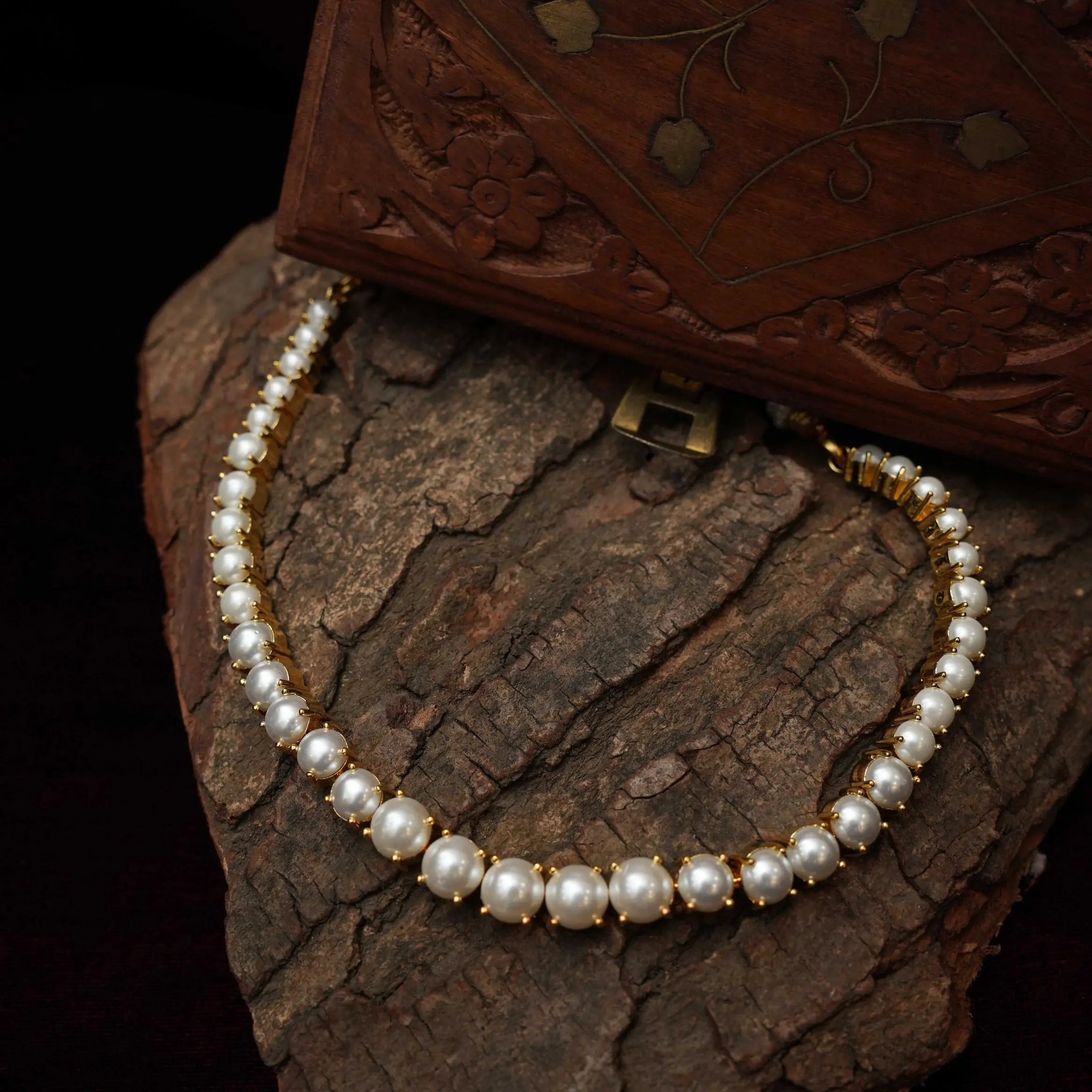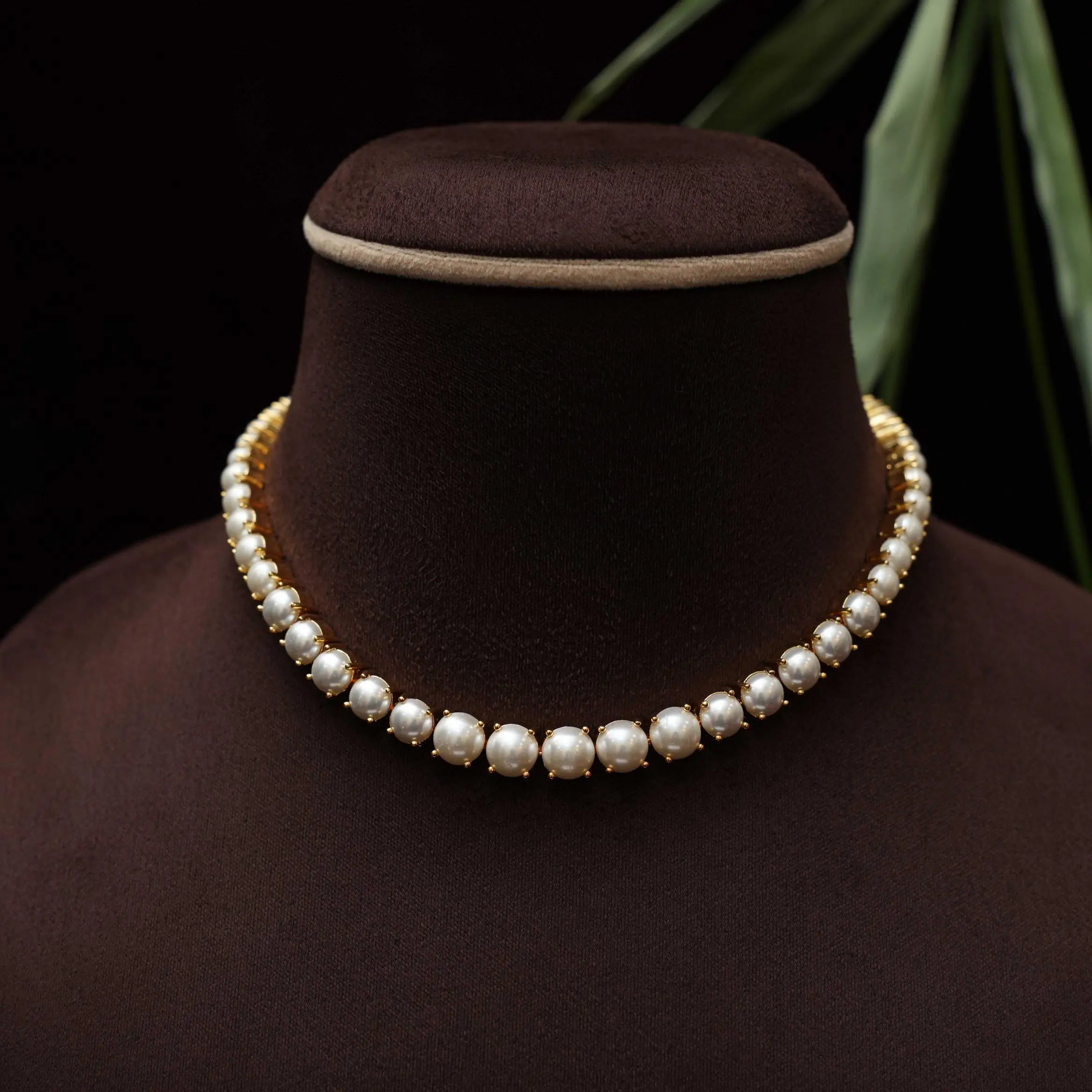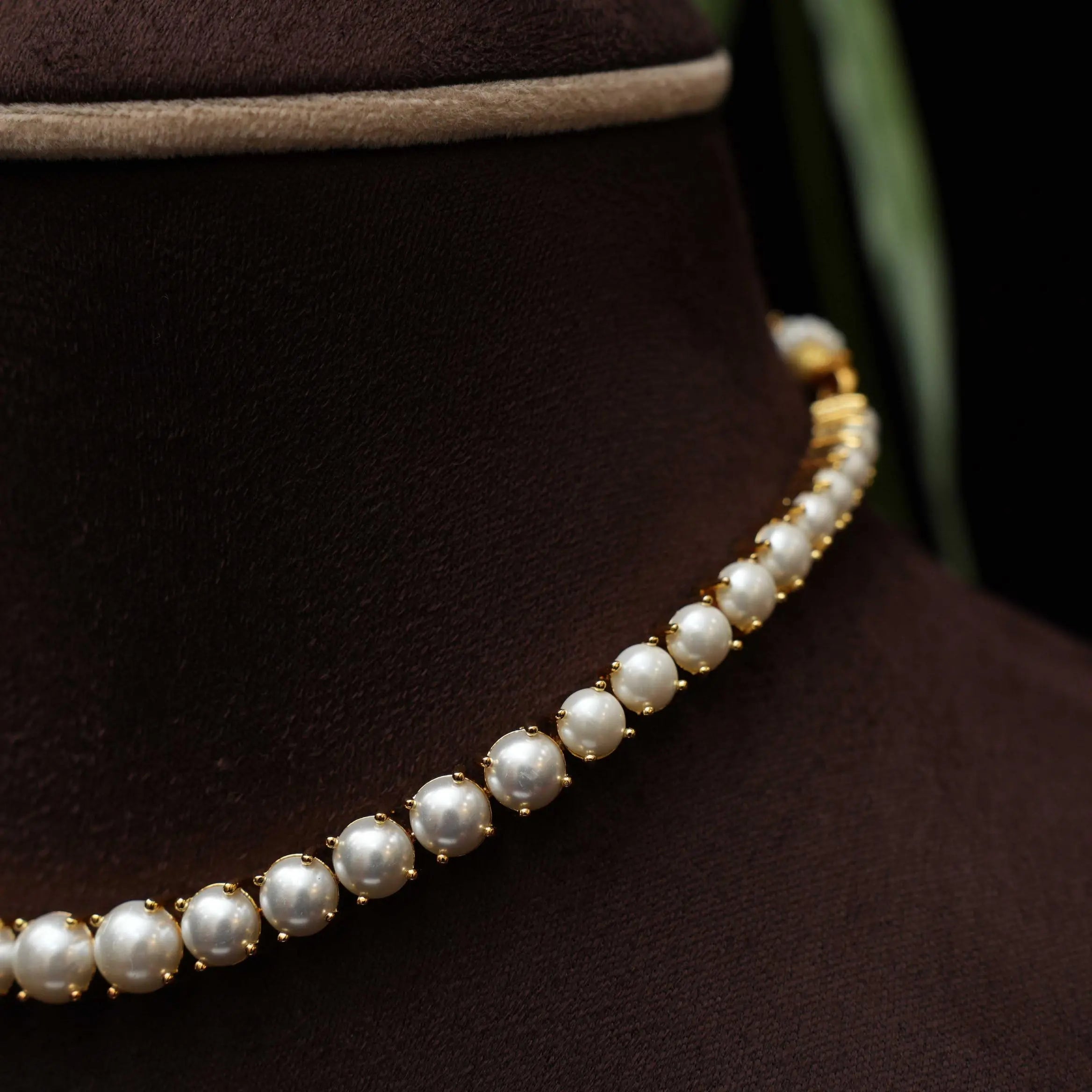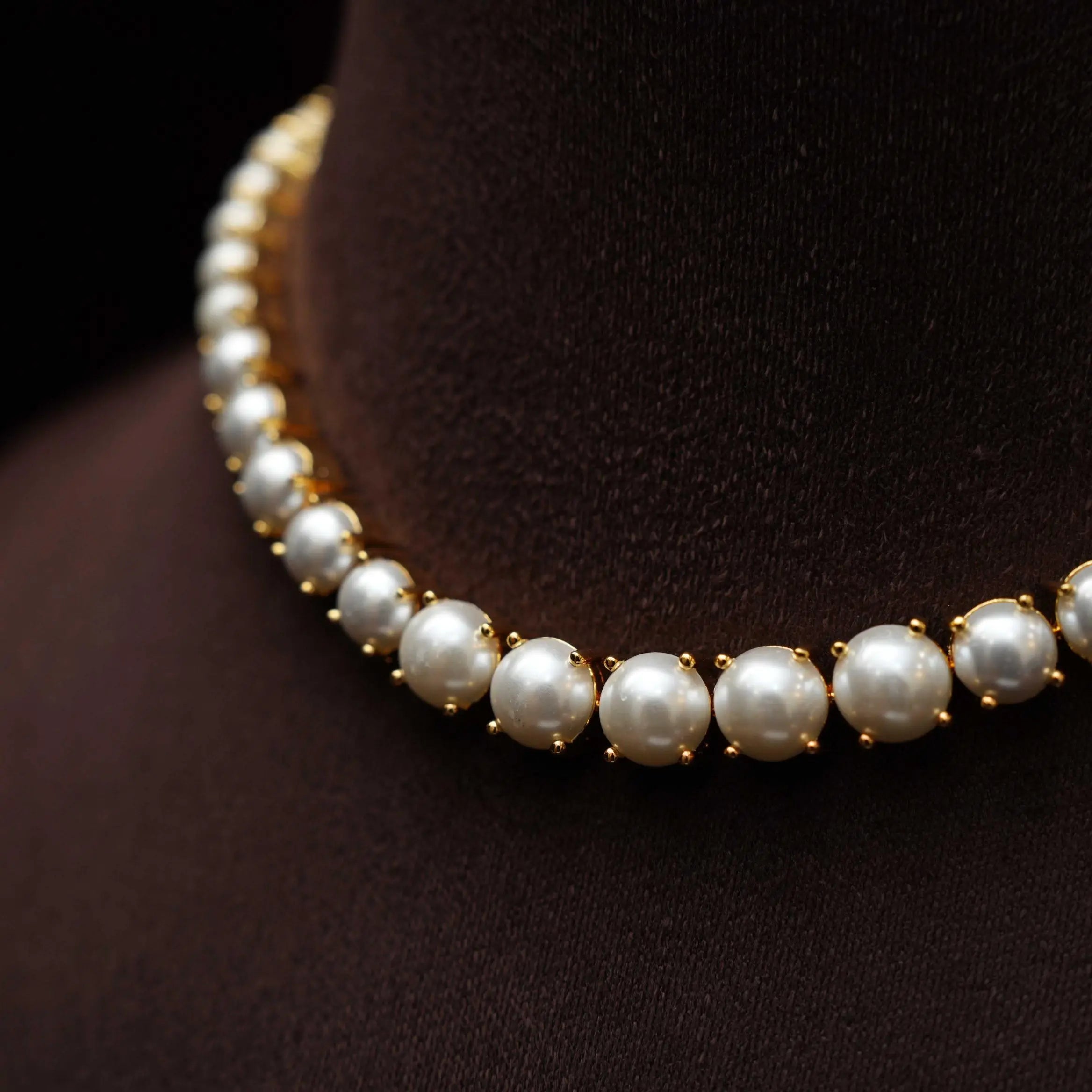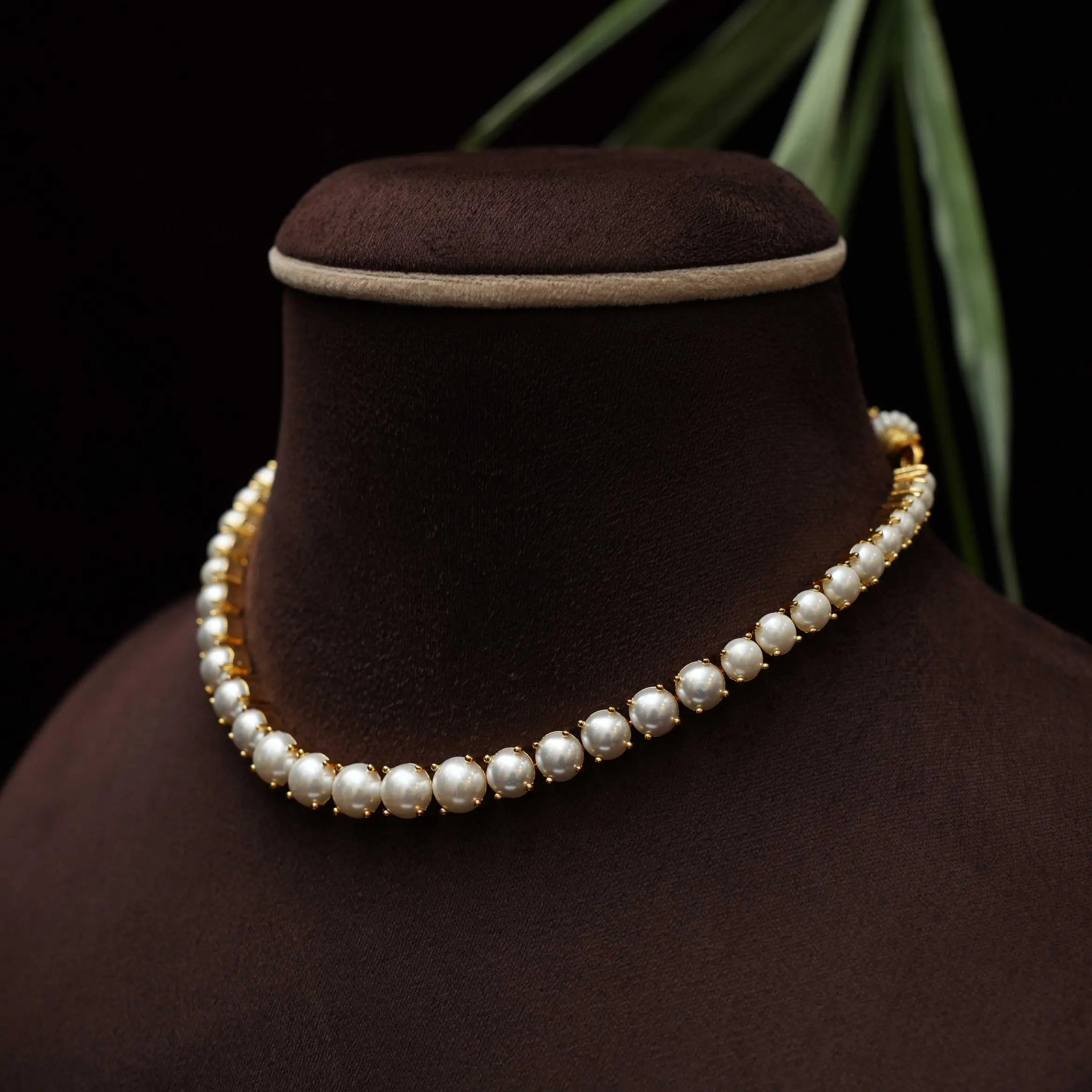 A simple and beautiful choker studded with pearls. This set comes with a pair of earrings.